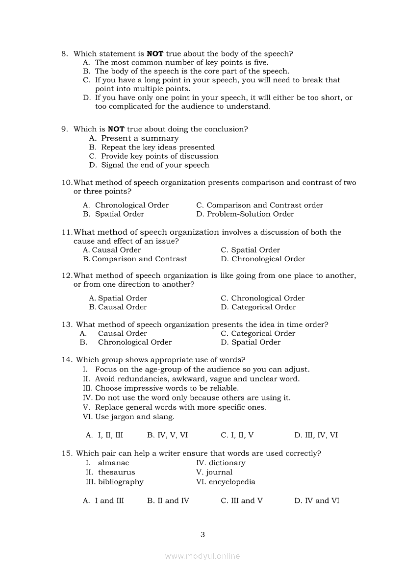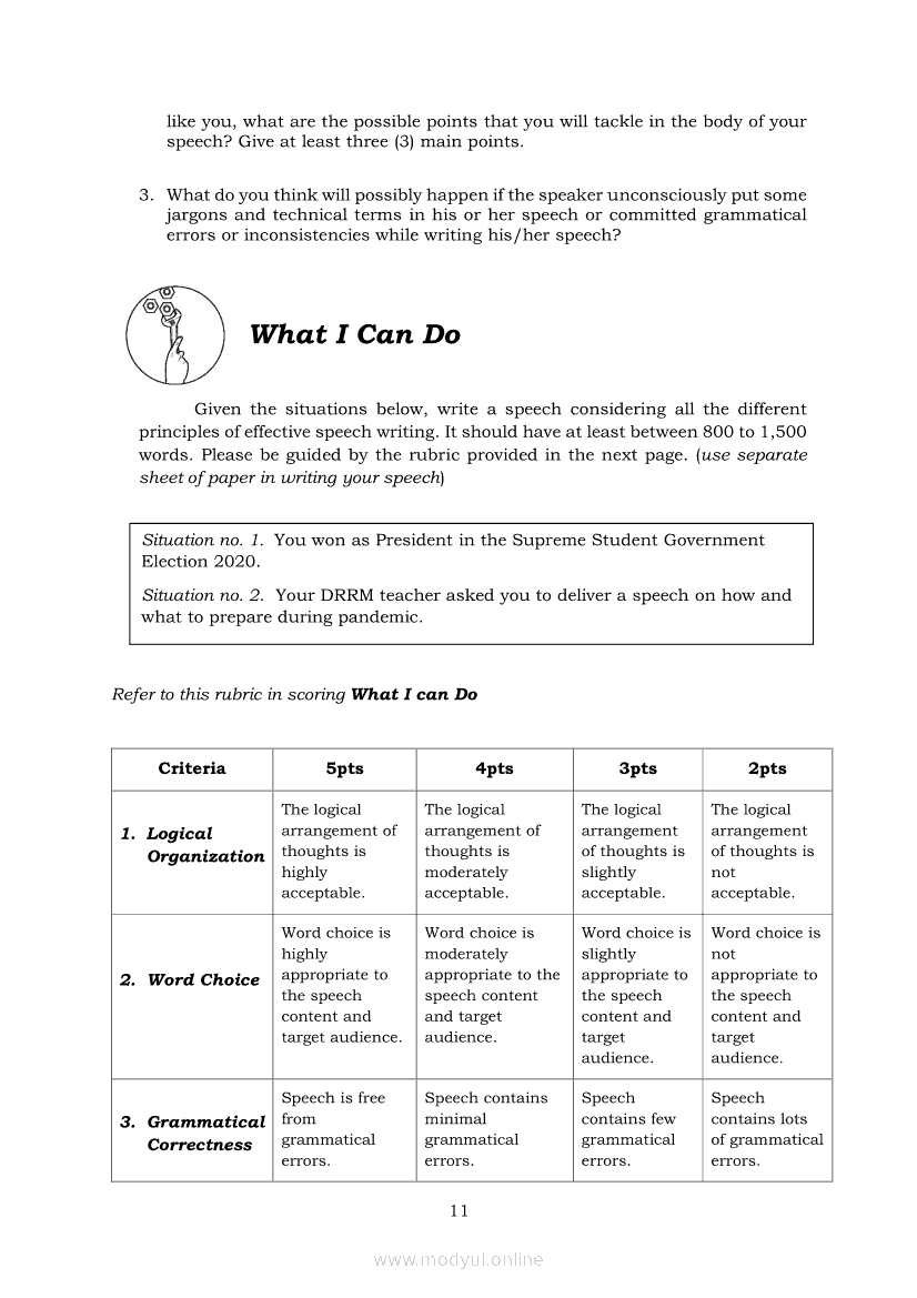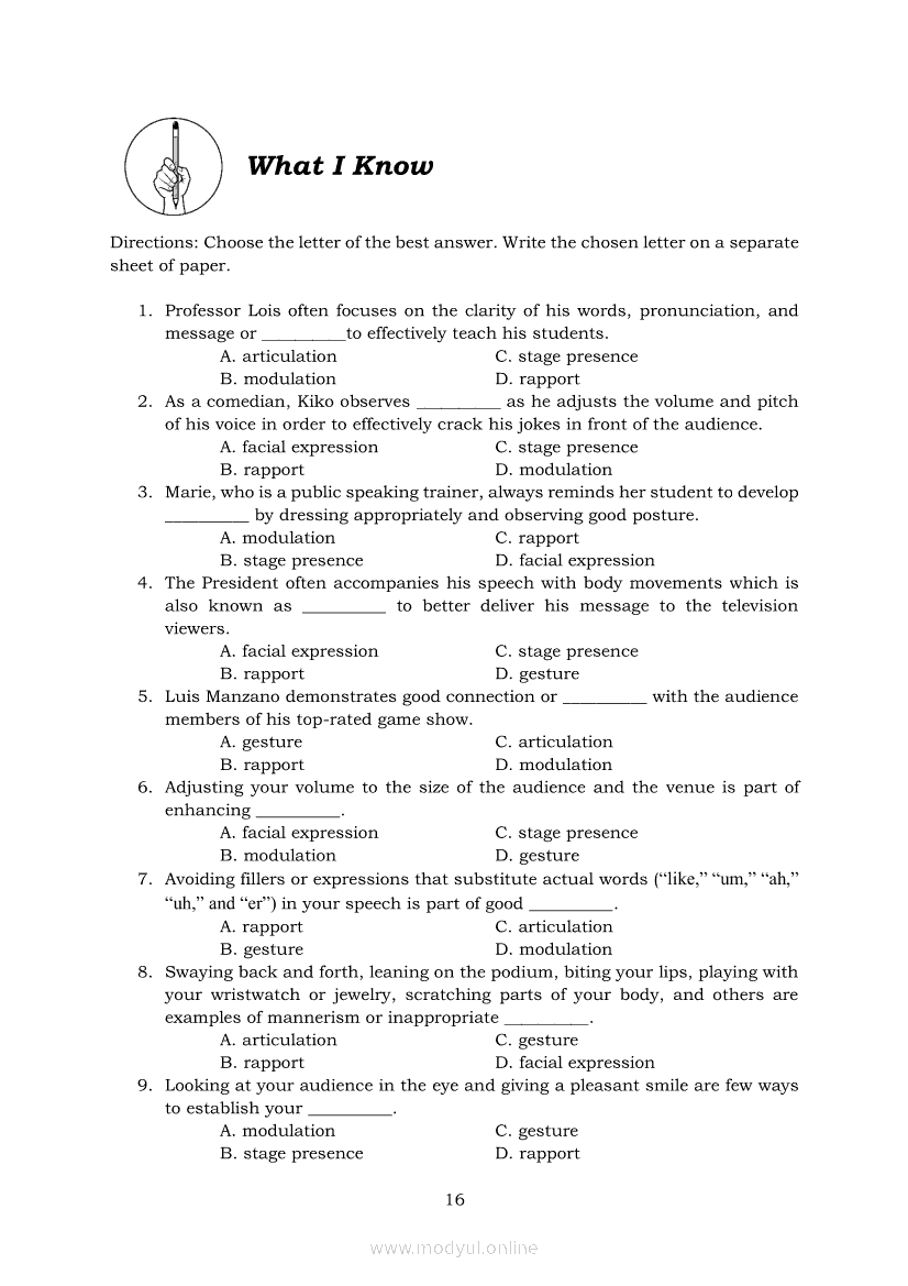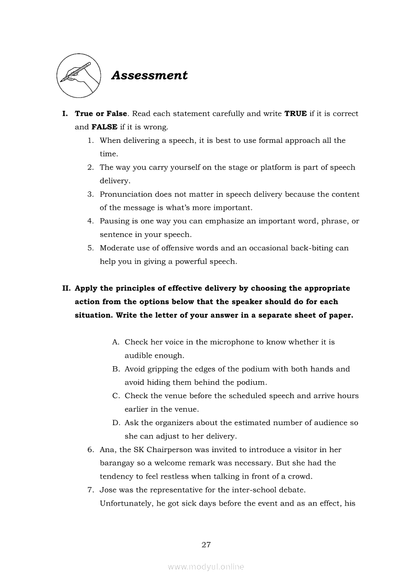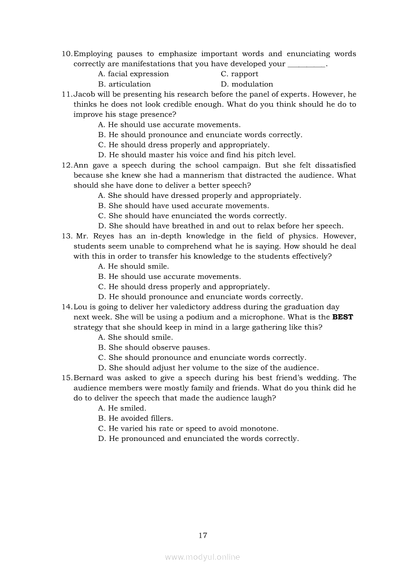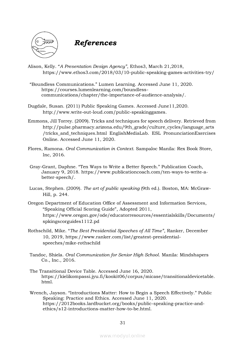 Oral Communication in Context Quarter 2 – Module 3: Principles of Effective Speech Writing and DeliveryApr 22, 2021 SHSGrab your copy of Collegio Advance - ULTIMATE Updated College Entrance Exam Reviewer and pass with flying colors 🎉. Oral Communication in ContextRelatedOral Communication in Context Module 7: Types of Speech ActOral Communication in Context Module 1-Functions, Nature and Process of CommunicationOral Communication in Context Oral Communication in Context (PIVOT)Oral Communication in Context Module 3: Strategies to Avoid Communication BreakdownOral Communication in Context Module 5: Types of Speech Context