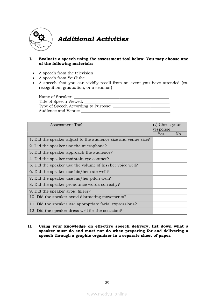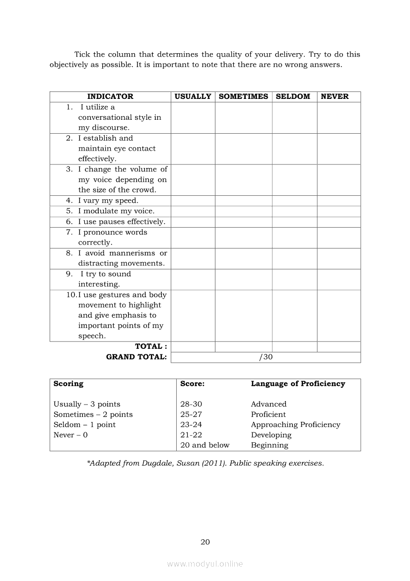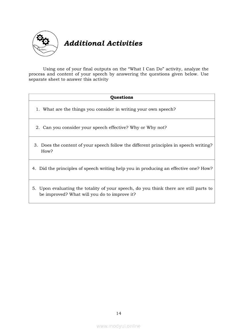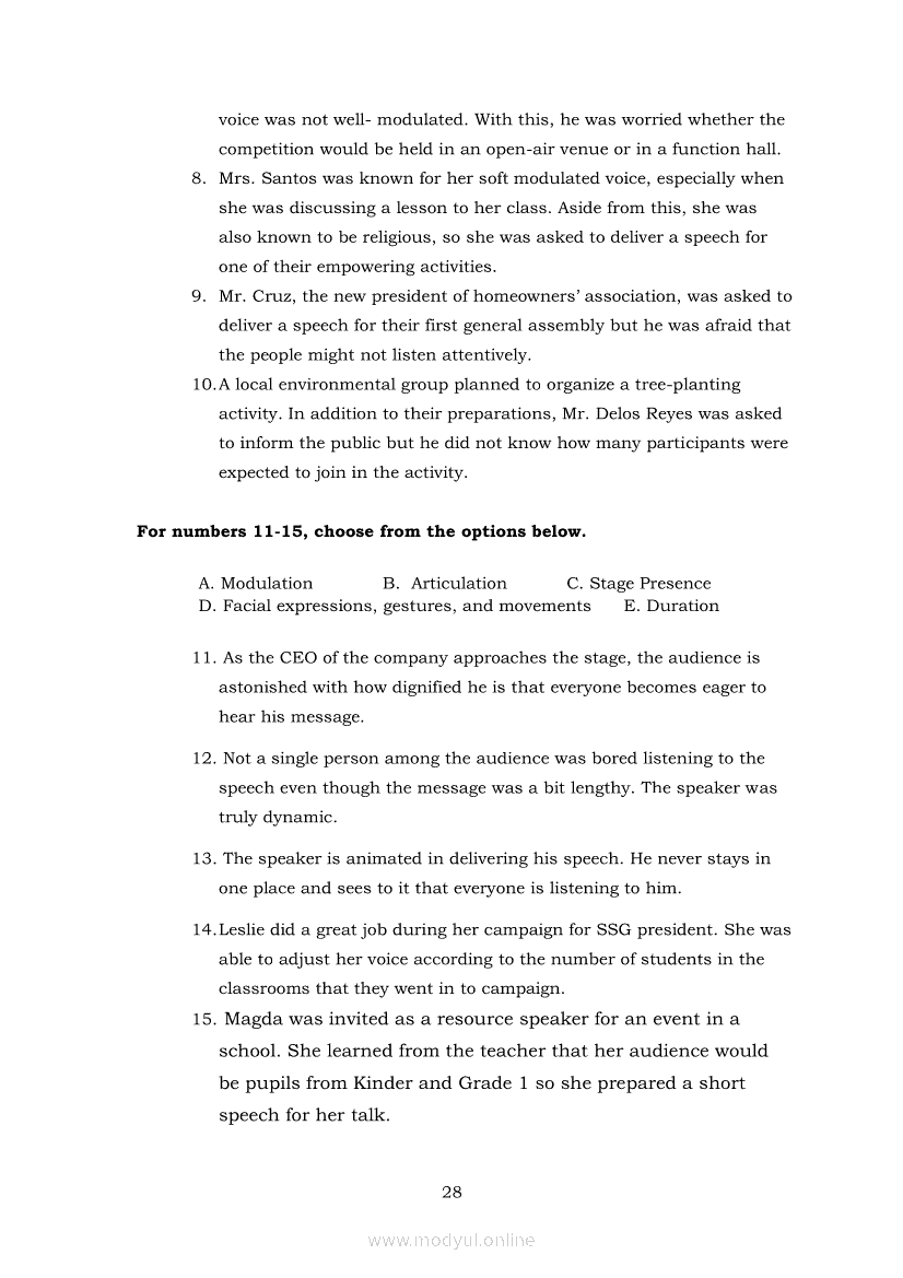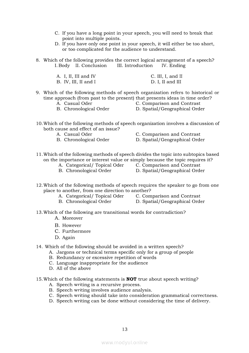 Oral Communication in Context Quarter 2 – Module 3: Principles of Effective Speech Writing and DeliveryApr 22, 2021 SHSGrab your copy of Collegio Advance - ULTIMATE Updated College Entrance Exam Reviewer and pass with flying colors 🎉. Oral Communication in ContextRelatedOral Communication in Context Module 7: Types of Speech ActOral Communication in Context Module 1-Functions, Nature and Process of CommunicationOral Communication in Context Oral Communication in Context (PIVOT)Oral Communication in Context Module 3: Strategies to Avoid Communication BreakdownOral Communication in Context Module 5: Types of Speech Context