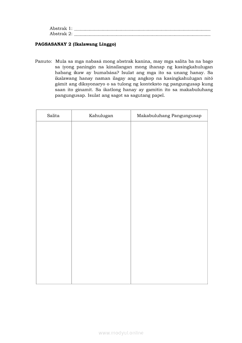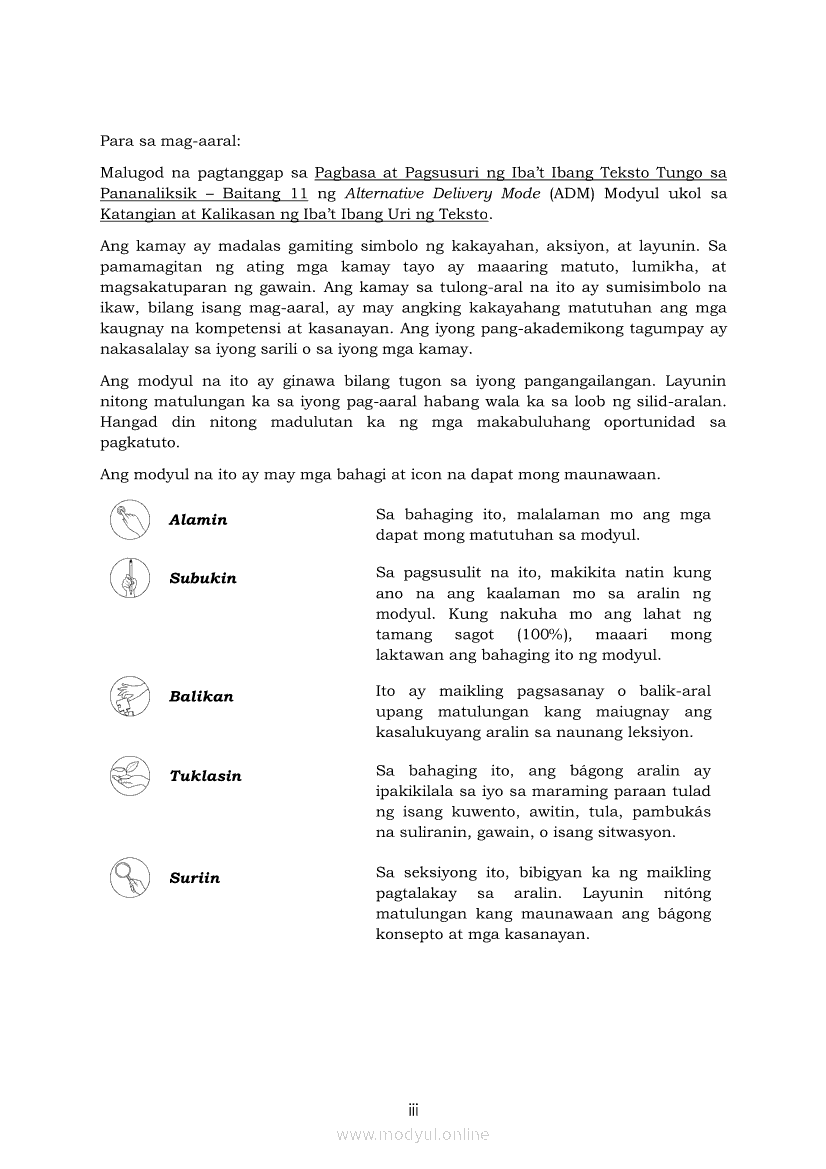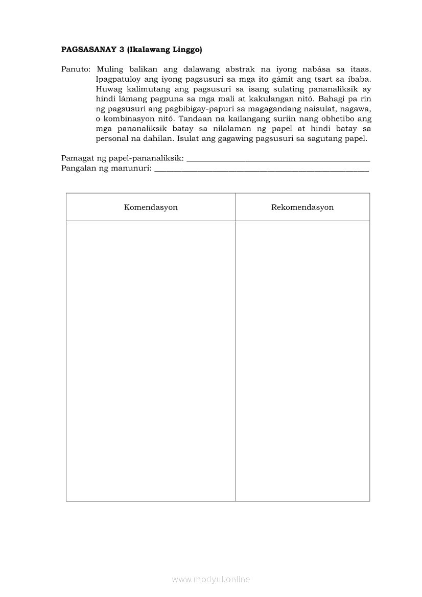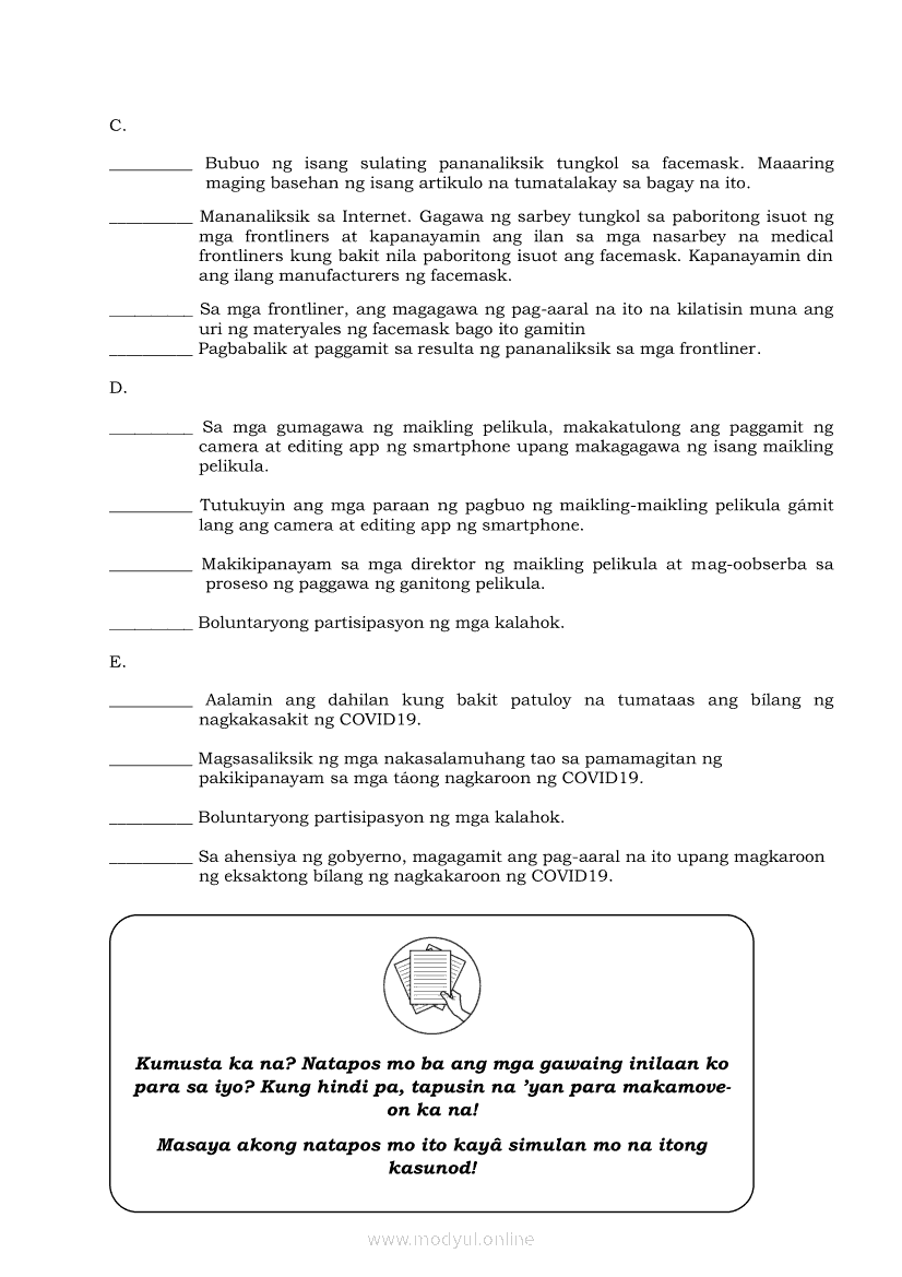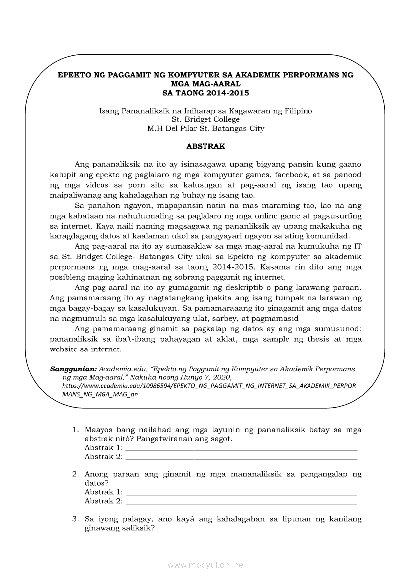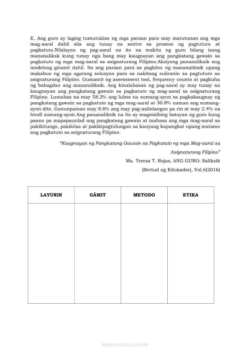 Pagbasa at Pagsusuri ng Iba't Ibang Teksto Tungo sa Pananaliksik Ikaapat na Markahan—Modyul 1: Pagsusuri ng Ilang Halimbawang Pananaliksik sa Filipino Batay sa Layunin, Gamit, Metodo, at Etika ng PananaliksikApr 22, 2021 SHSGrab your copy of Collegio Advance - ULTIMATE Updated College Entrance Exam Reviewer and pass with flying colors 🎉. Pagbasa at Pagsusuri ng Iba't Ibang Teksto Tungo sa PananaliksikRelatedPagbasa at Pagsusuri ng Iba't Ibang Teksto Tungo sa Pananaliksik Ikaapat na Markahan–Modyul 4: Lohikal at Ugnayan ng mga Idea sa Pagsulat ng PananaliksikPagbasa at Pagsusuri ng Iba't Ibang Teksto Tungo sa Pananaliksik Ikaapat na Markahan–Modyul 5: Pagbuo ng Isang Maikling Pananaliksik sa mga Napapanahong IsyuPagbasa at Pagsusuri ng Iba't Ibang Teksto Tungo sa Pananaliksik Ikaapat na Markahan–Modyul 2: Pagbibigay-Kahulugan sa mga Konseptong Kaugnay ng PananaliksikPagbasa at Pagsusuri ng Iba't Ibang Teksto Tungo sa Pananaliksik Ikaapat na Markahan–Modyul 3: Proseso sa Pagsulat ng PananaliksikPagbasa at Pagsusuri ng Iba't Ibang Teksto Tungo sa Pananaliksik (PIVOT)