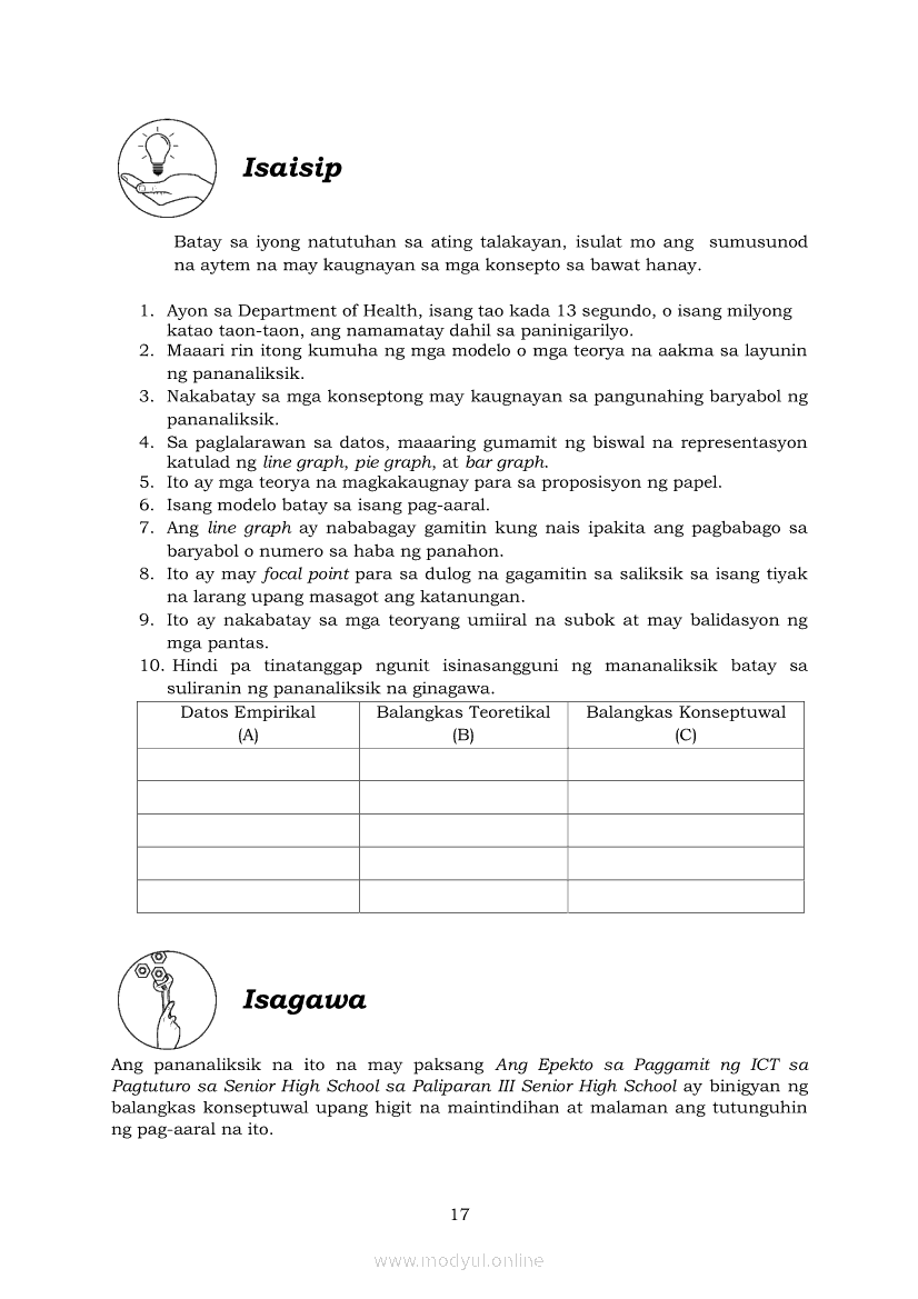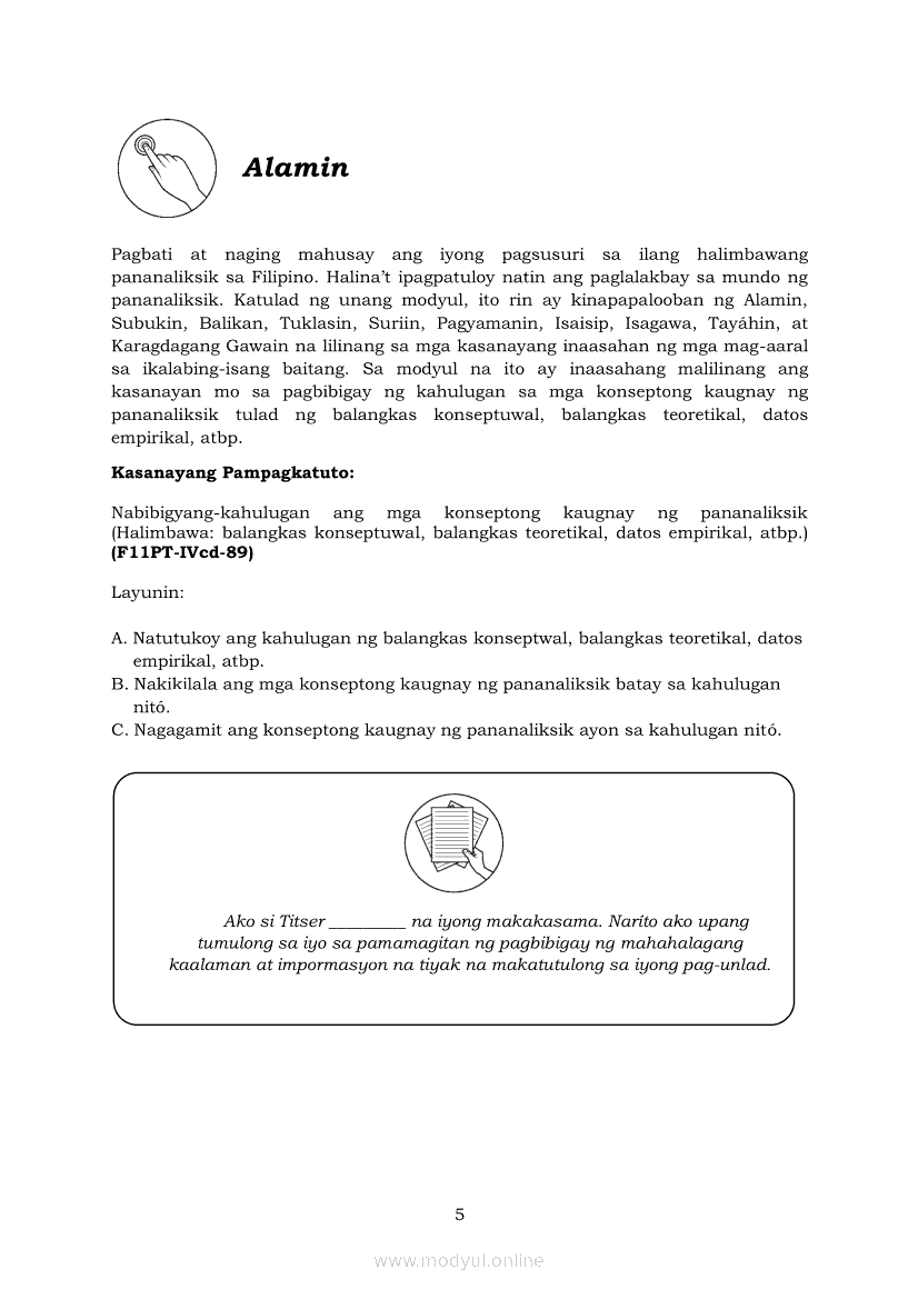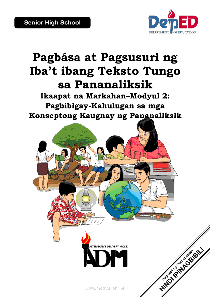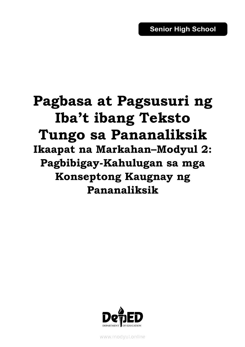 Pagbasa at Pagsusuri ng Iba't Ibang Teksto Tungo sa Pananaliksik Ikaapat na Markahan–Modyul 2: Pagbibigay-Kahulugan sa mga Konseptong Kaugnay ng PananaliksikApr 22, 2021 SHSGrab your copy of Collegio Advance - ULTIMATE Updated College Entrance Exam Reviewer and pass with flying colors 🎉. Pagbasa at Pagsusuri ng Iba't Ibang Teksto Tungo sa PananaliksikRelatedPagbasa at Pagsusuri ng Iba't Ibang Teksto Tungo sa Pananaliksik Ikaapat na Markahan–Modyul 4: Lohikal at Ugnayan ng mga Idea sa Pagsulat ng PananaliksikPagbasa at Pagsusuri ng Iba't Ibang Teksto Tungo sa Pananaliksik Ikaapat na Markahan–Modyul 3: Proseso sa Pagsulat ng PananaliksikPagbasa at Pagsusuri ng Iba't Ibang Teksto Tungo sa Pananaliksik Ikaapat na Markahan—Modyul 1: Pagsusuri ng Ilang Halimbawang Pananaliksik sa Filipino Batay sa Layunin, Gamit, Metodo, at Etika ng PananaliksikPagbasa at Pagsusuri ng Iba't Ibang Teksto Tungo sa Pananaliksik (PIVOT)Pagbasa at Pagsusuri ng Iba't Ibang Teksto Tungo sa Pananaliksik Ikaapat na Markahan–Modyul 5: Pagbuo ng Isang Maikling Pananaliksik sa mga Napapanahong Isyu