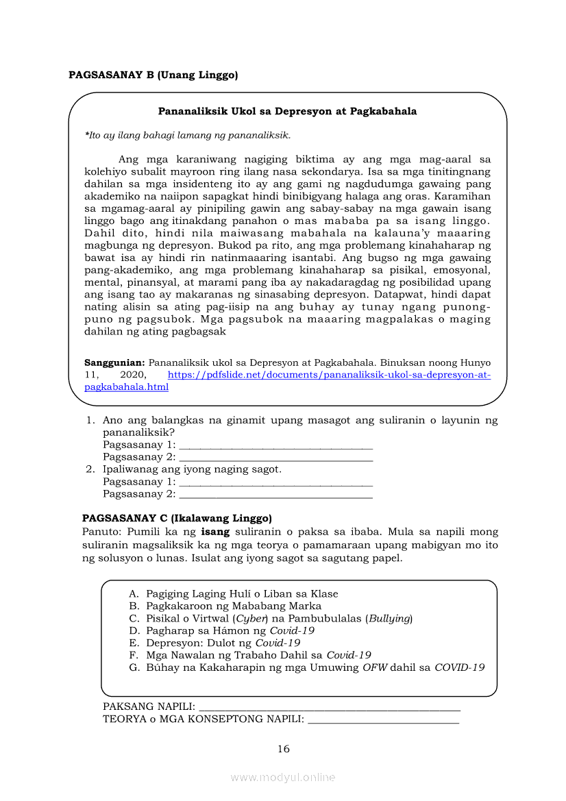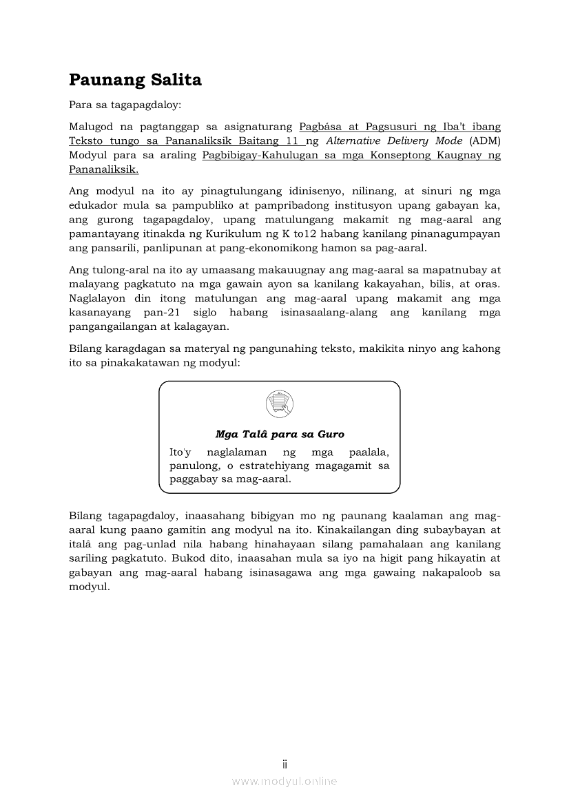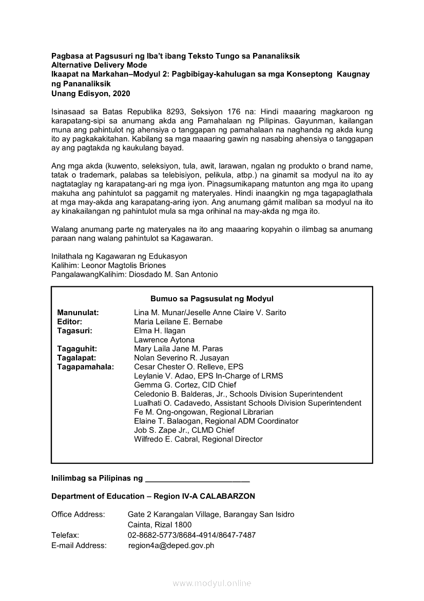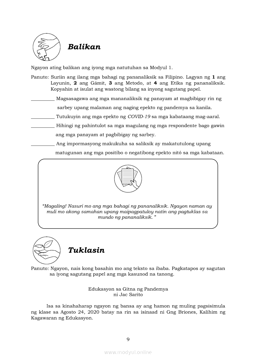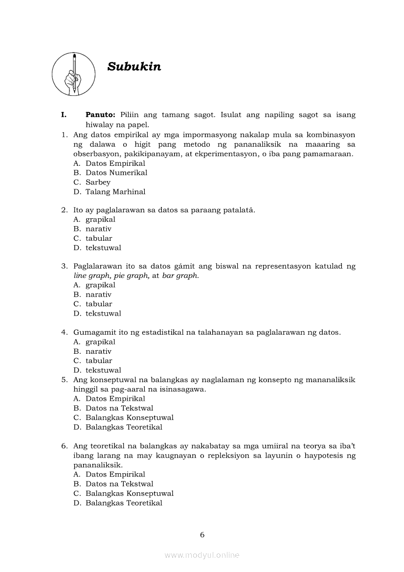 Pagbasa at Pagsusuri ng Iba't Ibang Teksto Tungo sa Pananaliksik Ikaapat na Markahan–Modyul 2: Pagbibigay-Kahulugan sa mga Konseptong Kaugnay ng PananaliksikApr 22, 2021 SHSGrab your copy of Collegio Advance - ULTIMATE Updated College Entrance Exam Reviewer and pass with flying colors 🎉. Pagbasa at Pagsusuri ng Iba't Ibang Teksto Tungo sa PananaliksikRelatedPagbasa at Pagsusuri ng Iba't Ibang Teksto Tungo sa Pananaliksik Ikaapat na Markahan–Modyul 4: Lohikal at Ugnayan ng mga Idea sa Pagsulat ng PananaliksikPagbasa at Pagsusuri ng Iba't Ibang Teksto Tungo sa Pananaliksik Ikaapat na Markahan–Modyul 3: Proseso sa Pagsulat ng PananaliksikPagbasa at Pagsusuri ng Iba't Ibang Teksto Tungo sa Pananaliksik Ikaapat na Markahan—Modyul 1: Pagsusuri ng Ilang Halimbawang Pananaliksik sa Filipino Batay sa Layunin, Gamit, Metodo, at Etika ng PananaliksikPagbasa at Pagsusuri ng Iba't Ibang Teksto Tungo sa Pananaliksik (PIVOT)Pagbasa at Pagsusuri ng Iba't Ibang Teksto Tungo sa Pananaliksik Ikaapat na Markahan–Modyul 5: Pagbuo ng Isang Maikling Pananaliksik sa mga Napapanahong Isyu