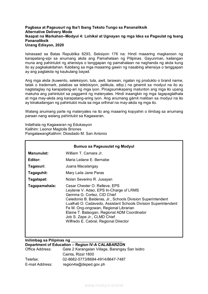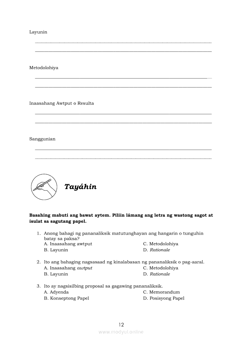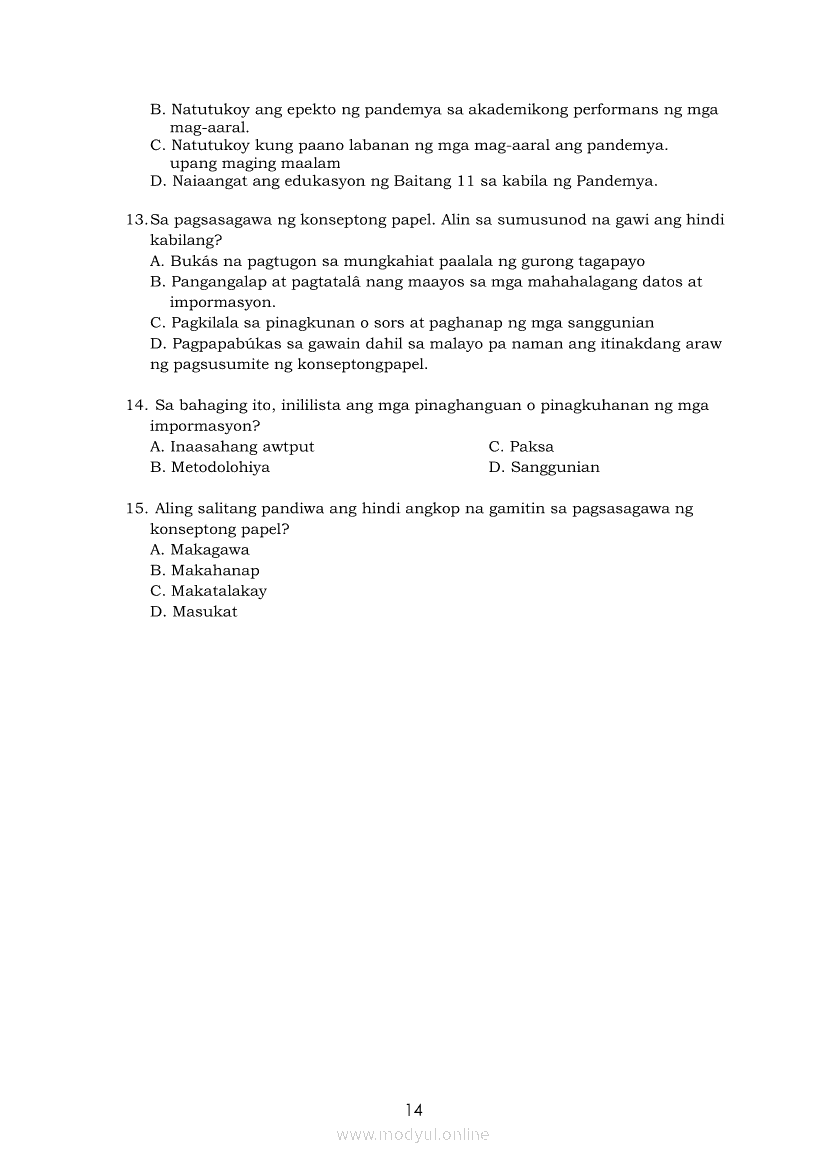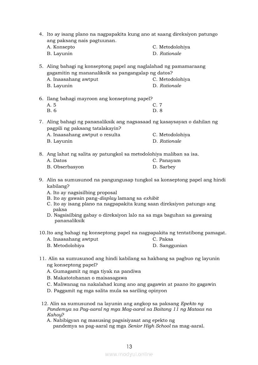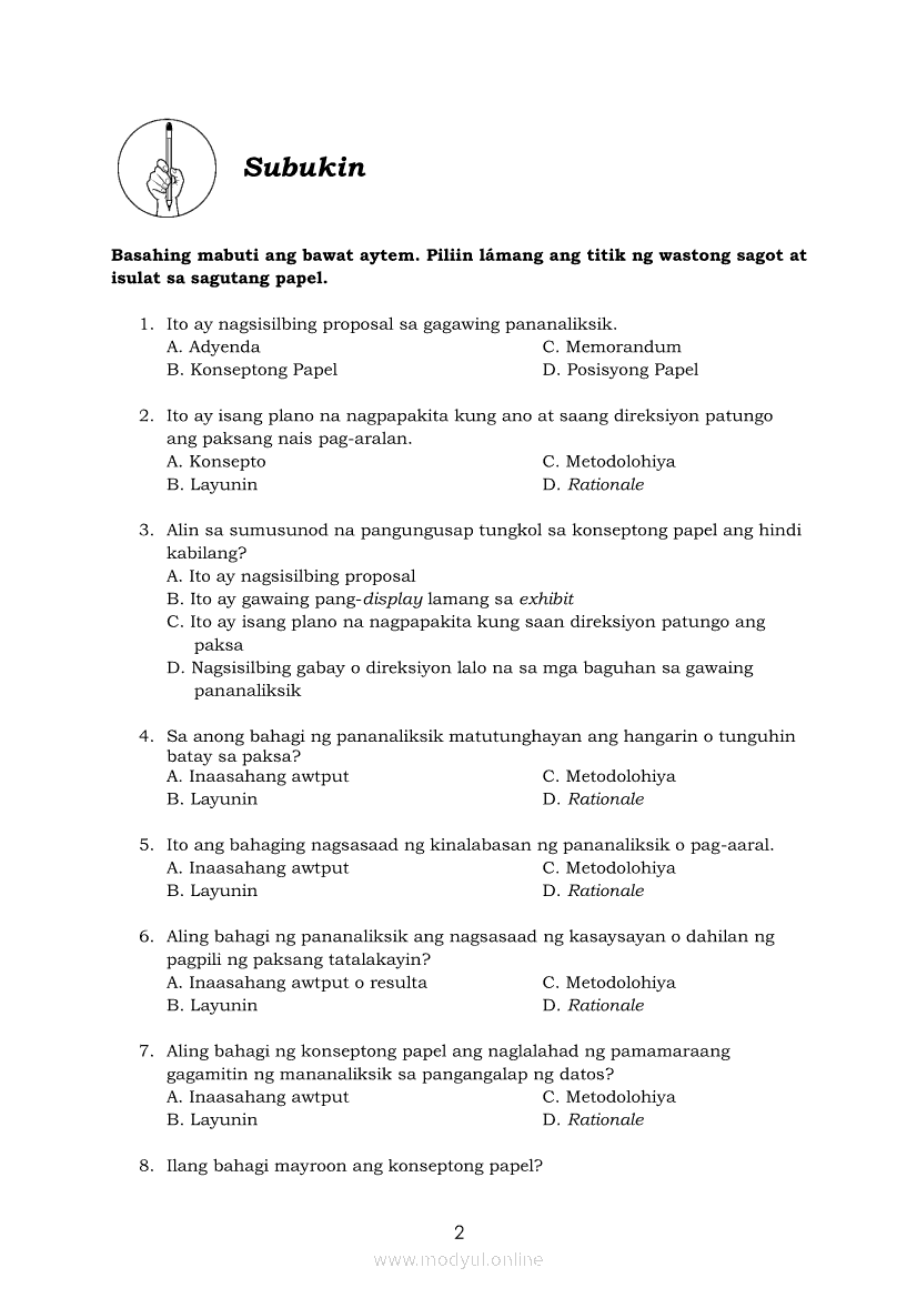 Pagbasa at Pagsusuri ng Iba't Ibang Teksto Tungo sa Pananaliksik Ikaapat na Markahan–Modyul 4: Lohikal at Ugnayan ng mga Idea sa Pagsulat ng PananaliksikApr 22, 2021 SHSGrab your copy of Collegio Advance - ULTIMATE Updated College Entrance Exam Reviewer and pass with flying colors 🎉. Pagbasa at Pagsusuri ng Iba't Ibang Teksto Tungo sa PananaliksikRelatedPagbasa at Pagsusuri ng Iba't Ibang Teksto Tungo sa Pananaliksik (PIVOT)Pagbasa at Pagsusuri ng Iba't Ibang Teksto Tungo sa Pananaliksik Ikaapat na Markahan–Modyul 3: Proseso sa Pagsulat ng PananaliksikPagbasa at Pagsusuri ng Iba't Ibang Teksto Tungo sa Pananaliksik Ikaapat na Markahan—Modyul 1: Pagsusuri ng Ilang Halimbawang Pananaliksik sa Filipino Batay sa Layunin, Gamit, Metodo, at Etika ng PananaliksikPagbasa at Pagsusuri ng Iba't Ibang Teksto Tungo sa Pananaliksik Ikaapat na Markahan–Modyul 2: Pagbibigay-Kahulugan sa mga Konseptong Kaugnay ng PananaliksikPagbasa at Pagsusuri ng Iba't Ibang Teksto Tungo sa Pananaliksik Ikaapat na Markahan–Modyul 5: Pagbuo ng Isang Maikling Pananaliksik sa mga Napapanahong Isyu