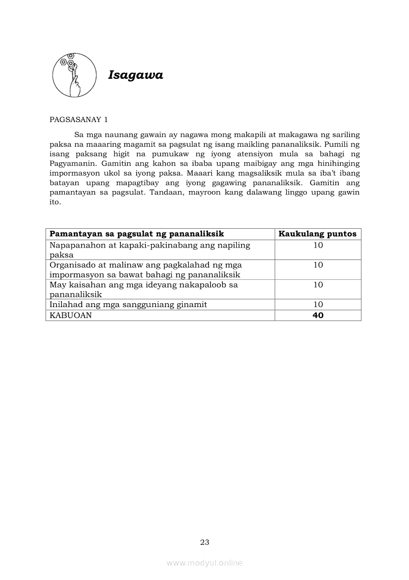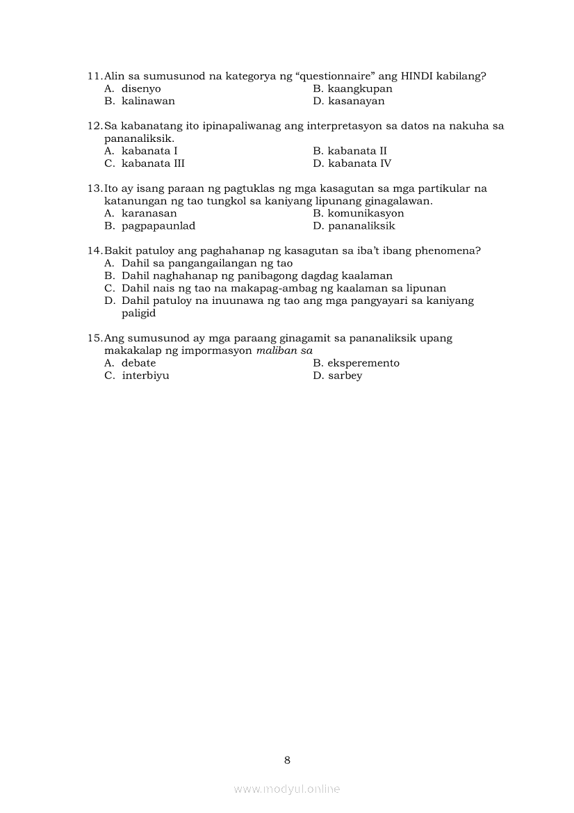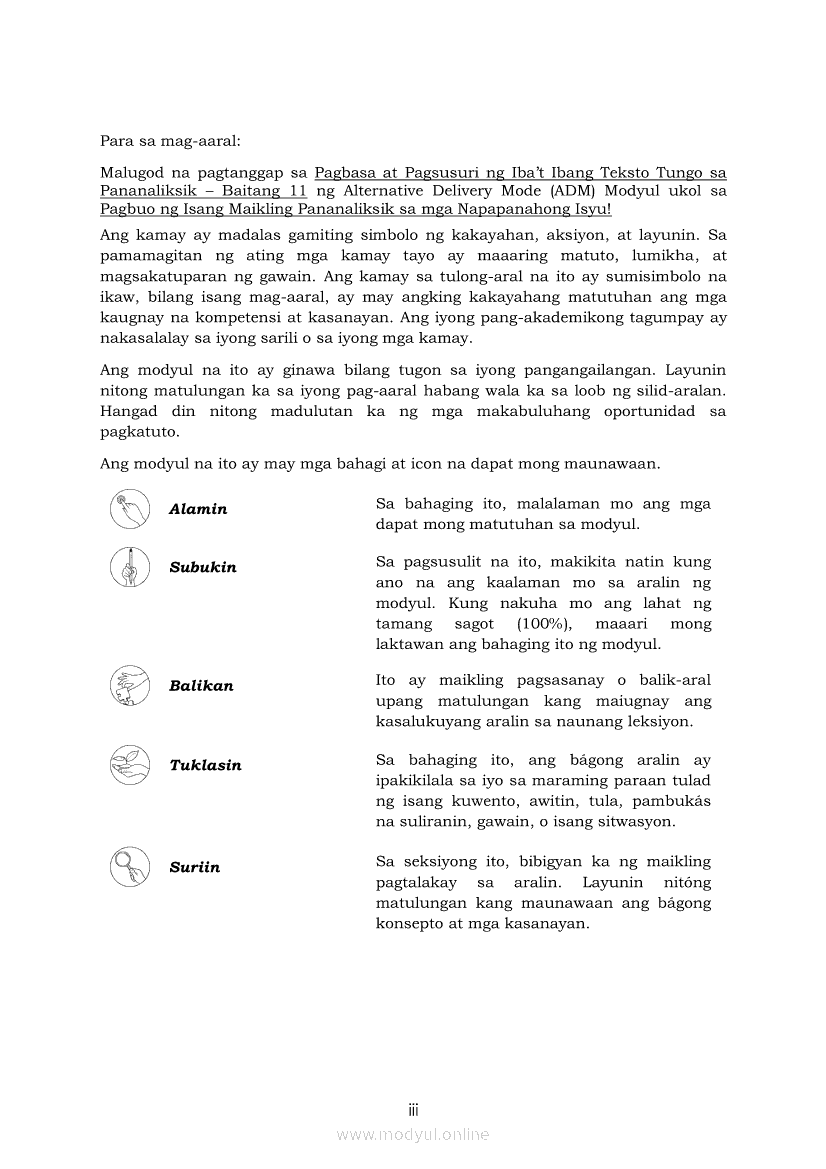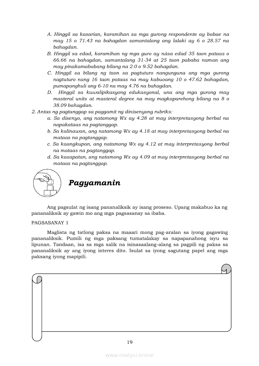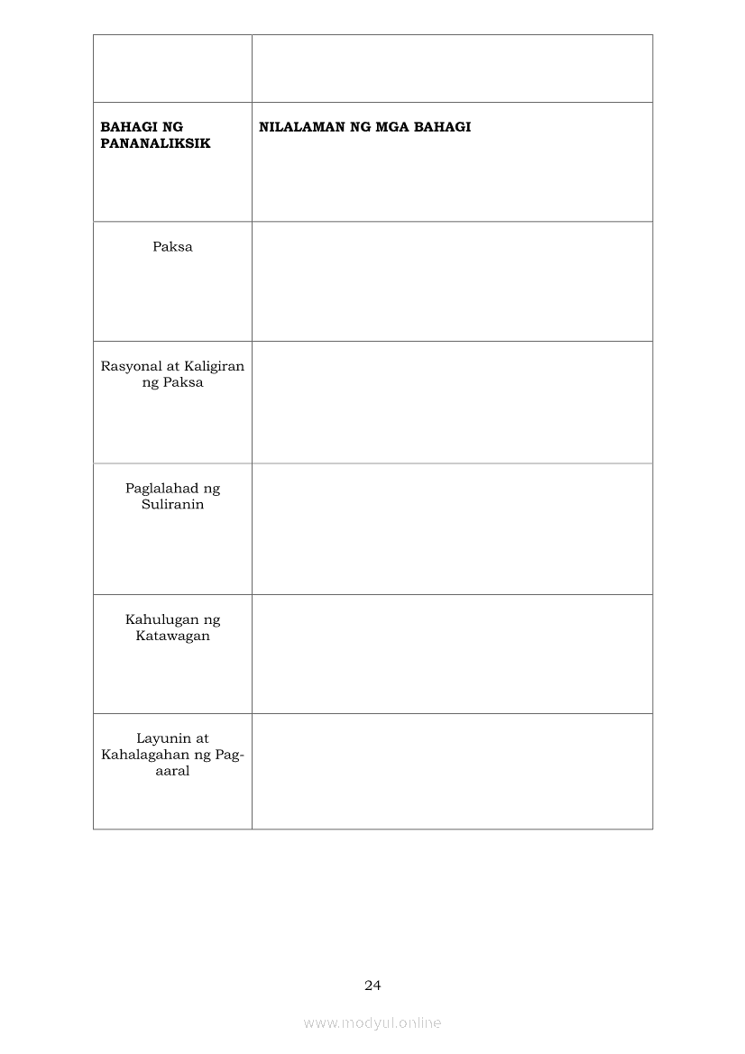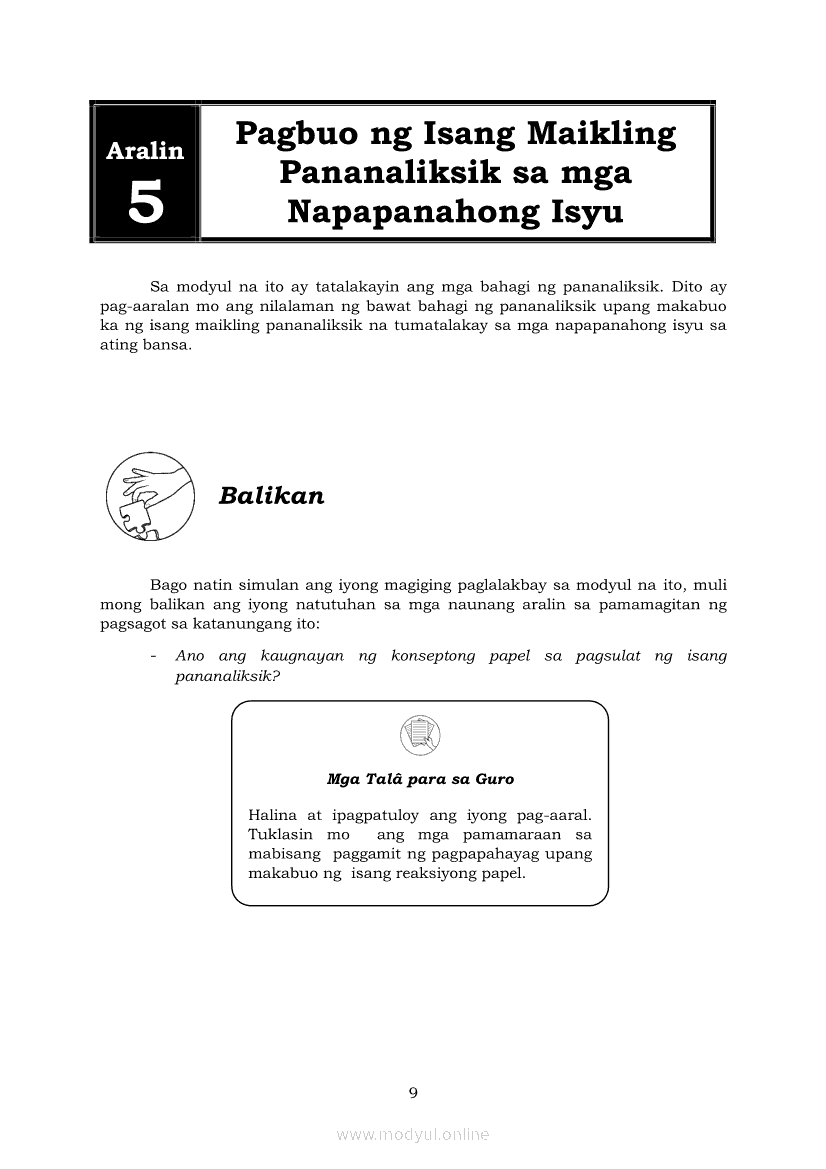 Pagbasa at Pagsusuri ng Iba't Ibang Teksto Tungo sa Pananaliksik Ikaapat na Markahan–Modyul 5: Pagbuo ng Isang Maikling Pananaliksik sa mga Napapanahong IsyuApr 22, 2021 SHSGrab your copy of Collegio Advance - ULTIMATE Updated College Entrance Exam Reviewer and pass with flying colors 🎉. Pagbasa at Pagsusuri ng Iba't Ibang Teksto Tungo sa PananaliksikRelatedPagbasa at Pagsusuri ng Iba't Ibang Teksto Tungo sa Pananaliksik (PIVOT)Pagbasa at Pagsusuri ng Iba't Ibang Teksto Tungo sa Pananaliksik Ikaapat na Markahan—Modyul 1: Pagsusuri ng Ilang Halimbawang Pananaliksik sa Filipino Batay sa Layunin, Gamit, Metodo, at Etika ng PananaliksikPagbasa at Pagsusuri ng Iba't Ibang Teksto Tungo sa Pananaliksik Ikaapat na Markahan–Modyul 2: Pagbibigay-Kahulugan sa mga Konseptong Kaugnay ng PananaliksikPagbasa at Pagsusuri ng Iba't Ibang Teksto Tungo sa Pananaliksik Ikaapat na Markahan–Modyul 3: Proseso sa Pagsulat ng PananaliksikPagbasa at Pagsusuri ng Iba't Ibang Teksto Tungo sa Pananaliksik Ikaapat na Markahan–Modyul 4: Lohikal at Ugnayan ng mga Idea sa Pagsulat ng Pananaliksik