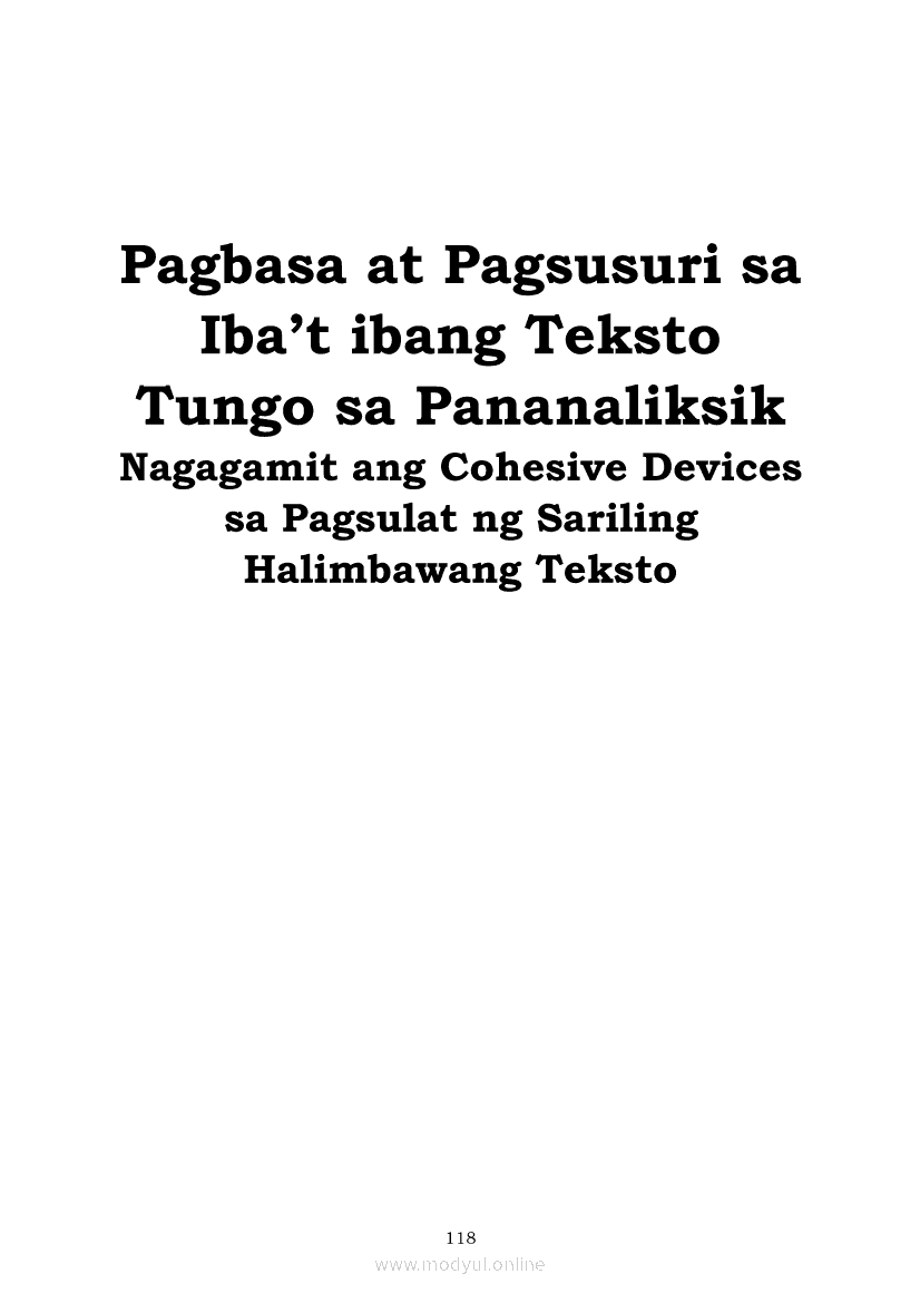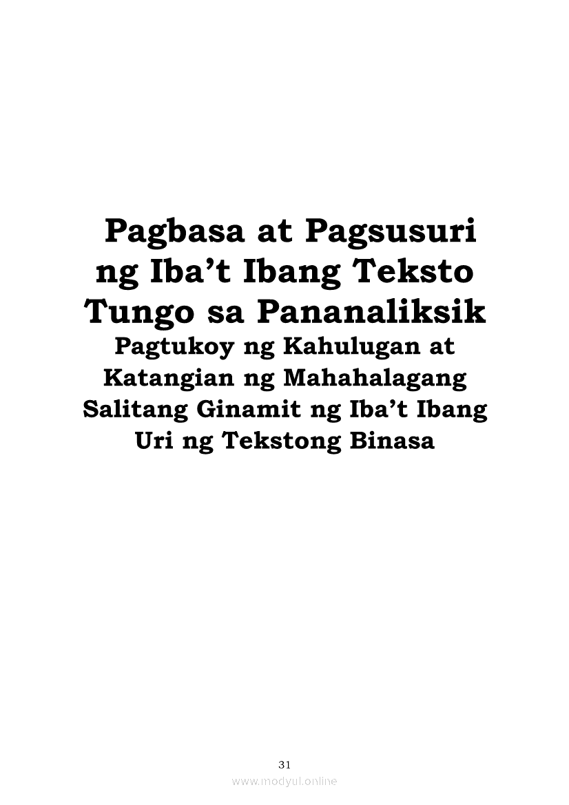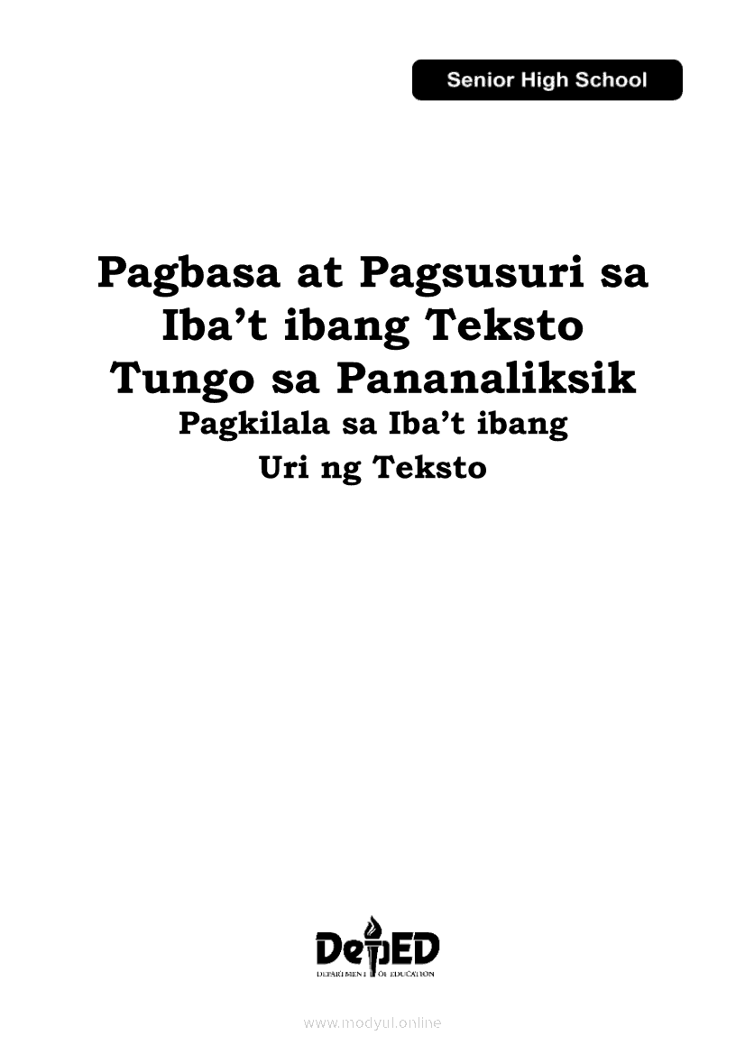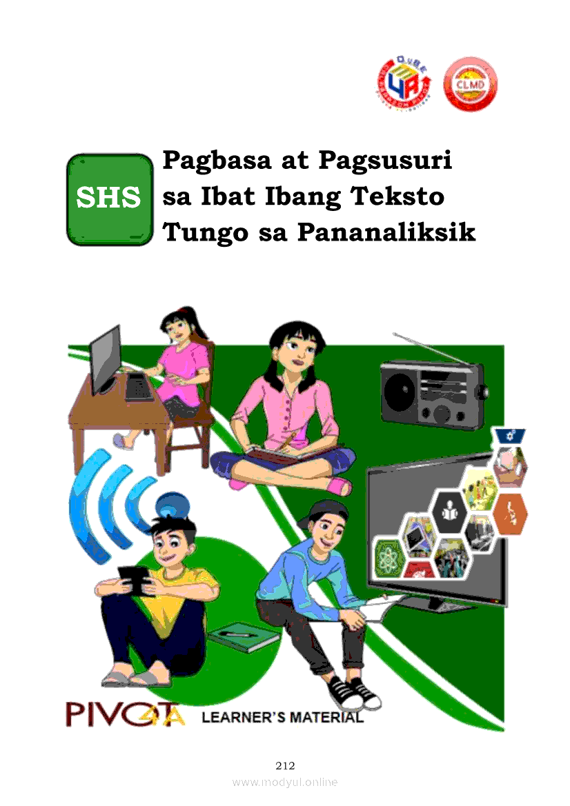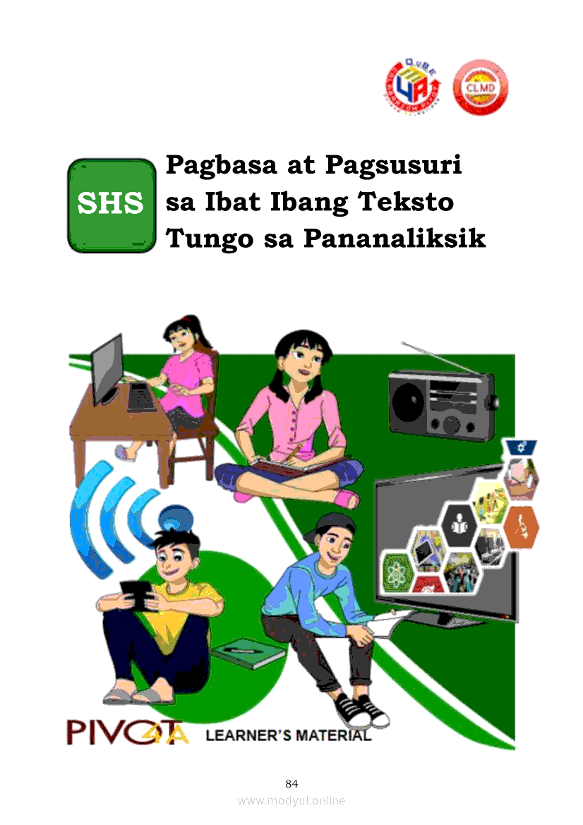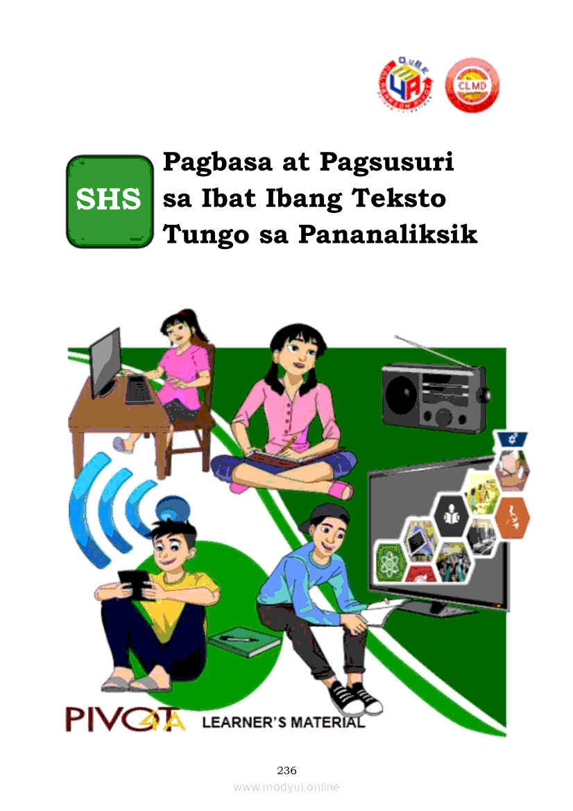 Pagbasa at Pagsusuri ng Iba't Ibang Teksto Tungo sa Pananaliksik (PIVOT)Apr 22, 2021 SHSGrab your copy of Collegio Advance - ULTIMATE Updated College Entrance Exam Reviewer and pass with flying colors 🎉. Pagbasa at Pagsusuri ng Iba't Ibang Teksto Tungo sa PananaliksikRelatedPagbasa at Pagsusuri ng Iba't Ibang Teksto Tungo sa Pananaliksik Ikaapat na Markahan–Modyul 4: Lohikal at Ugnayan ng mga Idea sa Pagsulat ng PananaliksikPagbasa at Pagsusuri ng Iba't Ibang Teksto Tungo sa Pananaliksik Ikaapat na Markahan–Modyul 3: Proseso sa Pagsulat ng PananaliksikPagbasa at Pagsusuri ng Iba't Ibang Teksto Tungo sa Pananaliksik Ikaapat na Markahan—Modyul 1: Pagsusuri ng Ilang Halimbawang Pananaliksik sa Filipino Batay sa Layunin, Gamit, Metodo, at Etika ng PananaliksikPagbasa at Pagsusuri ng Iba't Ibang Teksto Tungo sa Pananaliksik Ikaapat na Markahan–Modyul 2: Pagbibigay-Kahulugan sa mga Konseptong Kaugnay ng PananaliksikPagbasa at Pagsusuri ng Iba't Ibang Teksto Tungo sa Pananaliksik Ikaapat na Markahan–Modyul 5: Pagbuo ng Isang Maikling Pananaliksik sa mga Napapanahong Isyu