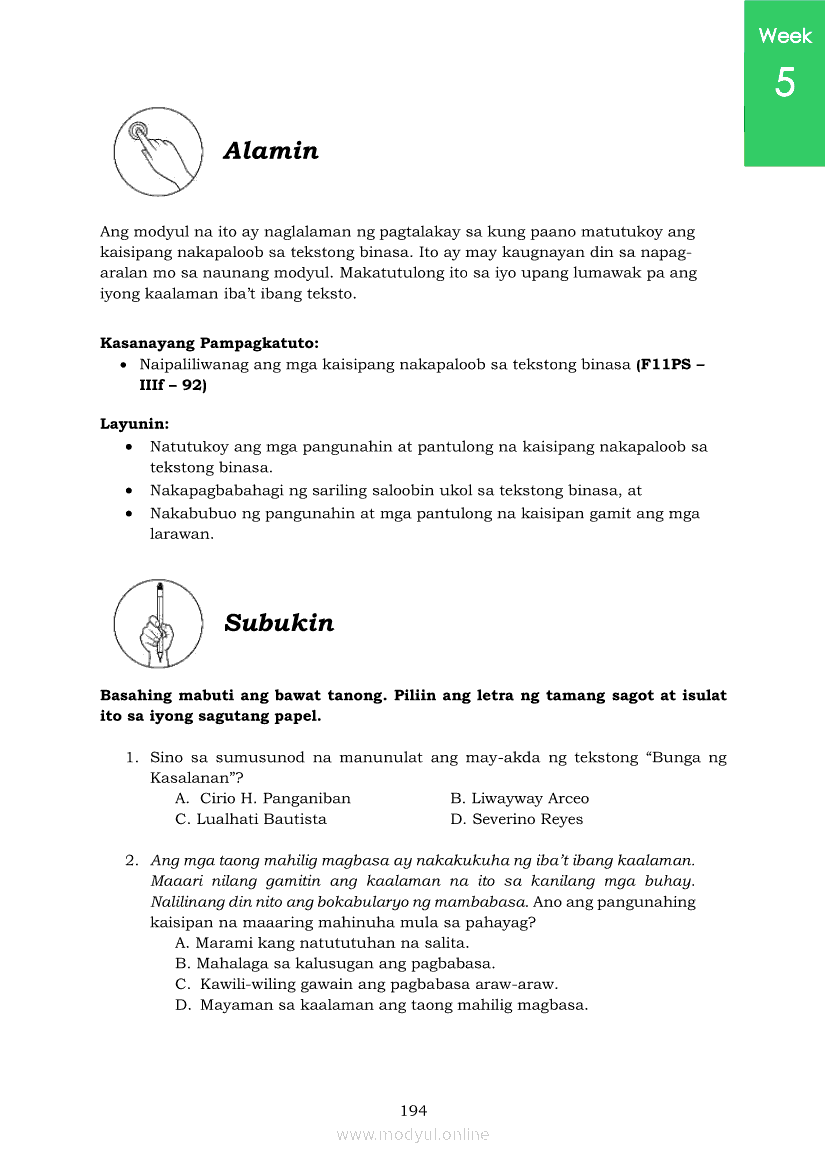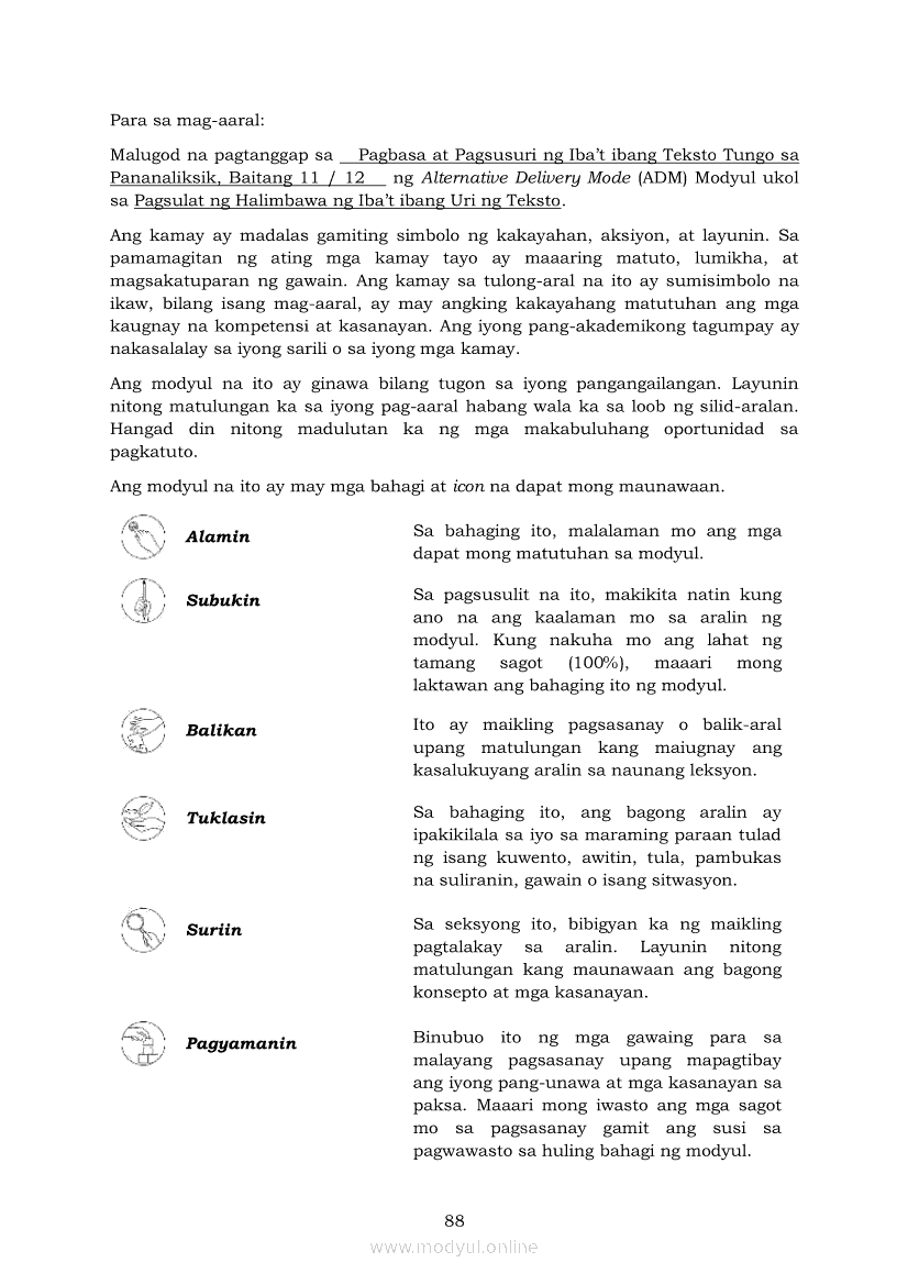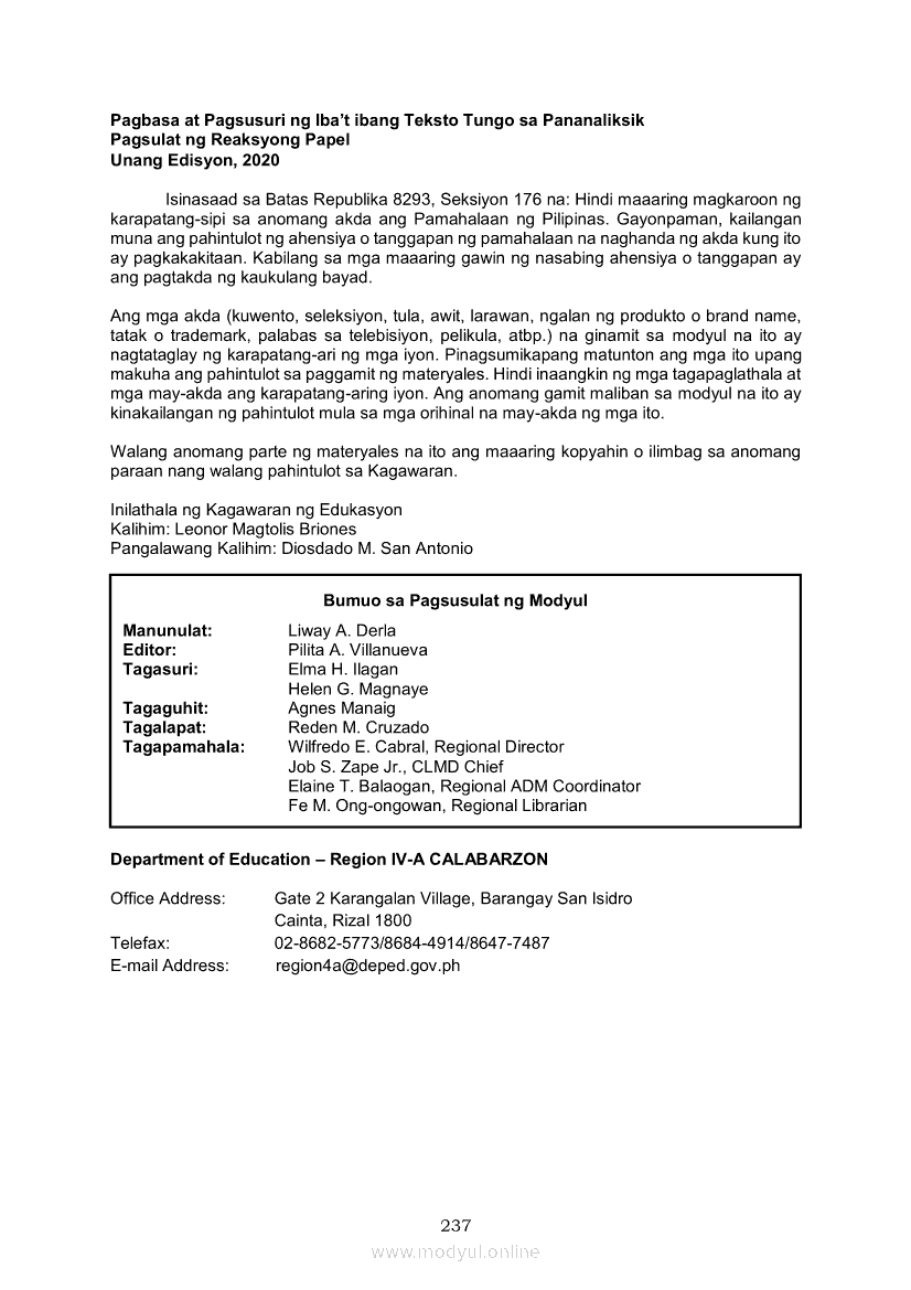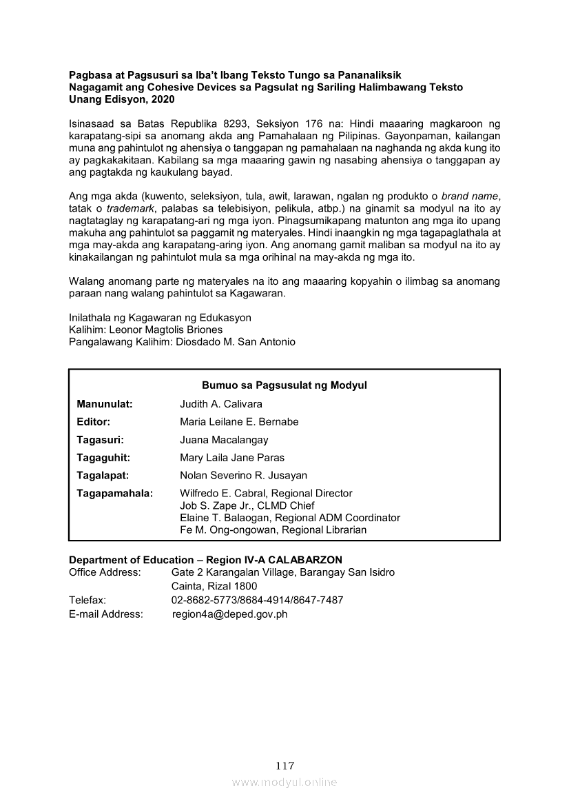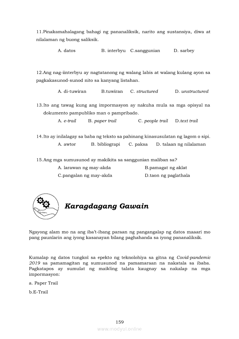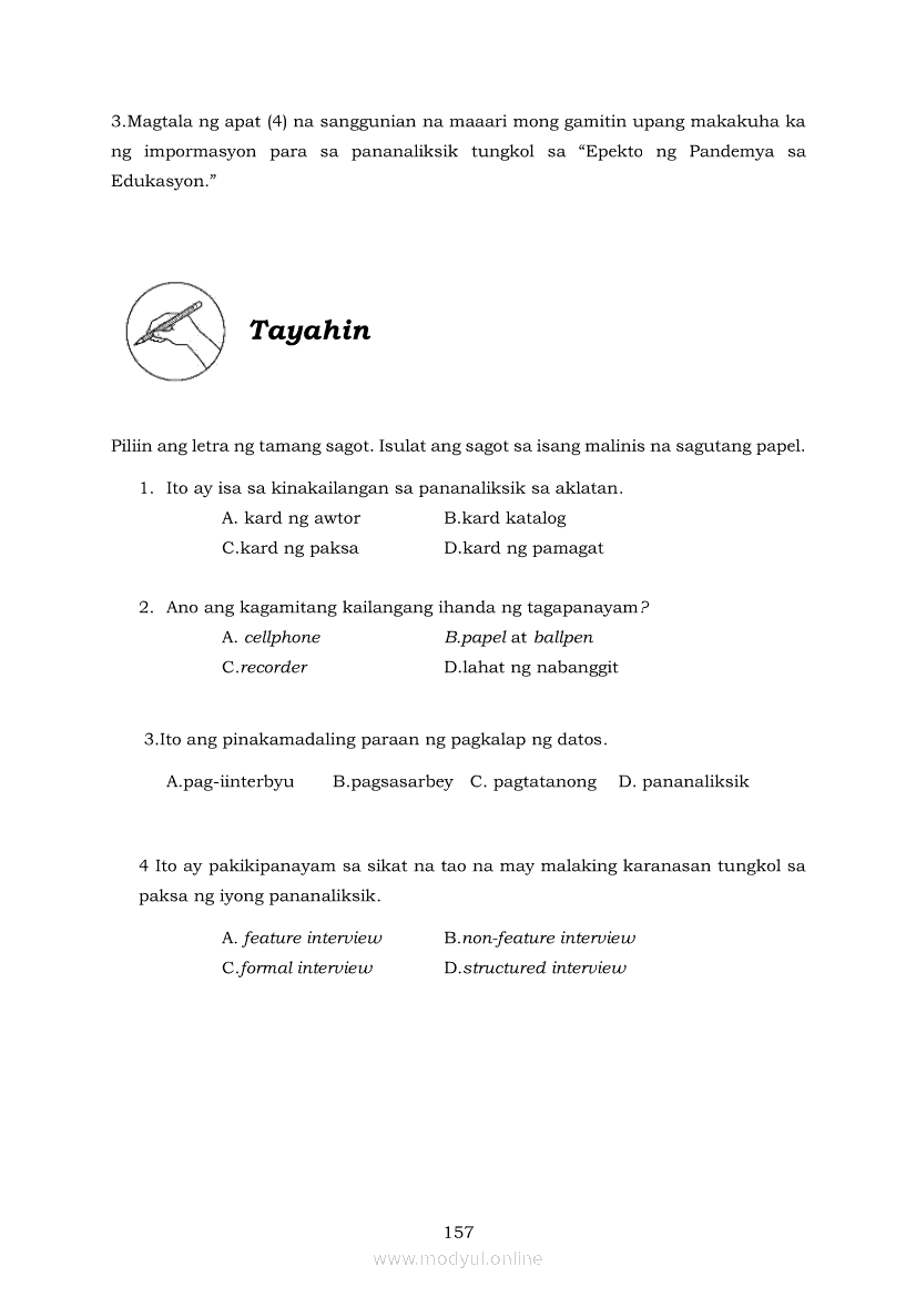 Pagbasa at Pagsusuri ng Iba't Ibang Teksto Tungo sa Pananaliksik (PIVOT)Apr 22, 2021 SHSGrab your copy of Collegio Advance - ULTIMATE Updated College Entrance Exam Reviewer and pass with flying colors 🎉. Pagbasa at Pagsusuri ng Iba't Ibang Teksto Tungo sa PananaliksikRelatedPagbasa at Pagsusuri ng Iba't Ibang Teksto Tungo sa Pananaliksik Ikaapat na Markahan–Modyul 4: Lohikal at Ugnayan ng mga Idea sa Pagsulat ng PananaliksikPagbasa at Pagsusuri ng Iba't Ibang Teksto Tungo sa Pananaliksik Ikaapat na Markahan–Modyul 3: Proseso sa Pagsulat ng PananaliksikPagbasa at Pagsusuri ng Iba't Ibang Teksto Tungo sa Pananaliksik Ikaapat na Markahan—Modyul 1: Pagsusuri ng Ilang Halimbawang Pananaliksik sa Filipino Batay sa Layunin, Gamit, Metodo, at Etika ng PananaliksikPagbasa at Pagsusuri ng Iba't Ibang Teksto Tungo sa Pananaliksik Ikaapat na Markahan–Modyul 2: Pagbibigay-Kahulugan sa mga Konseptong Kaugnay ng PananaliksikPagbasa at Pagsusuri ng Iba't Ibang Teksto Tungo sa Pananaliksik Ikaapat na Markahan–Modyul 5: Pagbuo ng Isang Maikling Pananaliksik sa mga Napapanahong Isyu
