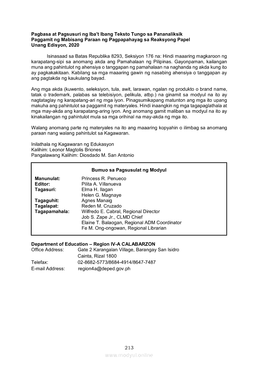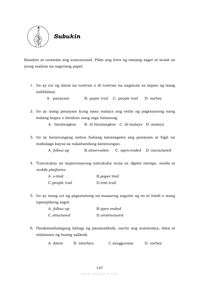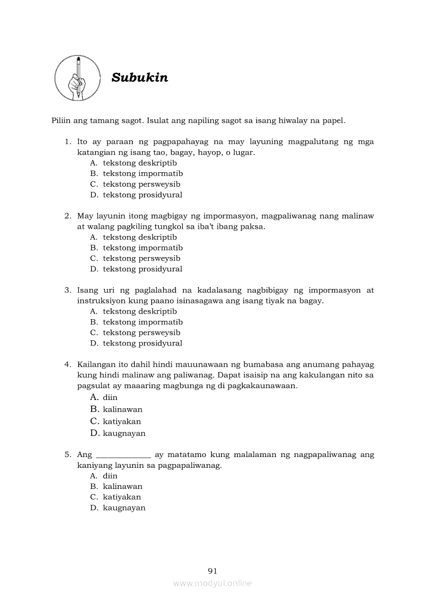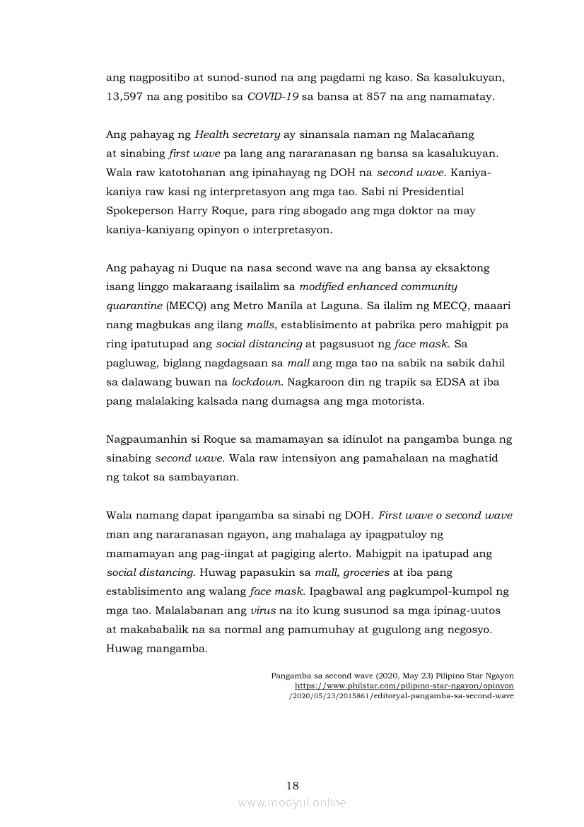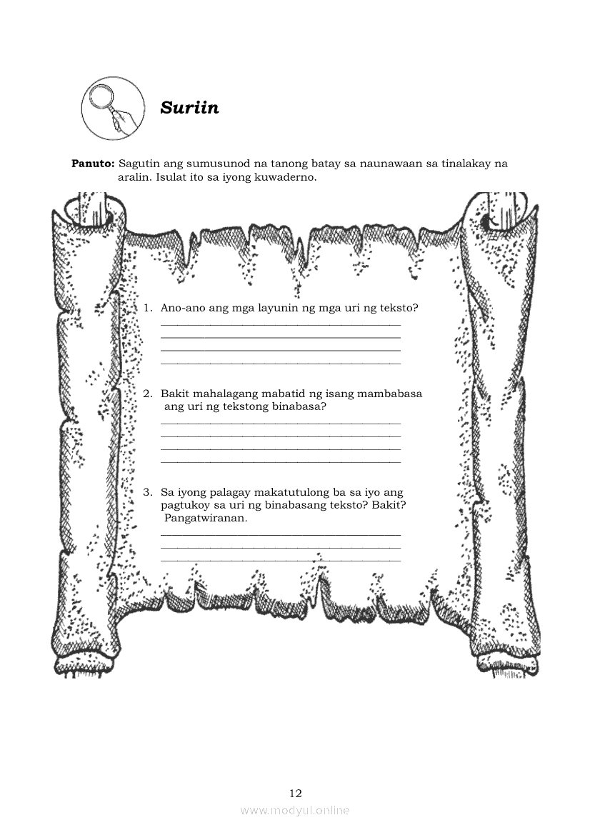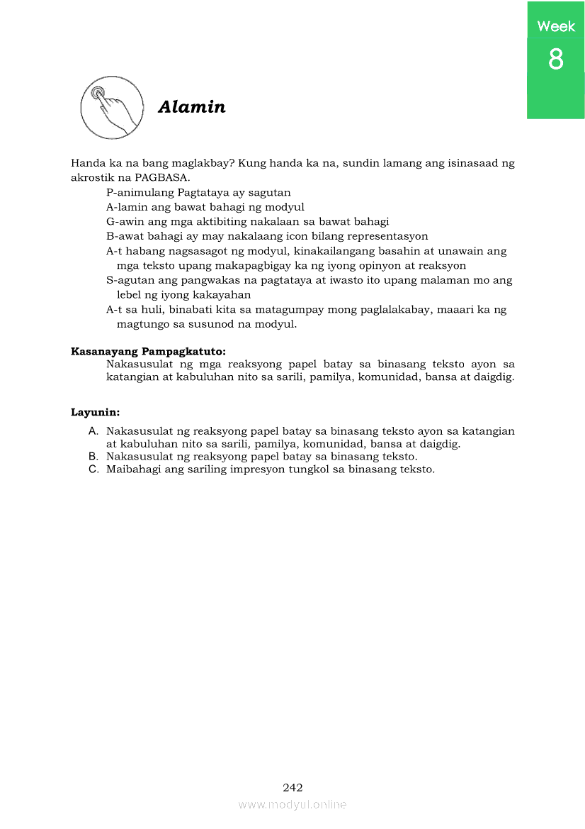 Pagbasa at Pagsusuri ng Iba't Ibang Teksto Tungo sa Pananaliksik (PIVOT)Apr 22, 2021 SHSGrab your copy of Collegio Advance - ULTIMATE Updated College Entrance Exam Reviewer and pass with flying colors 🎉. Pagbasa at Pagsusuri ng Iba't Ibang Teksto Tungo sa PananaliksikRelatedPagbasa at Pagsusuri ng Iba't Ibang Teksto Tungo sa Pananaliksik Ikaapat na Markahan–Modyul 4: Lohikal at Ugnayan ng mga Idea sa Pagsulat ng PananaliksikPagbasa at Pagsusuri ng Iba't Ibang Teksto Tungo sa Pananaliksik Ikaapat na Markahan–Modyul 3: Proseso sa Pagsulat ng PananaliksikPagbasa at Pagsusuri ng Iba't Ibang Teksto Tungo sa Pananaliksik Ikaapat na Markahan—Modyul 1: Pagsusuri ng Ilang Halimbawang Pananaliksik sa Filipino Batay sa Layunin, Gamit, Metodo, at Etika ng PananaliksikPagbasa at Pagsusuri ng Iba't Ibang Teksto Tungo sa Pananaliksik Ikaapat na Markahan–Modyul 2: Pagbibigay-Kahulugan sa mga Konseptong Kaugnay ng PananaliksikPagbasa at Pagsusuri ng Iba't Ibang Teksto Tungo sa Pananaliksik Ikaapat na Markahan–Modyul 5: Pagbuo ng Isang Maikling Pananaliksik sa mga Napapanahong Isyu