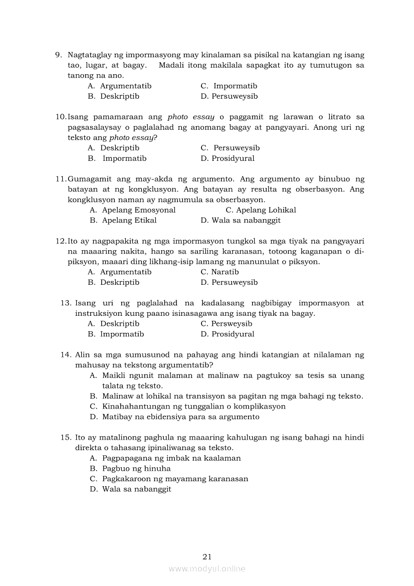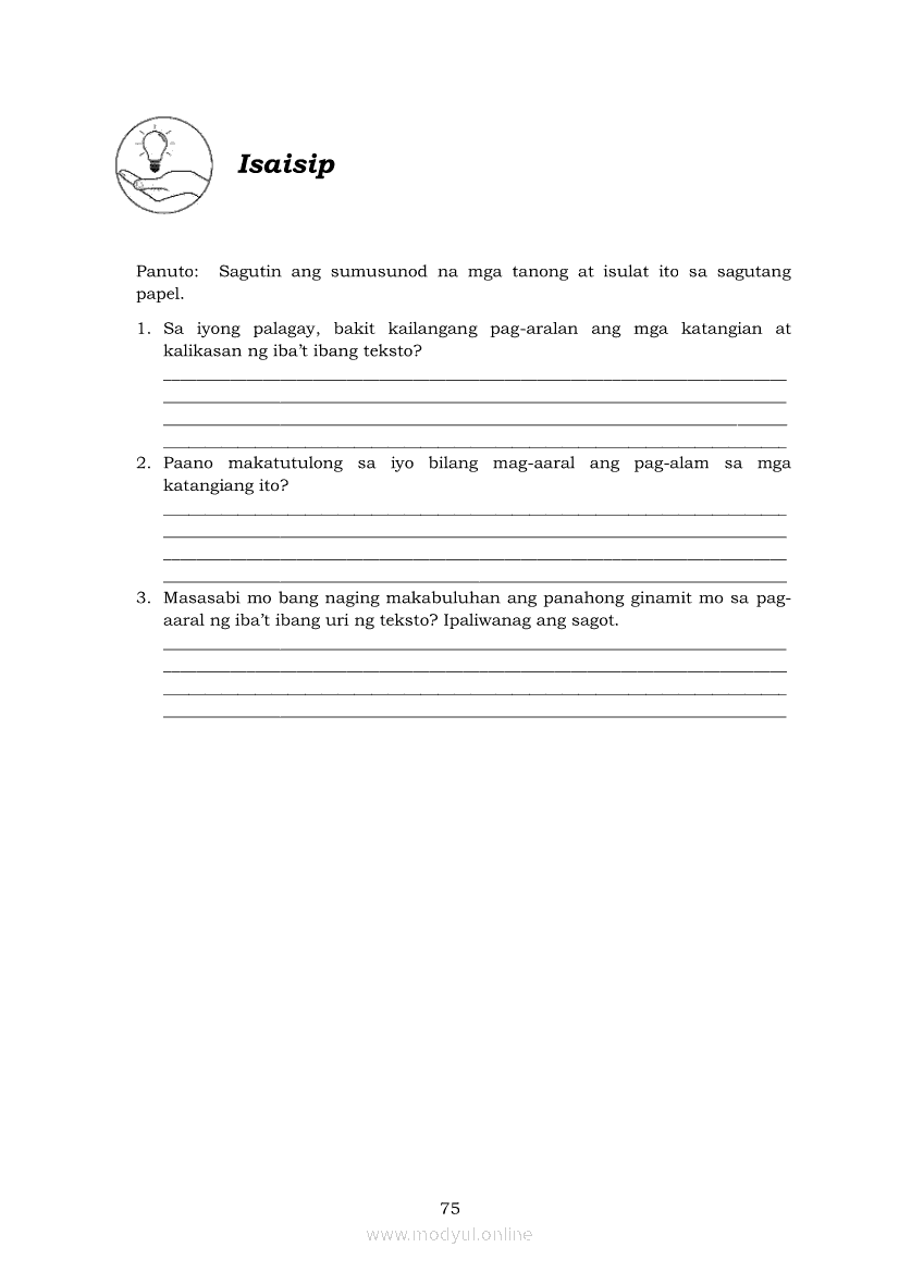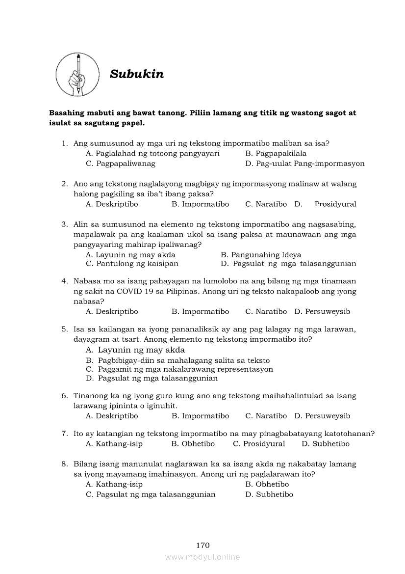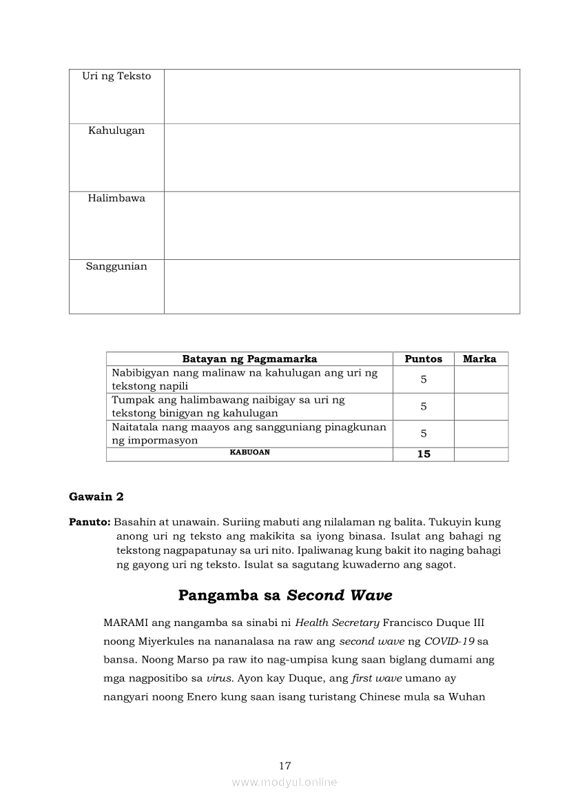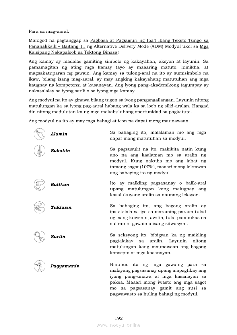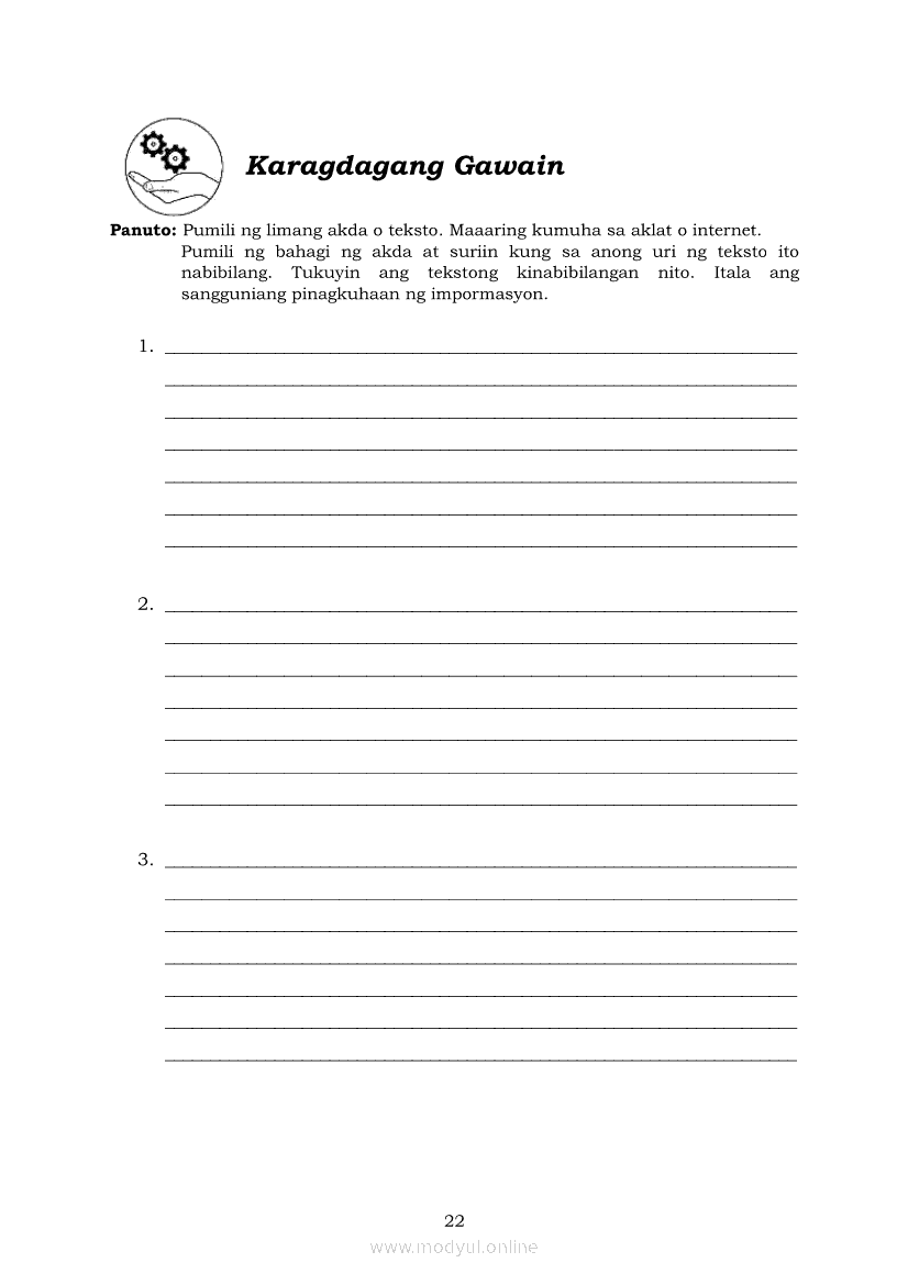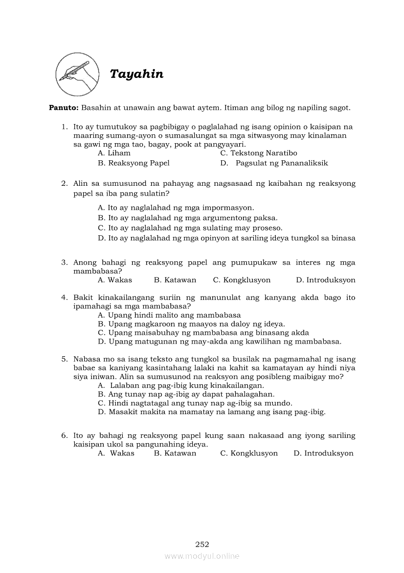 Pagbasa at Pagsusuri ng Iba't Ibang Teksto Tungo sa Pananaliksik (PIVOT)Apr 22, 2021 SHSGrab your copy of Collegio Advance - ULTIMATE Updated College Entrance Exam Reviewer and pass with flying colors 🎉. Pagbasa at Pagsusuri ng Iba't Ibang Teksto Tungo sa PananaliksikRelatedPagbasa at Pagsusuri ng Iba't Ibang Teksto Tungo sa Pananaliksik Ikaapat na Markahan–Modyul 4: Lohikal at Ugnayan ng mga Idea sa Pagsulat ng PananaliksikPagbasa at Pagsusuri ng Iba't Ibang Teksto Tungo sa Pananaliksik Ikaapat na Markahan–Modyul 3: Proseso sa Pagsulat ng PananaliksikPagbasa at Pagsusuri ng Iba't Ibang Teksto Tungo sa Pananaliksik Ikaapat na Markahan—Modyul 1: Pagsusuri ng Ilang Halimbawang Pananaliksik sa Filipino Batay sa Layunin, Gamit, Metodo, at Etika ng PananaliksikPagbasa at Pagsusuri ng Iba't Ibang Teksto Tungo sa Pananaliksik Ikaapat na Markahan–Modyul 2: Pagbibigay-Kahulugan sa mga Konseptong Kaugnay ng PananaliksikPagbasa at Pagsusuri ng Iba't Ibang Teksto Tungo sa Pananaliksik Ikaapat na Markahan–Modyul 5: Pagbuo ng Isang Maikling Pananaliksik sa mga Napapanahong Isyu