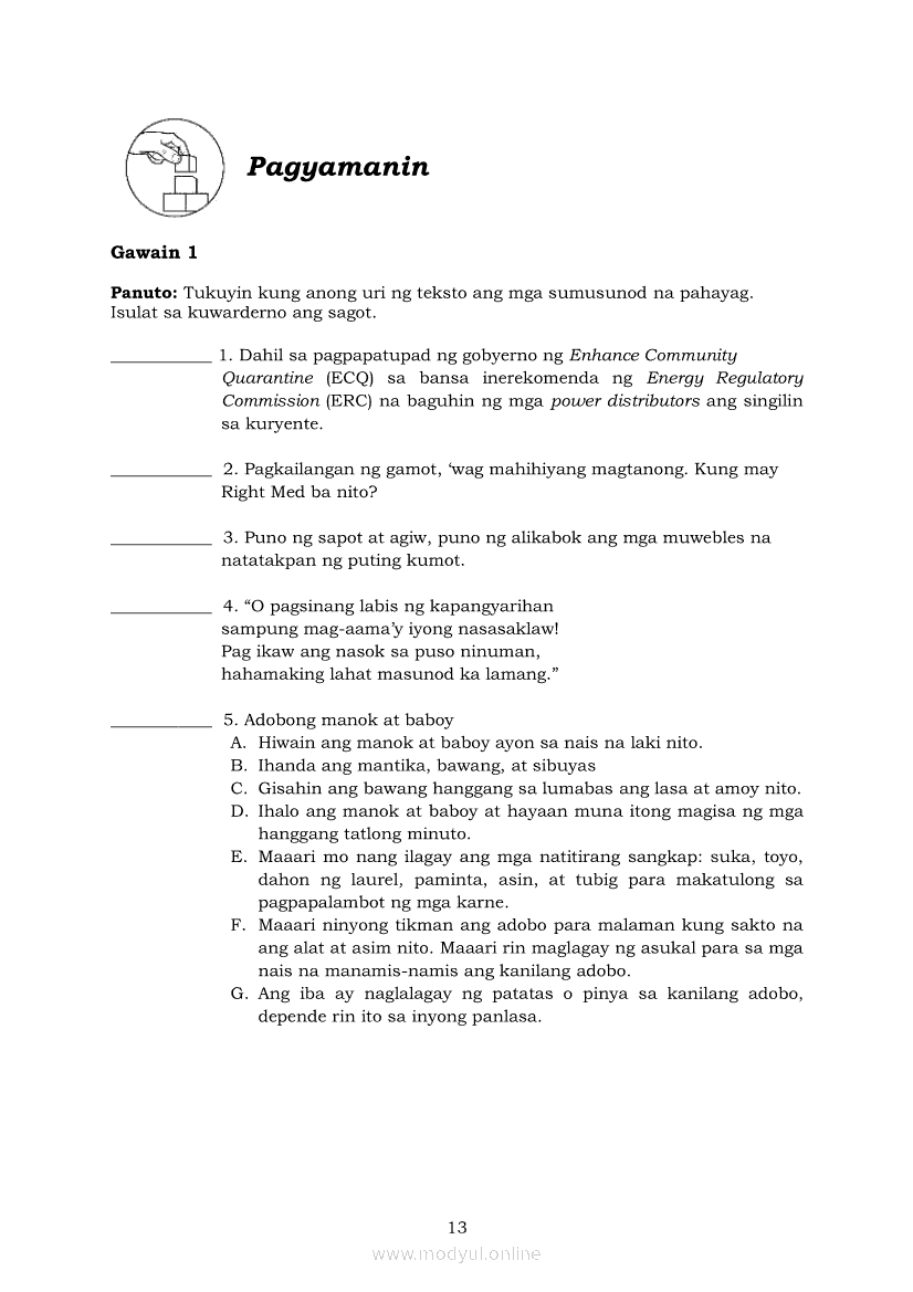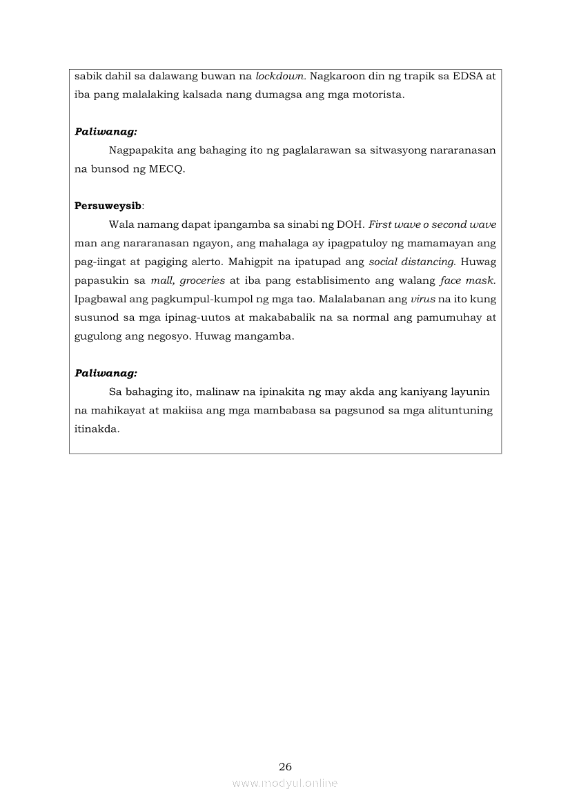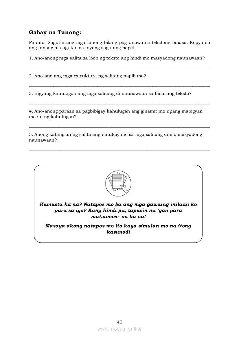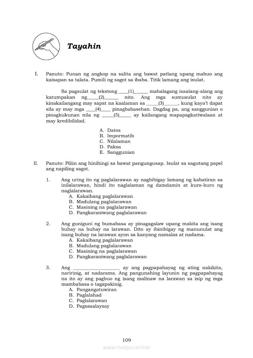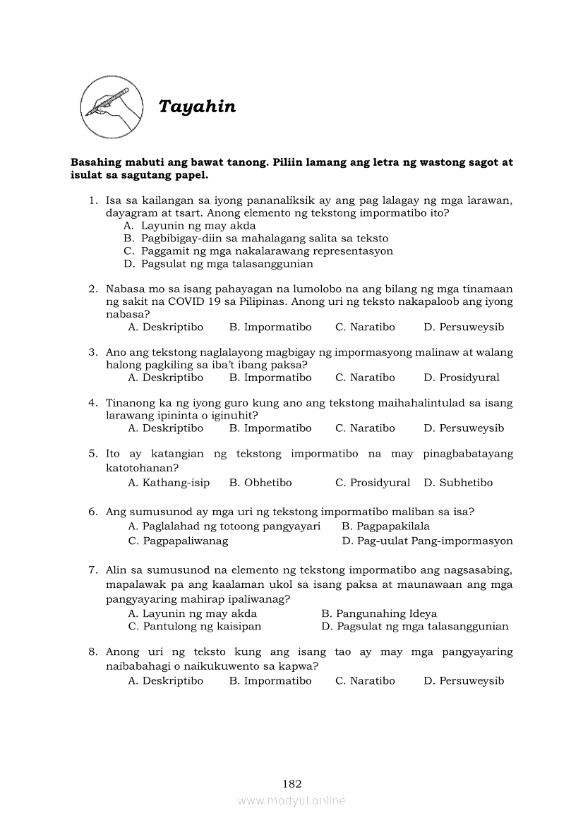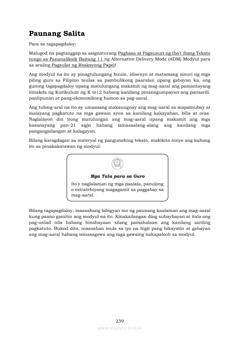 Pagbasa at Pagsusuri ng Iba't Ibang Teksto Tungo sa Pananaliksik (PIVOT)Apr 22, 2021 SHSGrab your copy of Collegio Advance - ULTIMATE Updated College Entrance Exam Reviewer and pass with flying colors 🎉. Pagbasa at Pagsusuri ng Iba't Ibang Teksto Tungo sa PananaliksikRelatedPagbasa at Pagsusuri ng Iba't Ibang Teksto Tungo sa Pananaliksik Ikaapat na Markahan–Modyul 4: Lohikal at Ugnayan ng mga Idea sa Pagsulat ng PananaliksikPagbasa at Pagsusuri ng Iba't Ibang Teksto Tungo sa Pananaliksik Ikaapat na Markahan–Modyul 3: Proseso sa Pagsulat ng PananaliksikPagbasa at Pagsusuri ng Iba't Ibang Teksto Tungo sa Pananaliksik Ikaapat na Markahan—Modyul 1: Pagsusuri ng Ilang Halimbawang Pananaliksik sa Filipino Batay sa Layunin, Gamit, Metodo, at Etika ng PananaliksikPagbasa at Pagsusuri ng Iba't Ibang Teksto Tungo sa Pananaliksik Ikaapat na Markahan–Modyul 2: Pagbibigay-Kahulugan sa mga Konseptong Kaugnay ng PananaliksikPagbasa at Pagsusuri ng Iba't Ibang Teksto Tungo sa Pananaliksik Ikaapat na Markahan–Modyul 5: Pagbuo ng Isang Maikling Pananaliksik sa mga Napapanahong Isyu