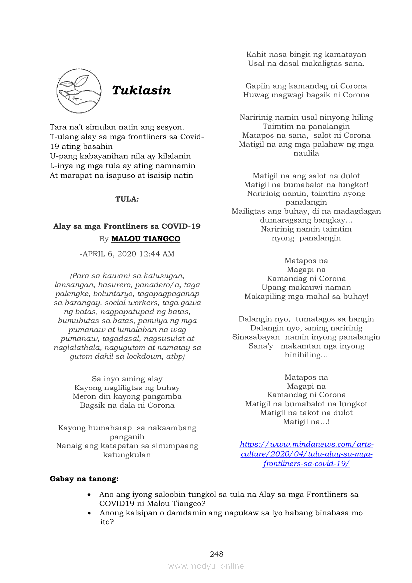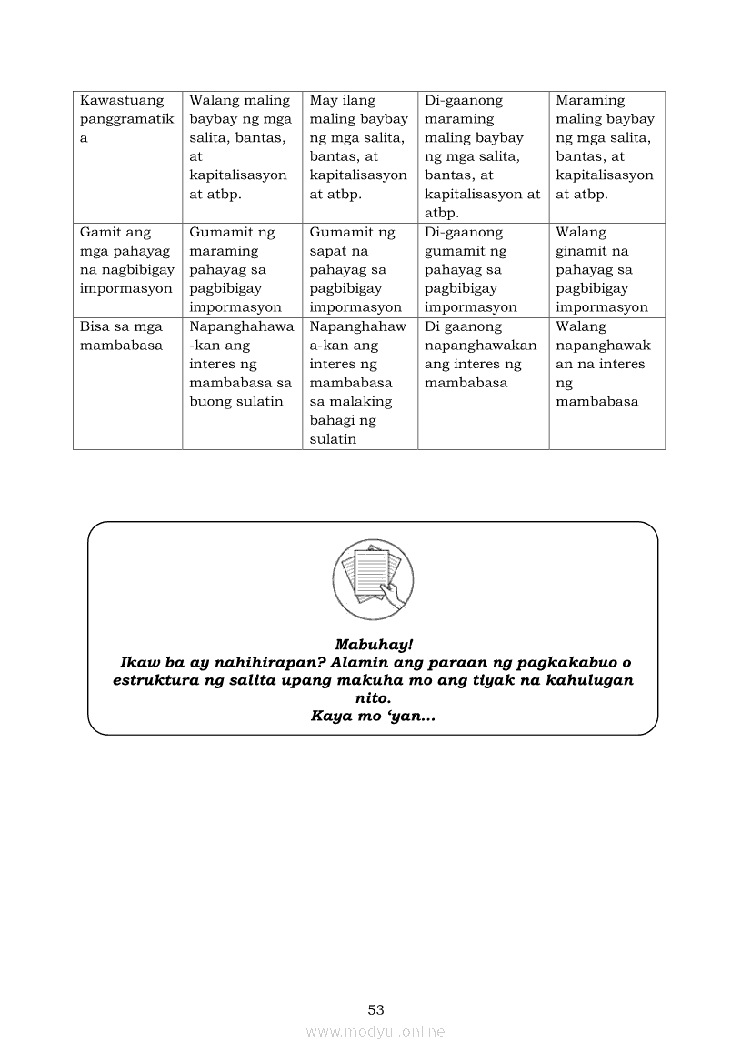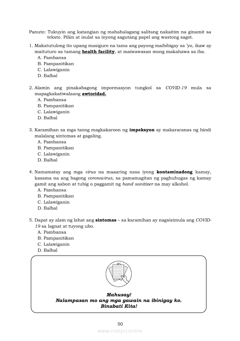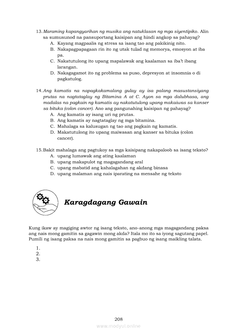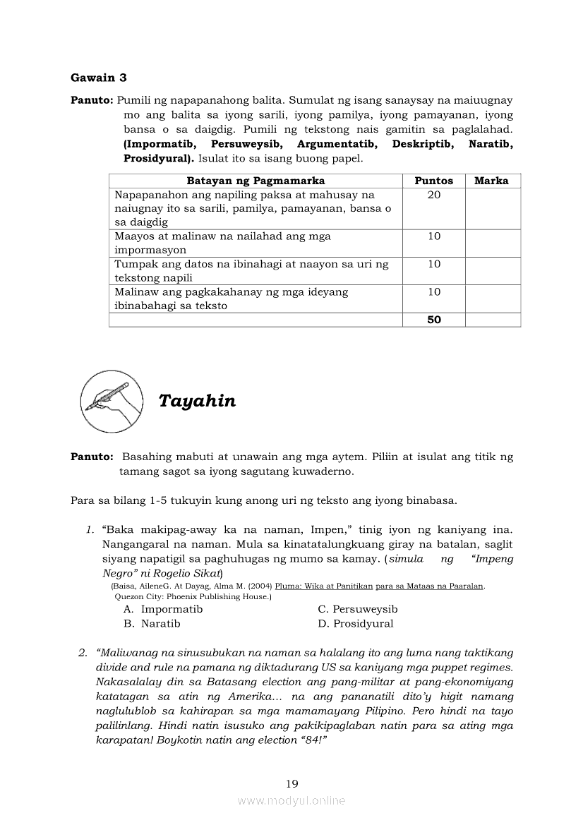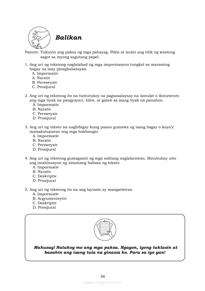 Pagbasa at Pagsusuri ng Iba't Ibang Teksto Tungo sa Pananaliksik (PIVOT)Apr 22, 2021 SHSGrab your copy of Collegio Advance - ULTIMATE Updated College Entrance Exam Reviewer and pass with flying colors 🎉. Pagbasa at Pagsusuri ng Iba't Ibang Teksto Tungo sa PananaliksikRelatedPagbasa at Pagsusuri ng Iba't Ibang Teksto Tungo sa Pananaliksik Ikaapat na Markahan–Modyul 4: Lohikal at Ugnayan ng mga Idea sa Pagsulat ng PananaliksikPagbasa at Pagsusuri ng Iba't Ibang Teksto Tungo sa Pananaliksik Ikaapat na Markahan–Modyul 3: Proseso sa Pagsulat ng PananaliksikPagbasa at Pagsusuri ng Iba't Ibang Teksto Tungo sa Pananaliksik Ikaapat na Markahan—Modyul 1: Pagsusuri ng Ilang Halimbawang Pananaliksik sa Filipino Batay sa Layunin, Gamit, Metodo, at Etika ng PananaliksikPagbasa at Pagsusuri ng Iba't Ibang Teksto Tungo sa Pananaliksik Ikaapat na Markahan–Modyul 2: Pagbibigay-Kahulugan sa mga Konseptong Kaugnay ng PananaliksikPagbasa at Pagsusuri ng Iba't Ibang Teksto Tungo sa Pananaliksik Ikaapat na Markahan–Modyul 5: Pagbuo ng Isang Maikling Pananaliksik sa mga Napapanahong Isyu