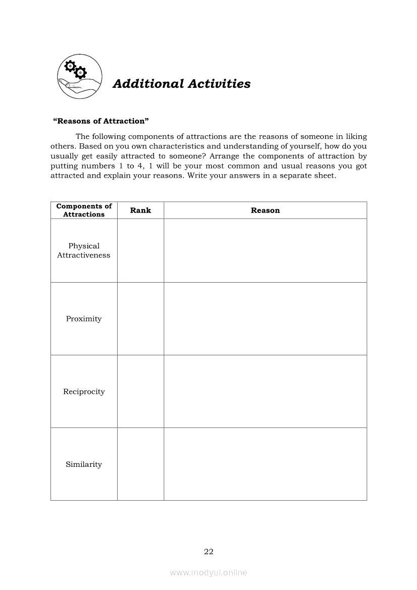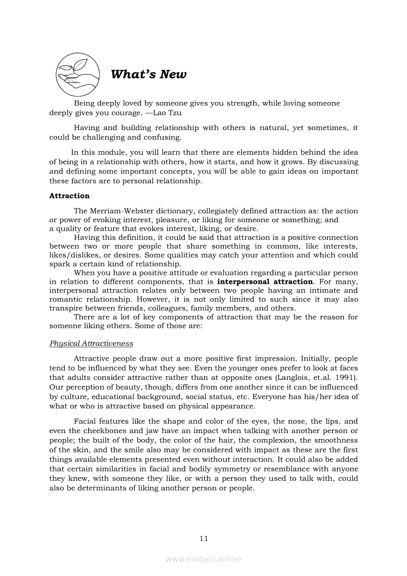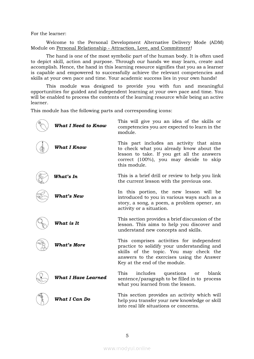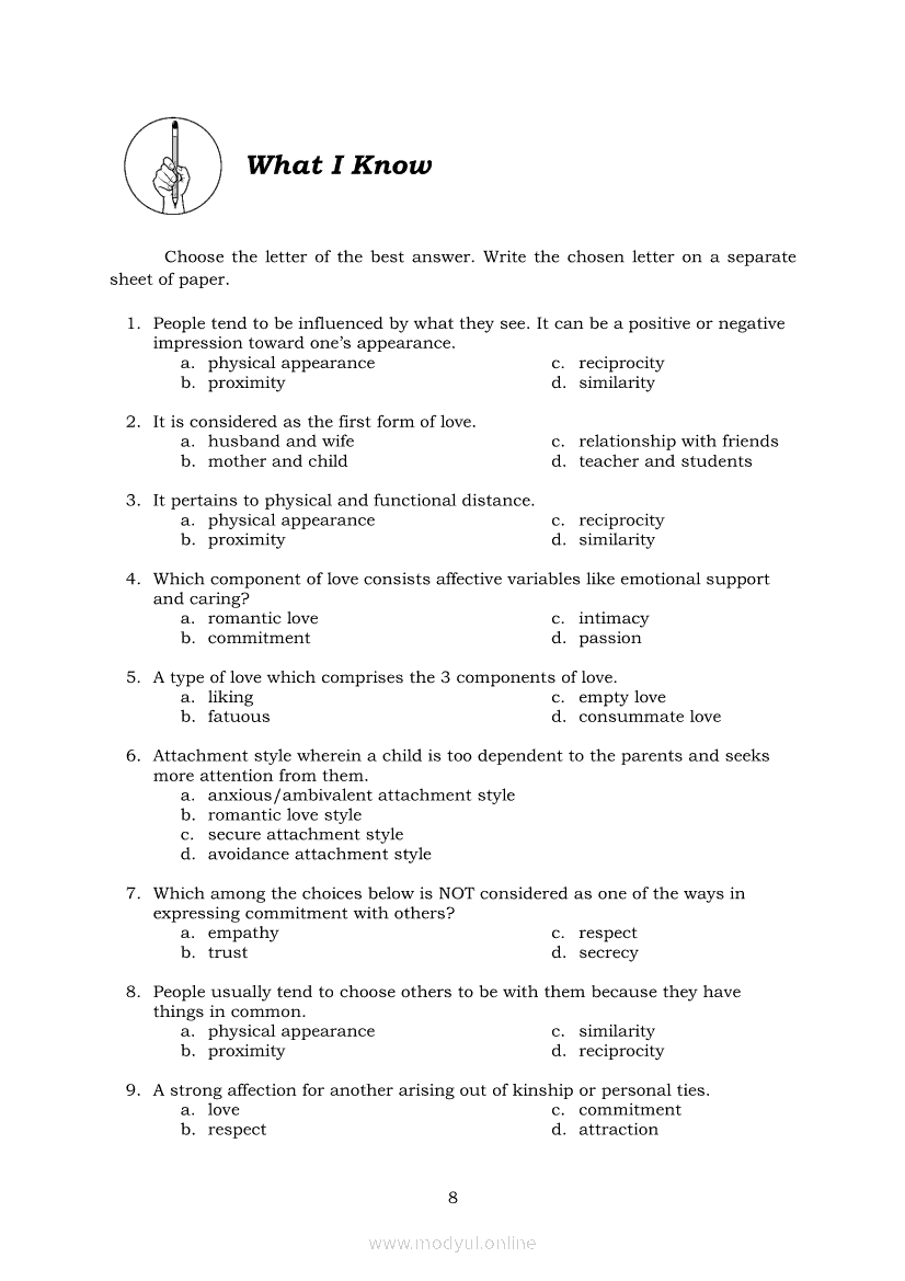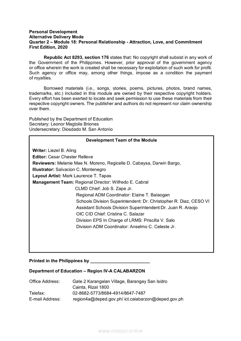 Personal Development Quarter 2 – Module 18: Personal Relationship – Attraction, Love, and CommitmentApr 22, 2021 SHSGrab your copy of Collegio Advance - ULTIMATE Updated College Entrance Exam Reviewer and pass with flying colors 🎉. Personal DevelopmentRelatedPersonal Development Quarter 2 – Module 21: Social InfluencePersonal Development Quarter 2 – Module 31 Creative visualization of personal development through the various stages that you went throughPersonal Development Quarter 2 – Module 29: Factors in Personal Development: Guide in Making Important Career DecisionsPersonal Development (PIVOT)Personal Development Quarter 2 – Module:20 Various Roles of Different Individuals in Society and How They Can Influence People Through their Leadership or Followership