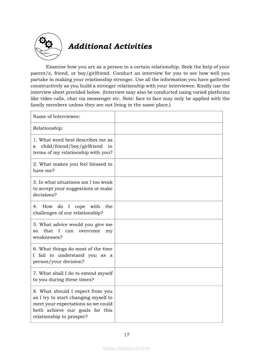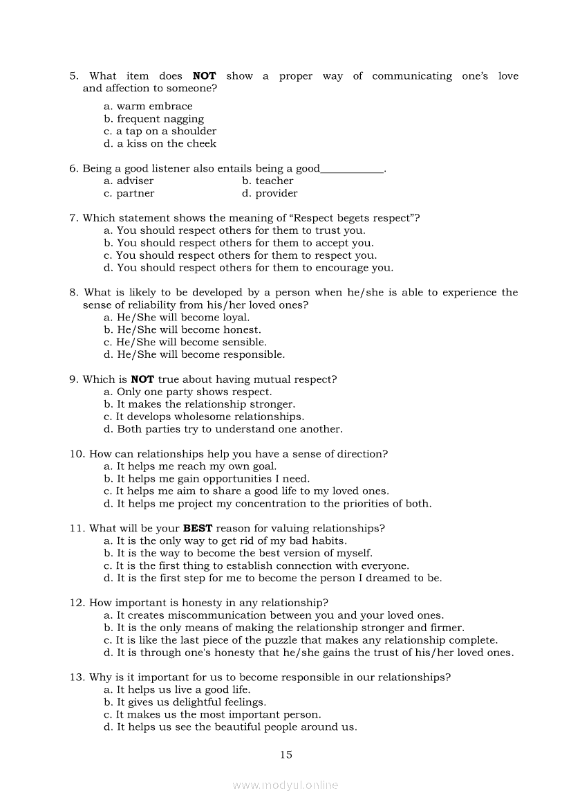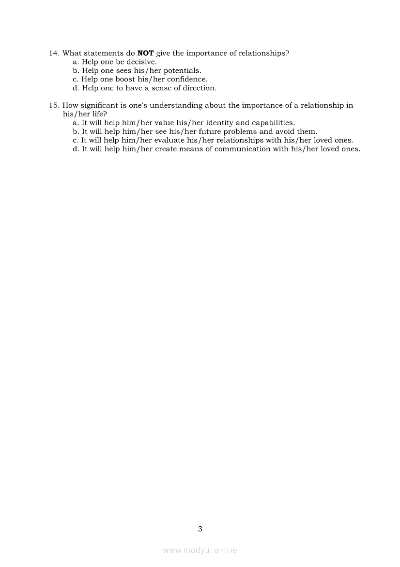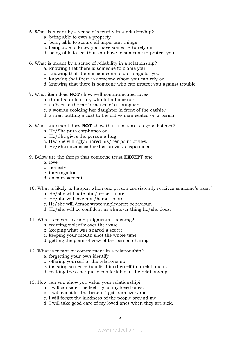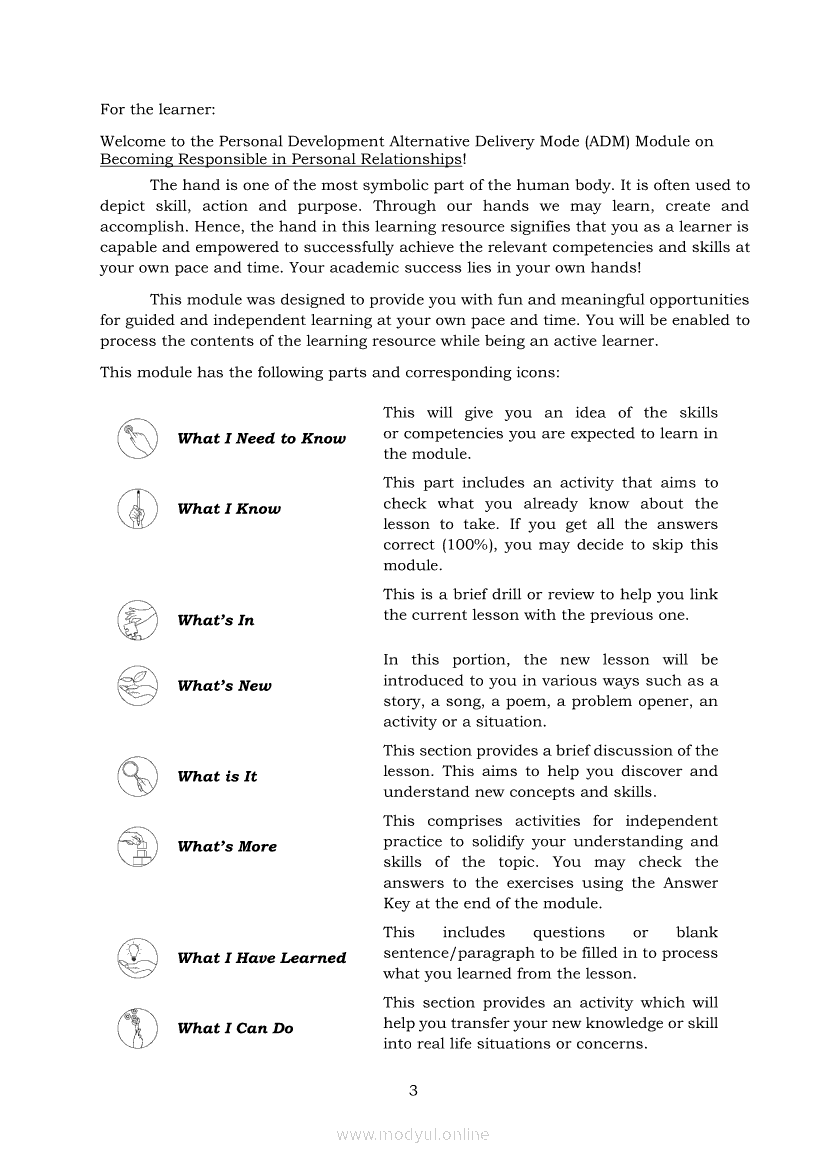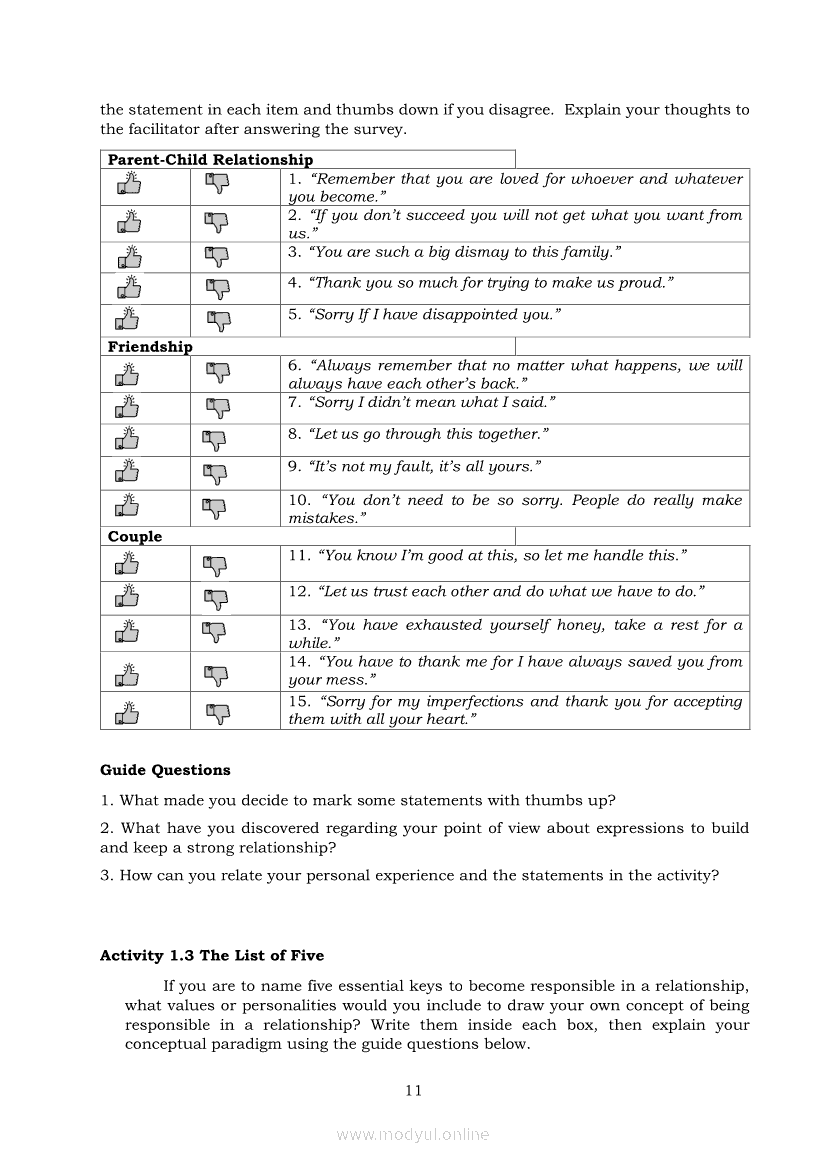 Personal Development Quarter 2 – Module 19: Becoming Responsible in Personal RelationshipsApr 22, 2021 SHSGrab your copy of Collegio Advance - ULTIMATE Updated College Entrance Exam Reviewer and pass with flying colors 🎉. Personal DevelopmentRelatedPersonal Development Quarter 2 – Module 29: Factors in Personal Development: Guide in Making Important Career DecisionsPersonal Development Quarter 2 – Module 27: Career Options Based on Career Development Concepts and Personal Life GoalsPersonal Development Quarter 2 – Module 30: Importance of Personal Development in Making a Career DecisionPersonal Development Quarter 2 – Module 23: Family Structures and LegaciesPersonal Development Quarter 2 – Module 22: Conduct a Mini-survey on Filipino Relationships (family, school, and community)