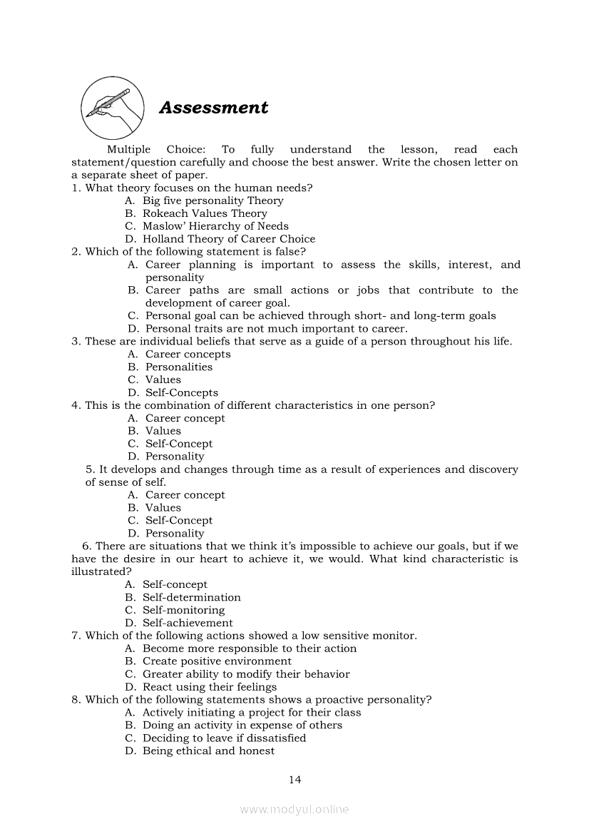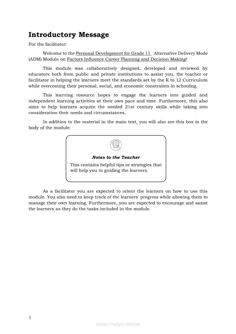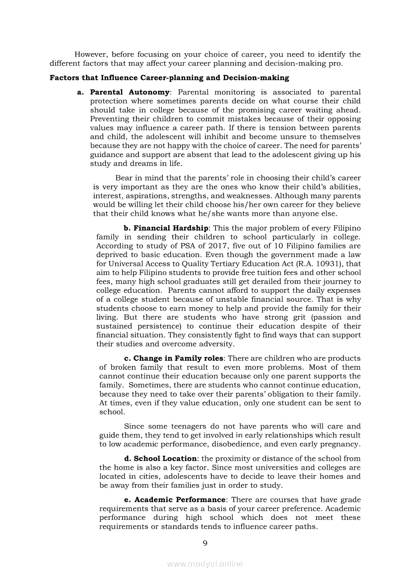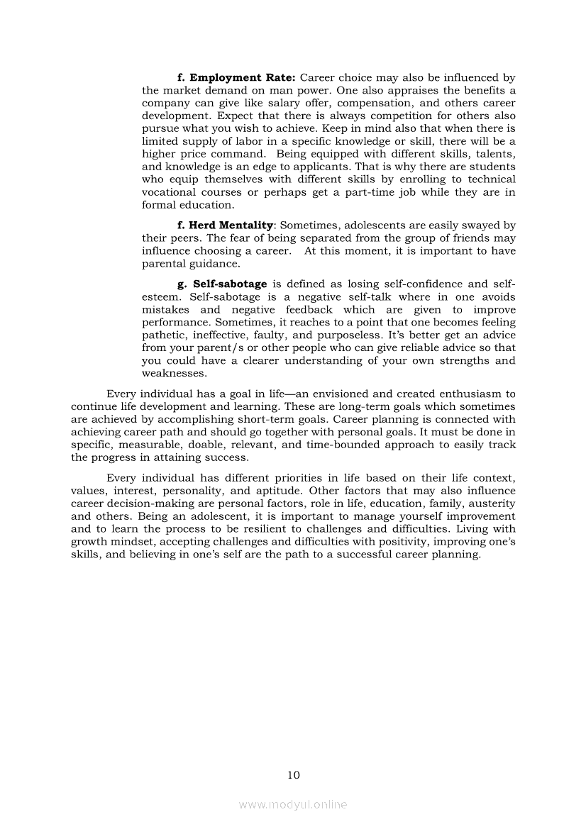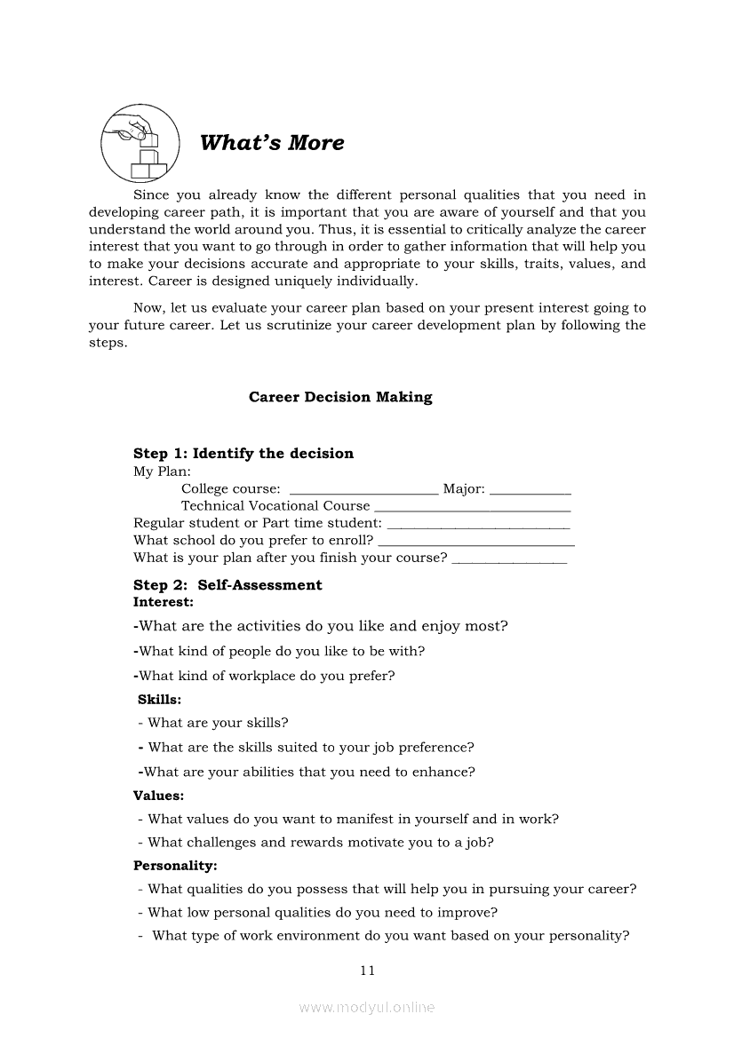 Personal Development Quarter 2 β Module 26: Factors Influence Career Planning and Decision MakingApr 22, 2021 SHSGrab your copy of Collegio Advance - ULTIMATE Updated College Entrance Exam Reviewer and pass with flying colors π. Personal DevelopmentRelatedPersonal Development Quarter 2 β Module 30: Importance of Personal Development in Making a Career DecisionPersonal Development Quarter 2 β Module:20 Various Roles of Different Individuals in Society and How They Can Influence People Through their Leadership or FollowershipPersonal Development Quarter 2 β Module 28: Identifying Career Option Leading to Attaining Oneβs Personal GoalPersonal Development Quarter 2 β Module 21: Social InfluencePersonal Development (PIVOT)