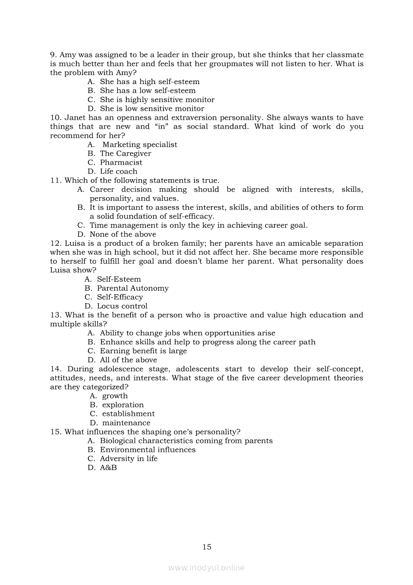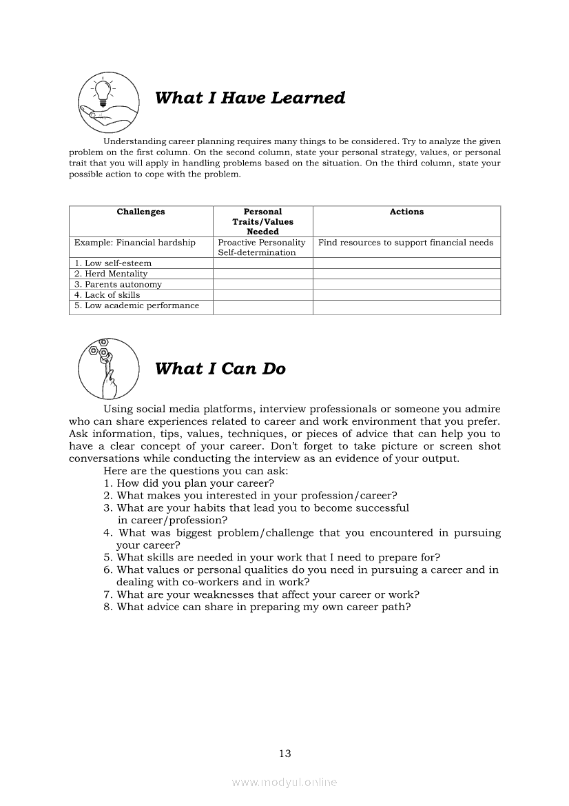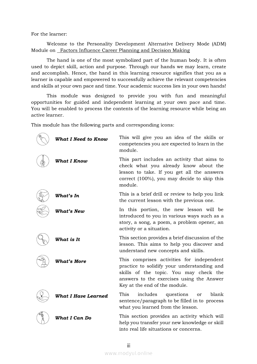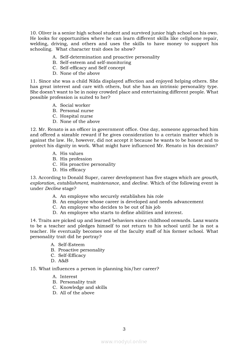 Personal Development Quarter 2 β Module 26: Factors Influence Career Planning and Decision MakingApr 22, 2021 SHSGrab your copy of Collegio Advance - ULTIMATE Updated College Entrance Exam Reviewer and pass with flying colors π. Personal DevelopmentRelatedPersonal Development Quarter 2 β Module 30: Importance of Personal Development in Making a Career DecisionPersonal Development Quarter 2 β Module:20 Various Roles of Different Individuals in Society and How They Can Influence People Through their Leadership or FollowershipPersonal Development Quarter 2 β Module 28: Identifying Career Option Leading to Attaining Oneβs Personal GoalPersonal Development Quarter 2 β Module 21: Social InfluencePersonal Development (PIVOT)