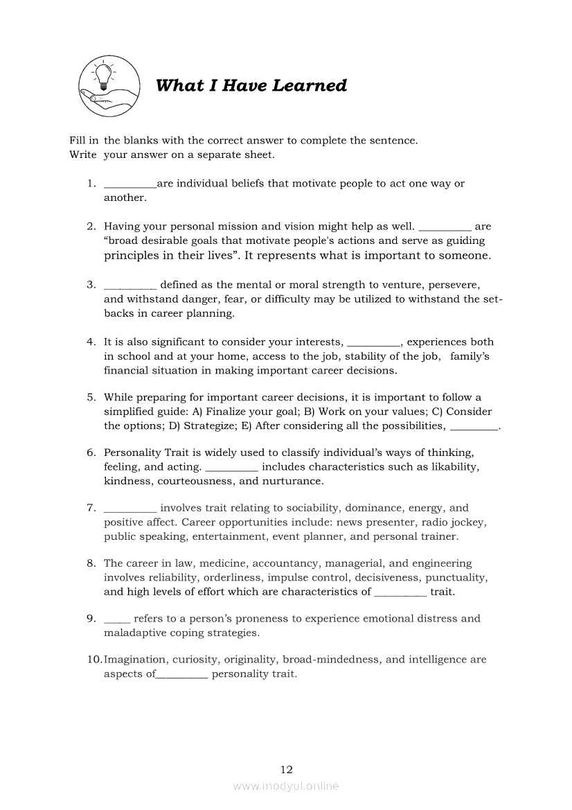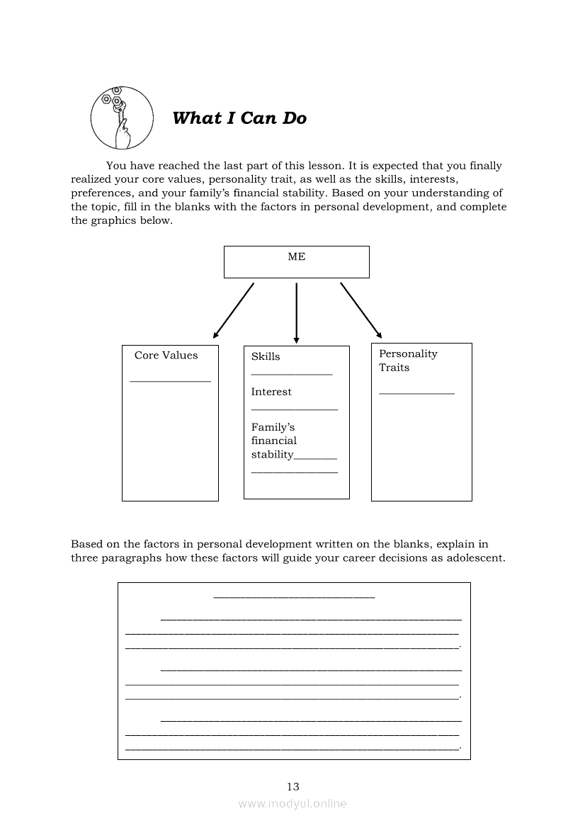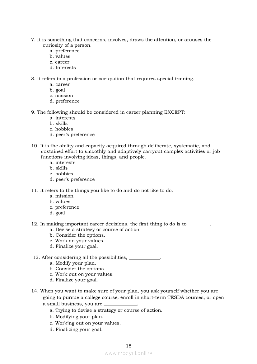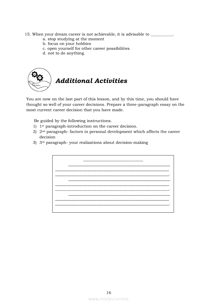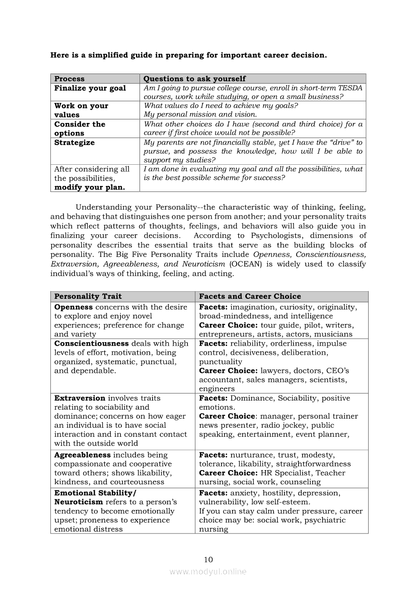 Personal Development Quarter 2 – Module 29: Factors in Personal Development: Guide in Making Important Career DecisionsApr 22, 2021 SHSGrab your copy of Collegio Advance - ULTIMATE Updated College Entrance Exam Reviewer and pass with flying colors 🎉. Personal DevelopmentRelatedPersonal Development (PIVOT)Personal Development Quarter 2 – Module 17: Teen-age Relationships Including the Acceptable and Unacceptable Expressions of AttractionsPersonal Development Quarter 2 – Module 24: Make a Genogram and Trace Certain Physical, Personality, or Behavioral Attributes through GenerationsPersonal Development Quarter 2 – Module 22: Conduct a Mini-survey on Filipino Relationships (family, school, and community)Personal Development Quarter 2 – Module 18: Personal Relationship – Attraction, Love, and Commitment