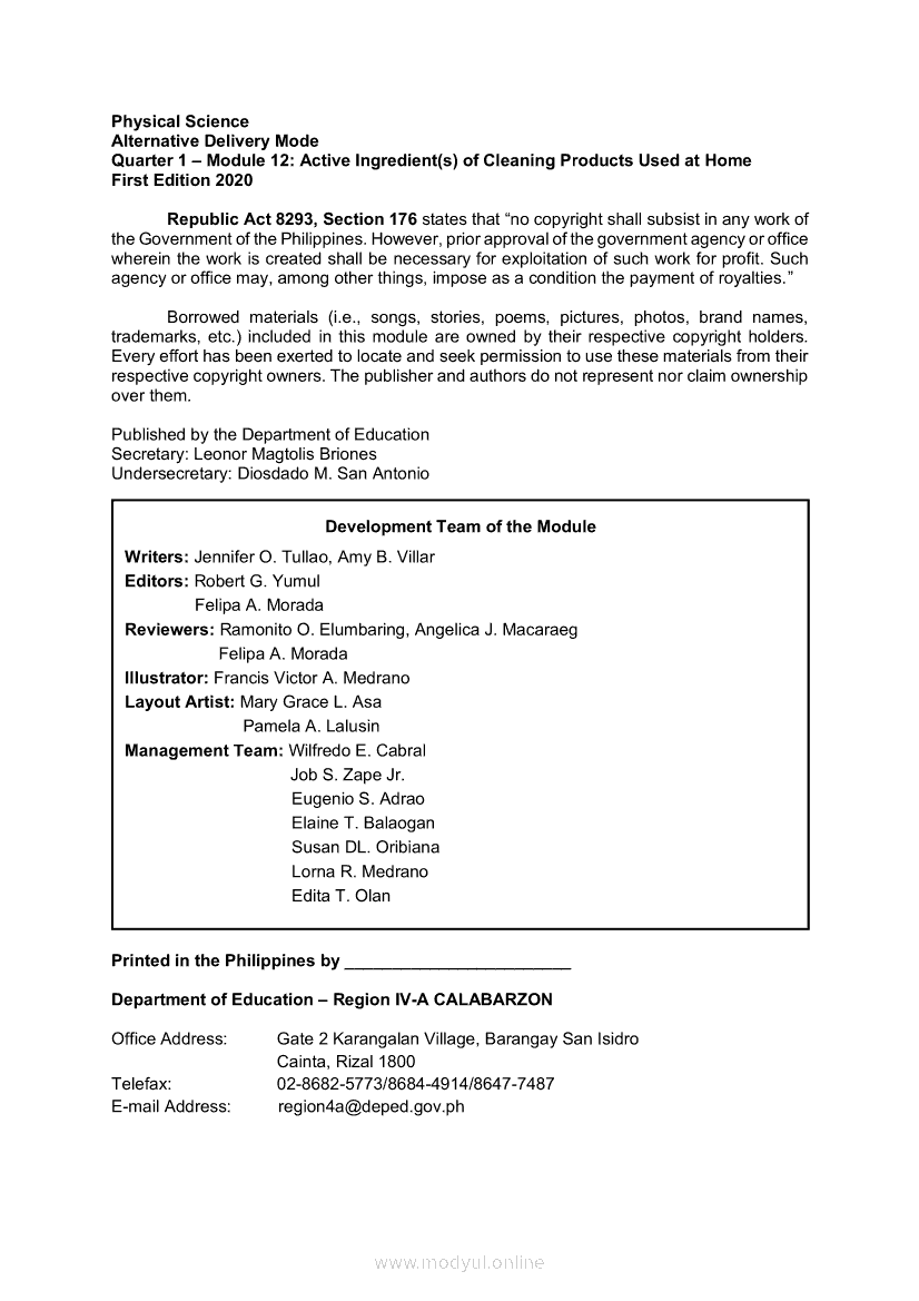 Physical Science Module 12: Active Ingredient(s) of Cleaning Products Used at HomeApr 22, 2021 SHSGrab your copy of Collegio Advance - ULTIMATE Updated College Entrance Exam Reviewer and pass with flying colors 🎉. Physical ScienceRelatedPhysical Science Quarter 2 – Module 3 Modern AstronomyPhysical Science Quarter 2 – Module 7: Propagation of LightPhysical Science Module 11: How Energy is Produced and ManagedPhysical Science Quarter 2 – Module 14: The Consequences of the Postulates of Special Relativity TheoryPhysical Science Quarter 2 – Module 2: Examples of Astronomical Phenomena Before the Advent of Telescopes