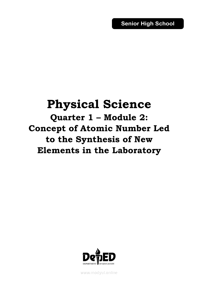 Physical Science Module 2: Concept of Atomic Number Led to the Synthesis of New Elements in the LaboratoryApr 22, 2021 SHSGrab your copy of Collegio Advance - ULTIMATE Updated College Entrance Exam Reviewer and pass with flying colors 🎉. Physical ScienceRelatedPhysical Science Module 9: CatalystPhysical Science Physical Science (PIVOT)Physical Science Module 13: Use of the Other Ingredients in Cleaning AgentsPhysical Science Quarter 2 – Module 5 How Galileo Inferred that Objects in Vacuum Fall in Uniform AccelerationPhysical Science Quarter 2 – Module 12 Radio Waves