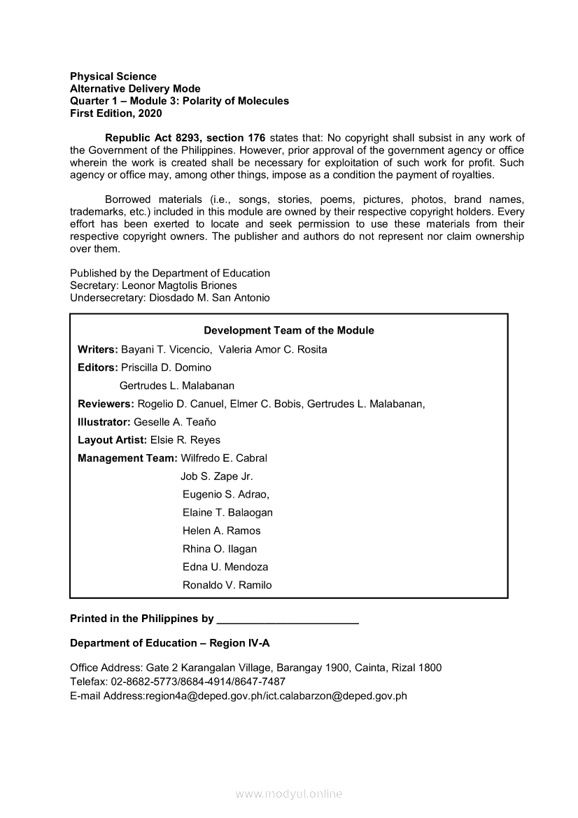 Physical Science Module 4: Polarity of Molecules and Its PropertiesApr 22, 2021 SHSGrab your copy of Collegio Advance - ULTIMATE Updated College Entrance Exam Reviewer and pass with flying colors 🎉. Physical ScienceRelatedPhysical Science Module 5: General Types of Intermolecular ForcesPhysical Science Module 1-Formation of Heavy ElementsPhysical Science Quarter 2 – Module 15 General Theory of RelativityPhysical Science Quarter 2 – Module 17:How We Know That We Live In An Expanding UniversePhysical Science Quarter 2 – Module 3 Modern Astronomy