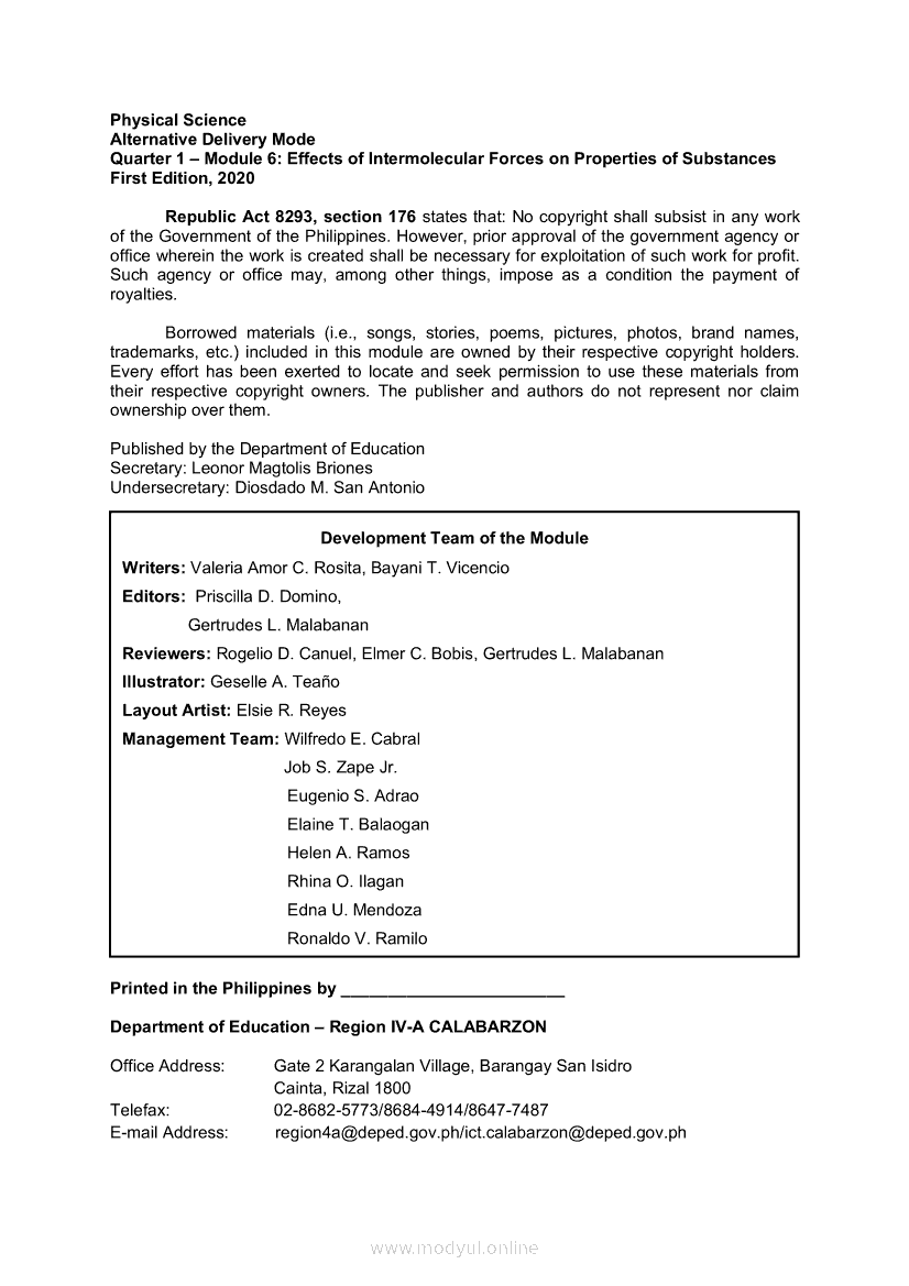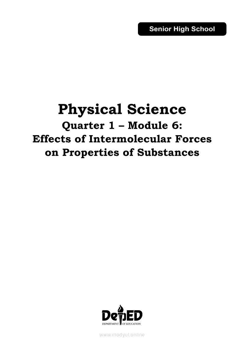 Physical Science Module 6: Effects of Intermolecular Forces on Properties of SubstancesApr 22, 2021 SHSGrab your copy of Collegio Advance - ULTIMATE Updated College Entrance Exam Reviewer and pass with flying colors 🎉. Physical ScienceRelatedPhysical Science Module 8: Collision Theory and Chemical Reaction RatePhysical Science Quarter 2 – Module 16 How the Speeds and Distances of Far-off Objects are Estimated (e.g., Doppler Effect and Cosmic Distance Ladder)Physical Science Quarter 2 – Module 8: Photon Concept and Its Practical ApplicationPhysical Science Physical Science (PIVOT)Physical Science Quarter 2 – Module 7: Propagation of Light