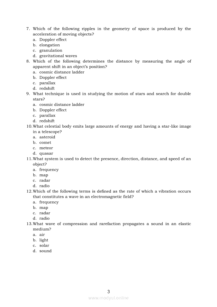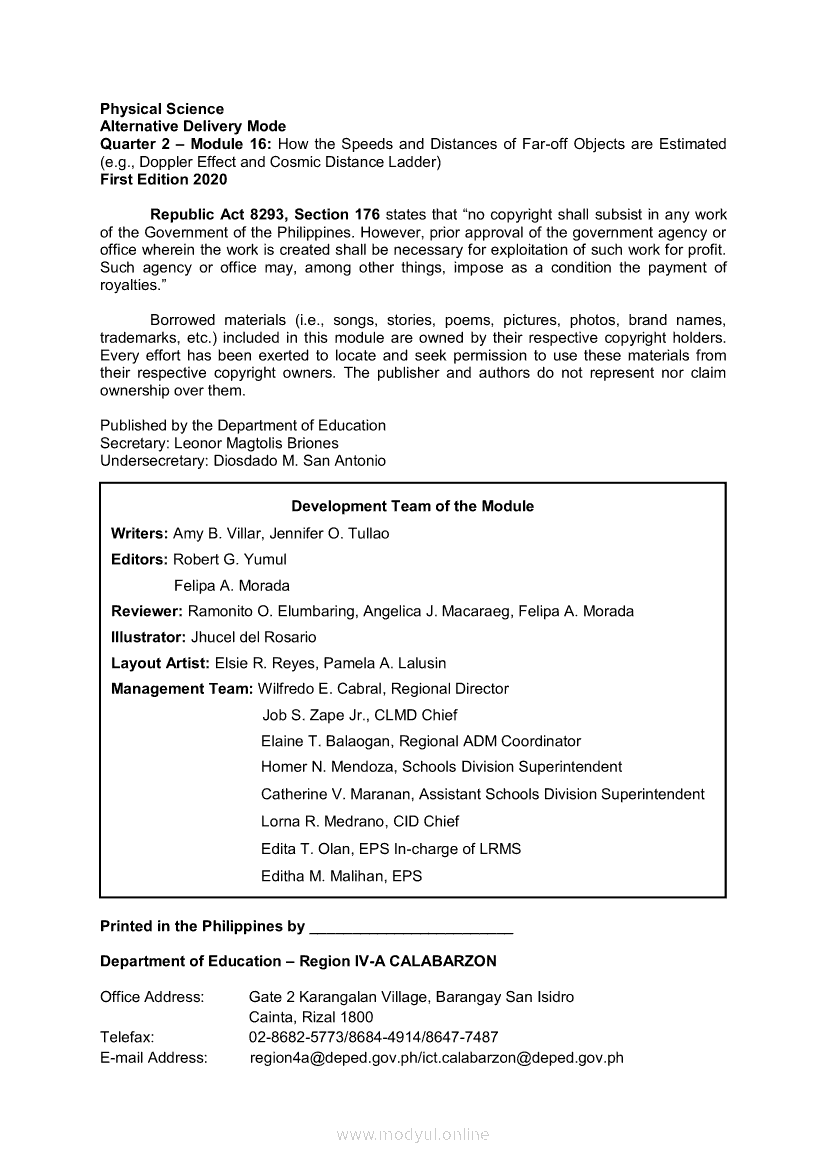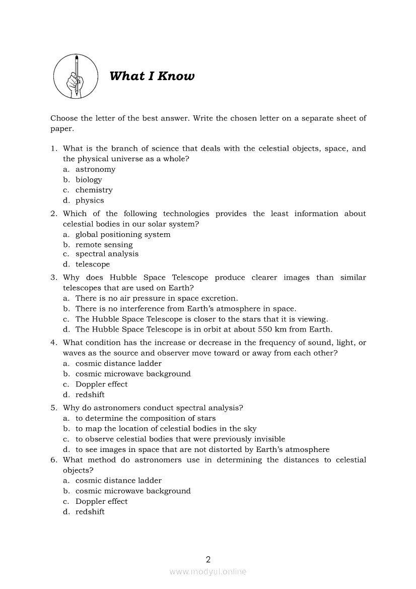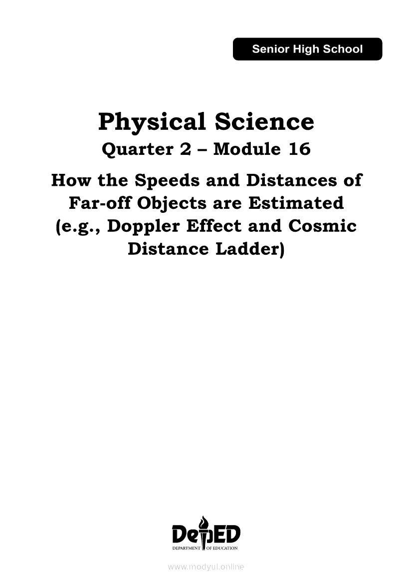 Physical Science Quarter 2 – Module 16 How the Speeds and Distances of Far-off Objects are Estimated (e.g., Doppler Effect and Cosmic Distance Ladder)Apr 22, 2021 SHSGrab your copy of Collegio Advance - ULTIMATE Updated College Entrance Exam Reviewer and pass with flying colors 🎉. Physical ScienceRelatedPhysical Science Quarter 2 – Module 8: Photon Concept and Its Practical ApplicationPhysical Science Module 13: Use of the Other Ingredients in Cleaning AgentsPhysical Science Module 5: General Types of Intermolecular ForcesPhysical Science Module 4: Polarity of Molecules and Its PropertiesPhysical Science Module 10: Limiting Reactants and the Amount of Products Formed