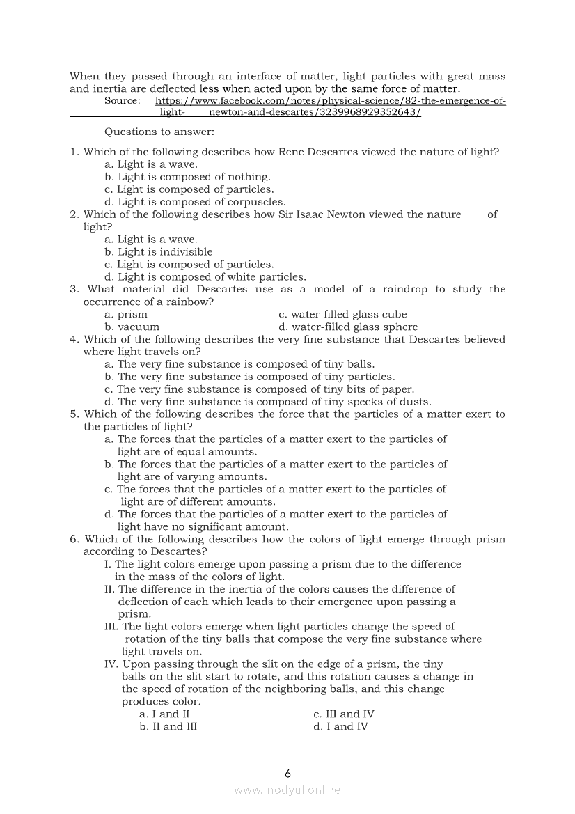Physical Science Quarter 2 – Module 8: Photon Concept and Its Practical ApplicationApr 22, 2021 SHSGrab your copy of Collegio Advance - ULTIMATE Updated College Entrance Exam Reviewer and pass with flying colors 🎉. Physical ScienceRelatedPhysical Science Module 1-Formation of Heavy ElementsPhysical Science Quarter 2 – Module 1 Ancient AstronomyPhysical Science Module 8: Collision Theory and Chemical Reaction RatePhysical Science Module 10: Limiting Reactants and the Amount of Products FormedPhysical Science Quarter 2 – Module 16 How the Speeds and Distances of Far-off Objects are Estimated (e.g., Doppler Effect and Cosmic Distance Ladder)