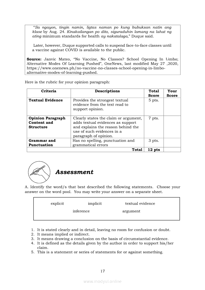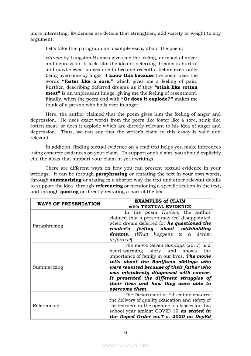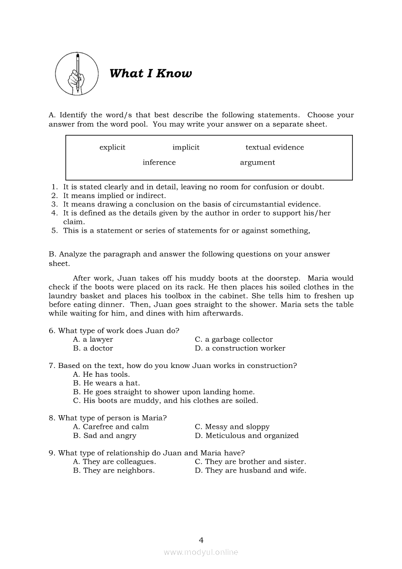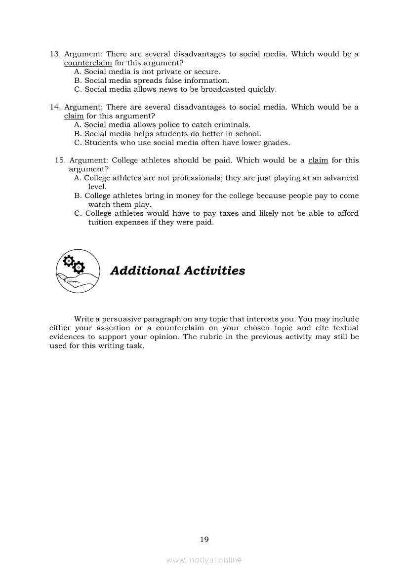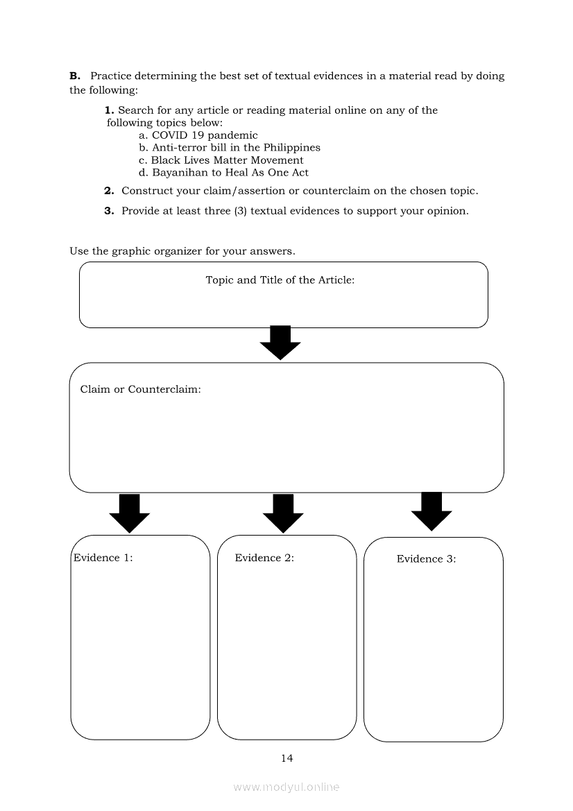 Reading and Writing Skills Quarter 4 – Module 7: Determining Textual EvidenceApr 22, 2021 SHSGrab your copy of Collegio Advance - ULTIMATE Updated College Entrance Exam Reviewer and pass with flying colors 🎉. Reading and Writing SkillsRelatedReading and Writing Skills PIVOT-ModuleReading and Writing Skills Quarter 4 – Module 4: Hypertext and IntertextReading and Writing Skills Quarter 4 – Module 5: Critical Reading as ReasoningReading and Writing Skills Quarter 4 – Module 8: Composing Academic WritingReading and Writing Skills Quarter 4 – Module 9: Composing Professional Correspondence