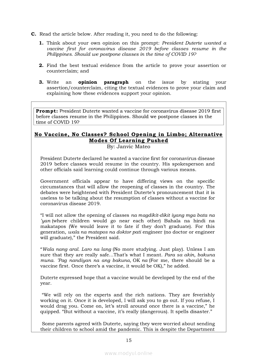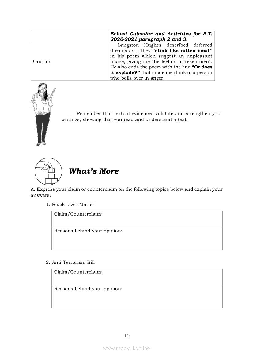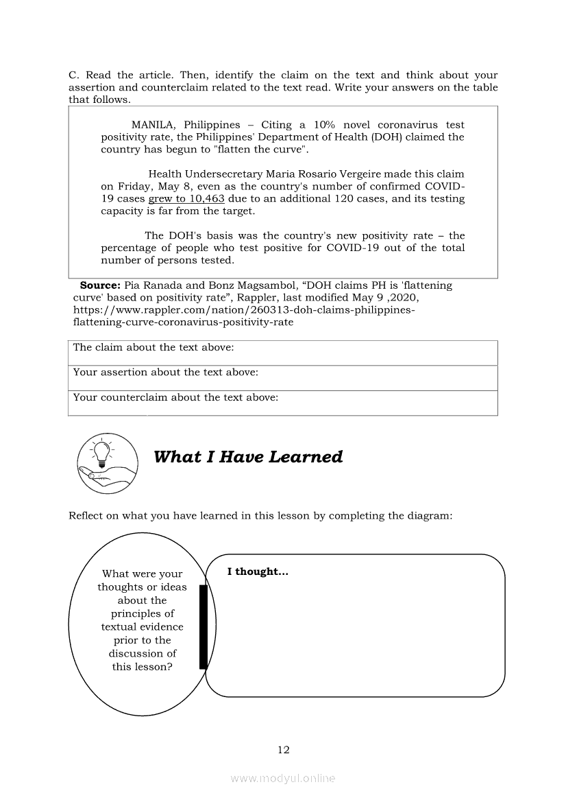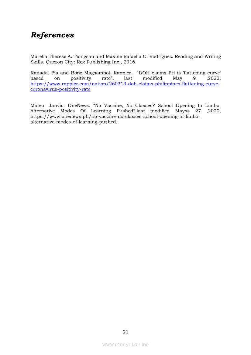 Reading and Writing Skills Quarter 4 – Module 7: Determining Textual EvidenceApr 22, 2021 SHSGrab your copy of Collegio Advance - ULTIMATE Updated College Entrance Exam Reviewer and pass with flying colors 🎉. Reading and Writing SkillsRelatedReading and Writing Skills PIVOT-ModuleReading and Writing Skills Quarter 4 – Module 4: Hypertext and IntertextReading and Writing Skills Quarter 4 – Module 5: Critical Reading as ReasoningReading and Writing Skills Quarter 4 – Module 8: Composing Academic WritingReading and Writing Skills Quarter 4 – Module 9: Composing Professional Correspondence