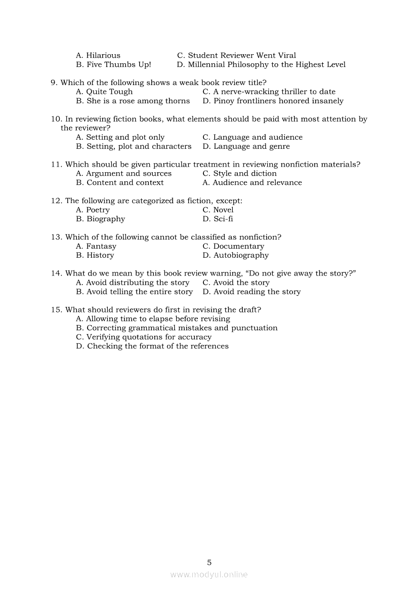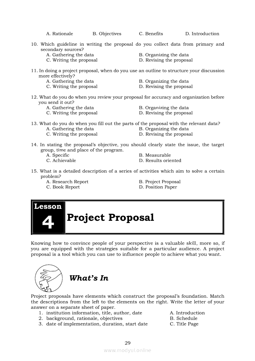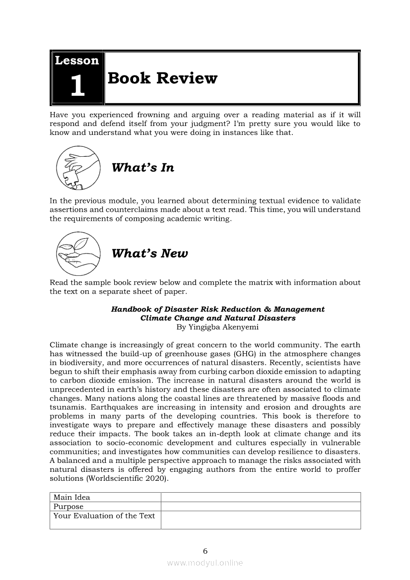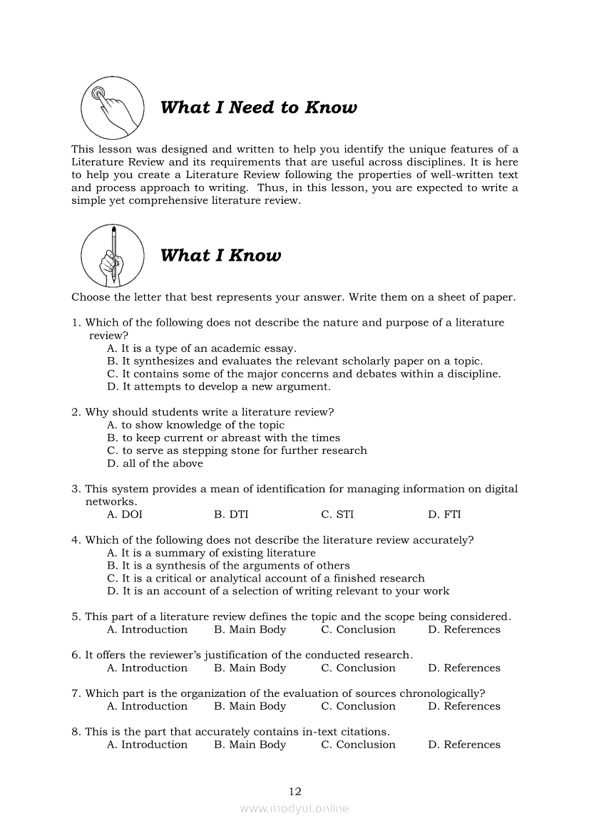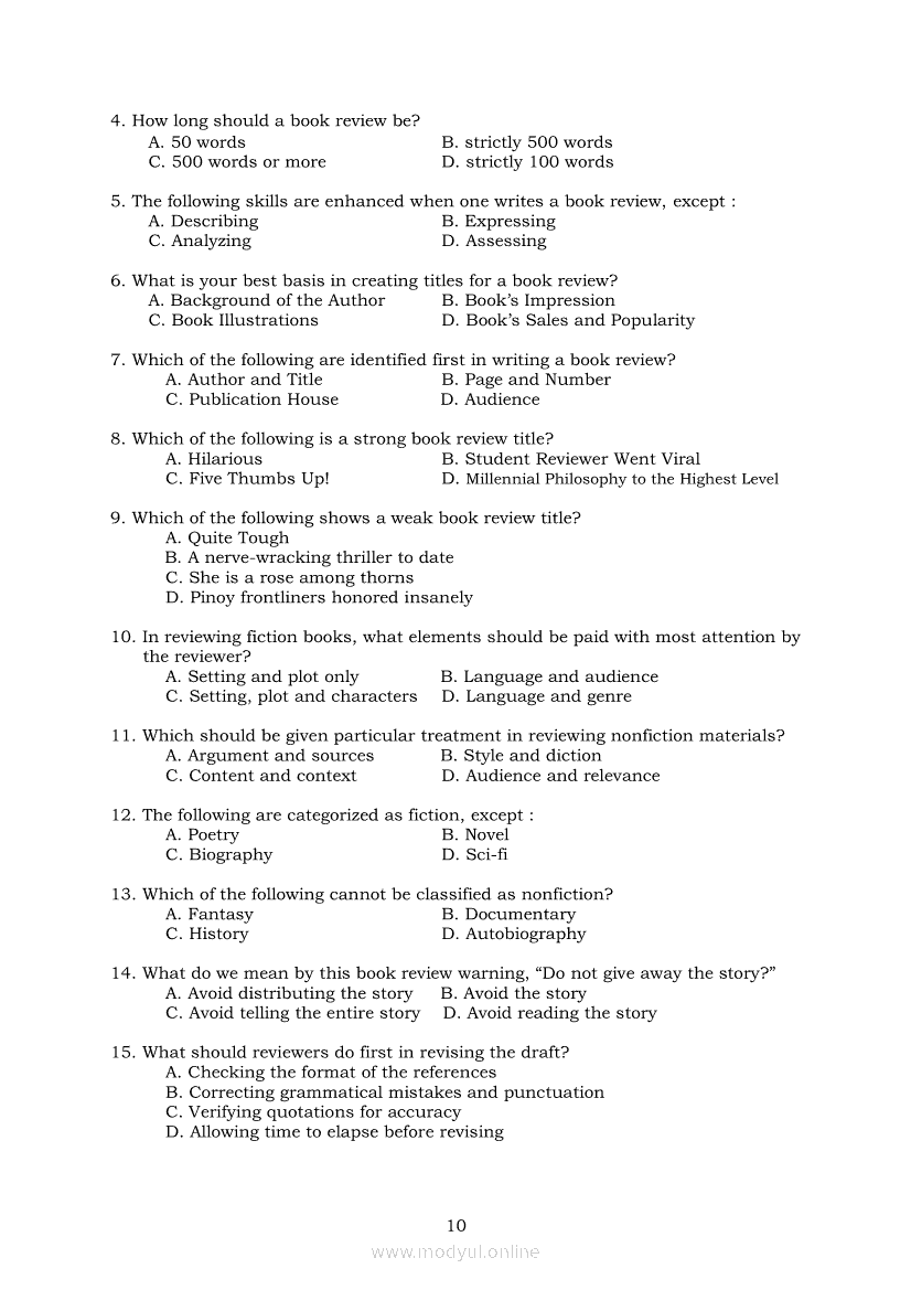 Reading and Writing Skills Quarter 4 – Module 8: Composing Academic WritingApr 22, 2021 SHSGrab your copy of Collegio Advance - ULTIMATE Updated College Entrance Exam Reviewer and pass with flying colors 🎉. Reading and Writing SkillsRelatedReading and Writing Skills Quarter 4 – Module 4: Hypertext and IntertextReading and Writing Skills Quarter 4 – Module 5: Critical Reading as ReasoningReading and Writing Skills Quarter 4 – Module 7: Determining Textual EvidenceReading and Writing Skills Quarter 4 – Module 6: Formulating Evaluative StatementsReading and Writing Skills Quarter 4 – Module 9: Composing Professional Correspondence