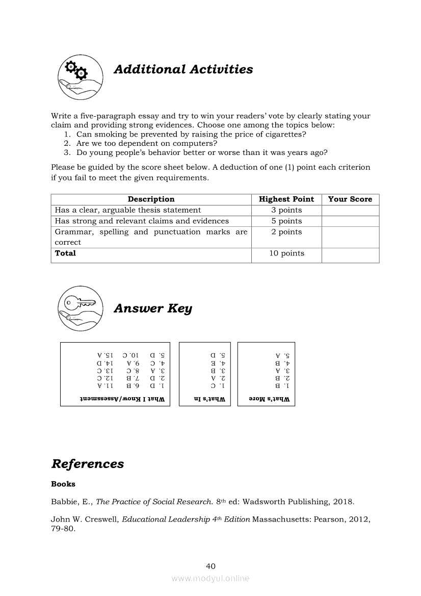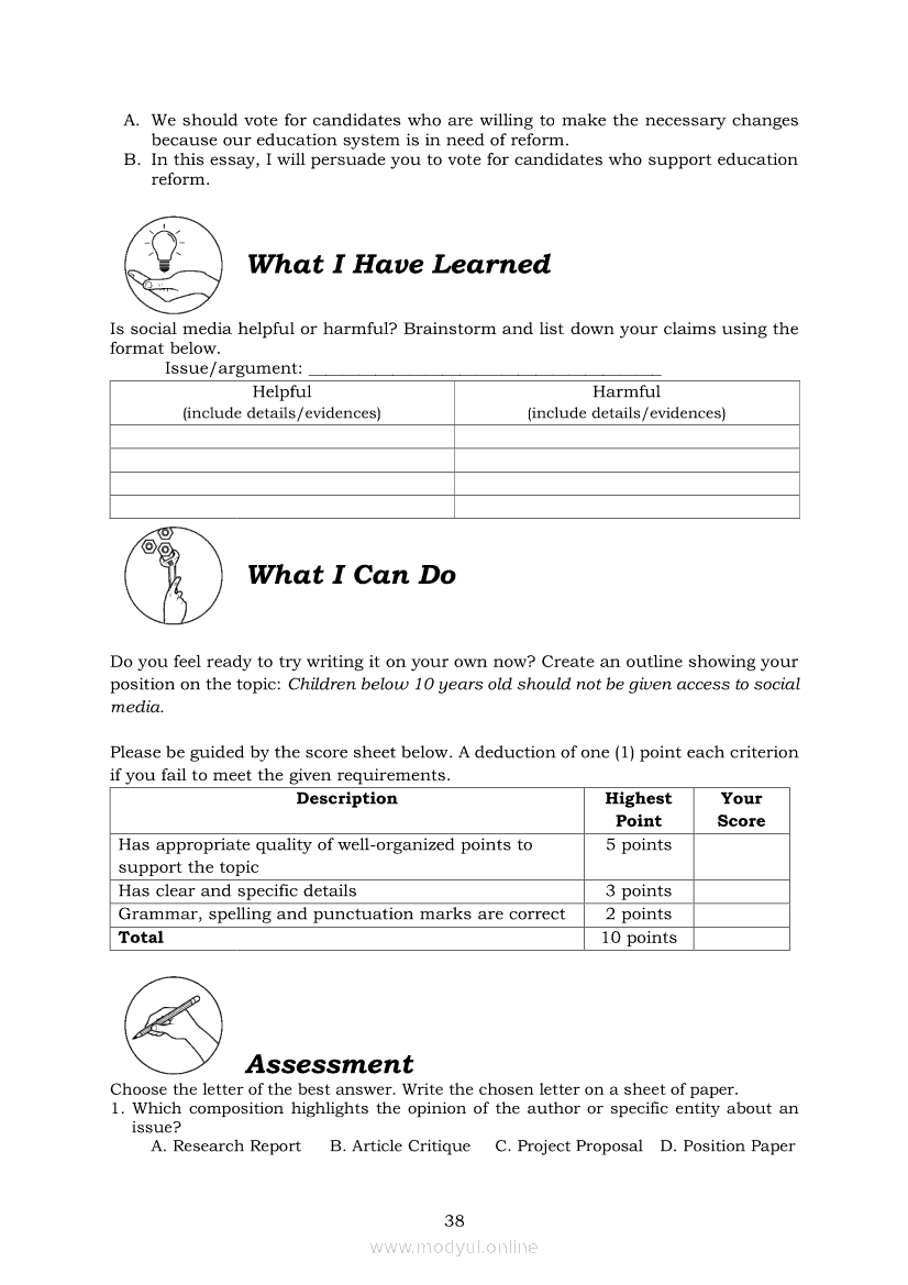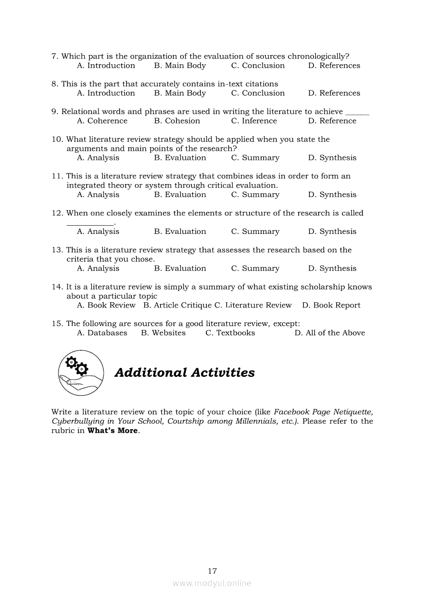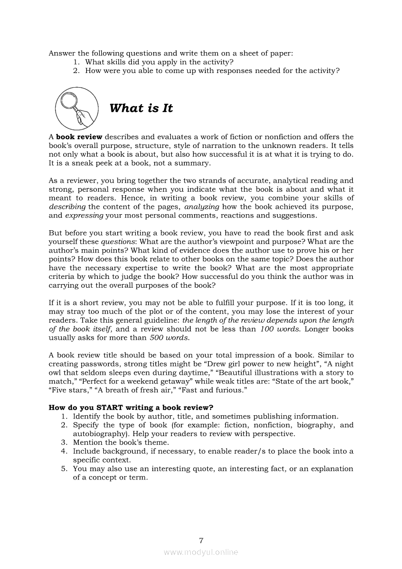 Reading and Writing Skills Quarter 4 – Module 8: Composing Academic WritingApr 22, 2021 SHSGrab your copy of Collegio Advance - ULTIMATE Updated College Entrance Exam Reviewer and pass with flying colors 🎉. Reading and Writing SkillsRelatedReading and Writing Skills Quarter 4 – Module 4: Hypertext and IntertextReading and Writing Skills Quarter 4 – Module 5: Critical Reading as ReasoningReading and Writing Skills Quarter 4 – Module 7: Determining Textual EvidenceReading and Writing Skills Quarter 4 – Module 6: Formulating Evaluative StatementsReading and Writing Skills Quarter 4 – Module 9: Composing Professional Correspondence
