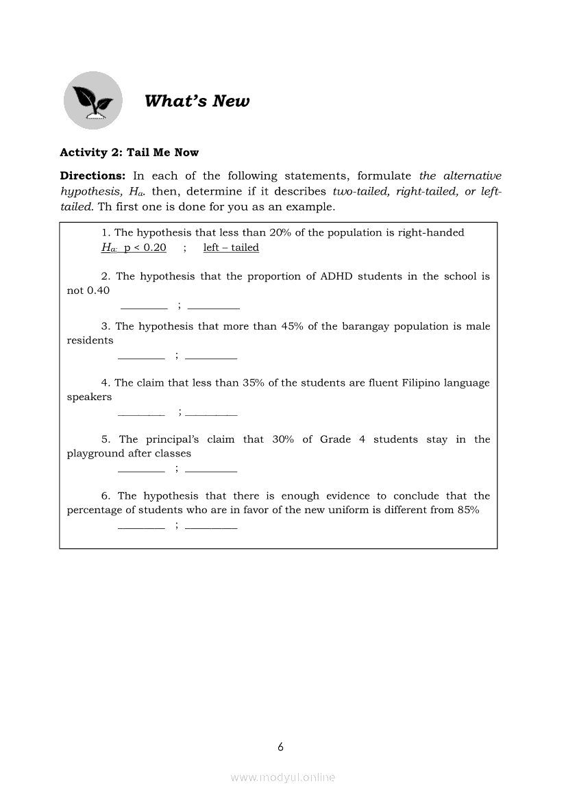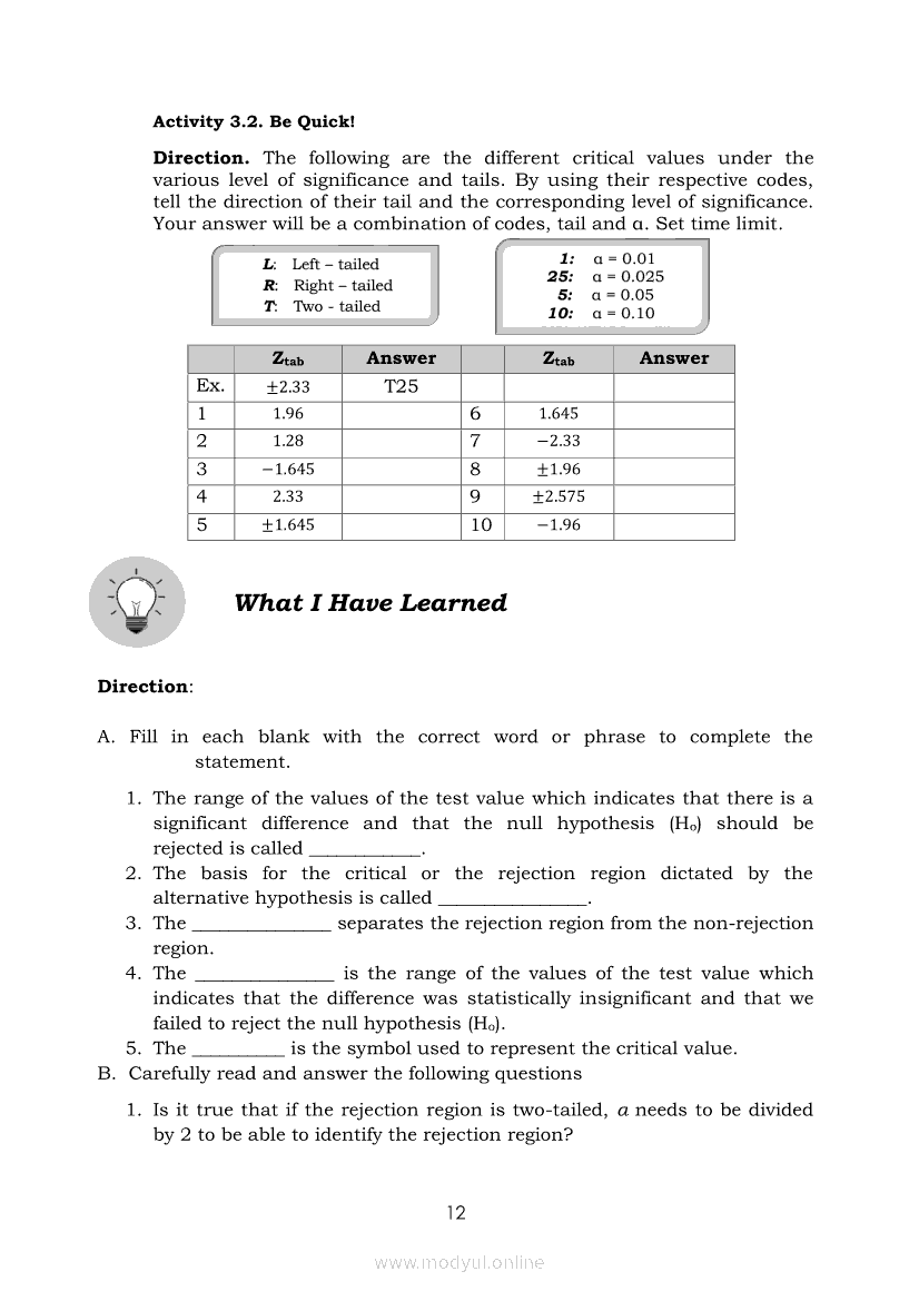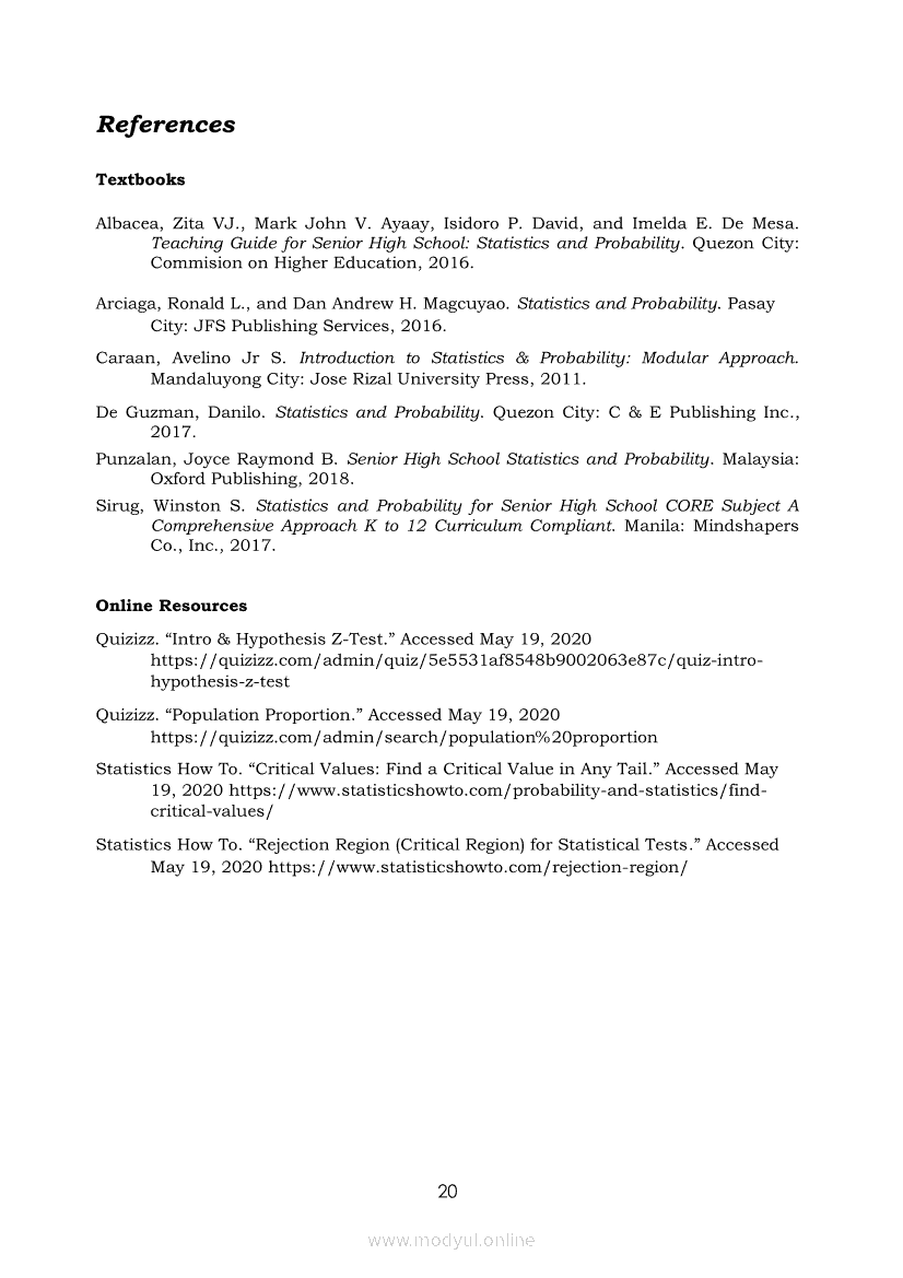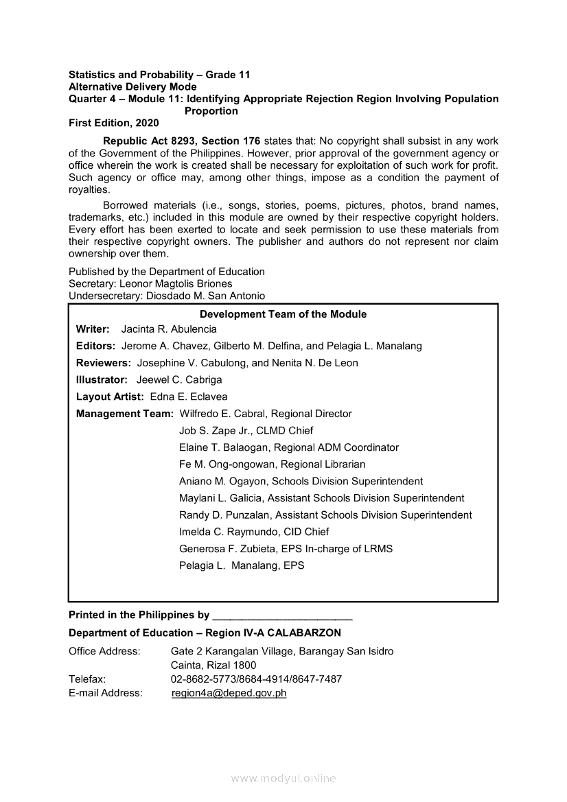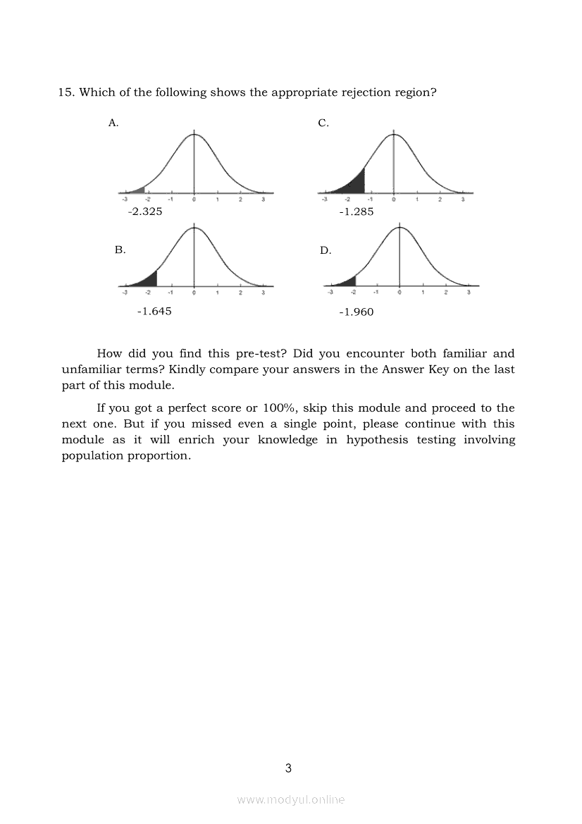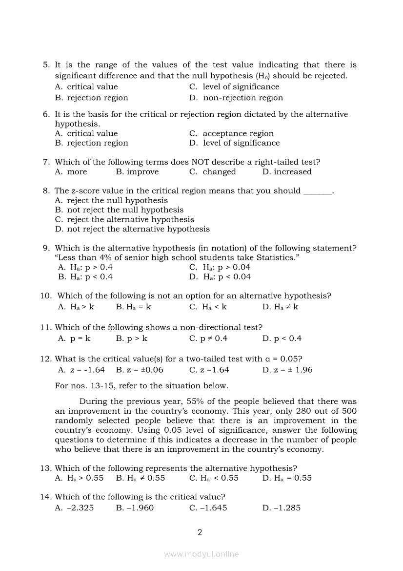 Statistics and Probability Module 10: Identifying Appropriate Test Statistic Involving Population ProportionApr 22, 2021 SHSGrab your copy of Collegio Advance - ULTIMATE Updated College Entrance Exam Reviewer and pass with flying colors 🎉. Statistics and ProbabilityRelatedStatistics and Probability Module 12: Computing Test Statistic Value Involving Population ProportionStatistics and Probability Module 8: Solving Problems Involving Test of Hypothesis on Population MeanStatistics and Probability Module 11: Identifying Appropriate Rejection Region Involving Population ProportionStatistics and Probability Module 14: Solving Problems Involving Test of Hypothesis on Population ProportionStatistics and Probability Module 2: Identifying Parameters for Testing in Given Real-Life Problems