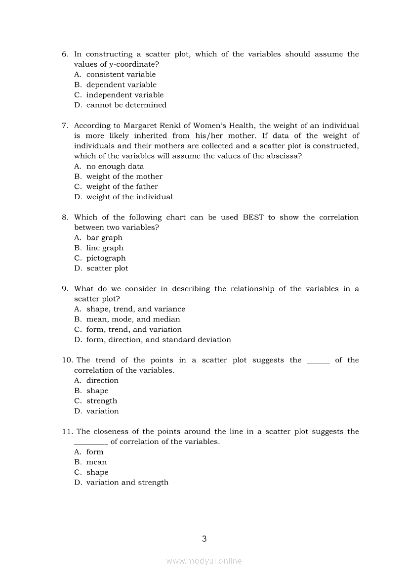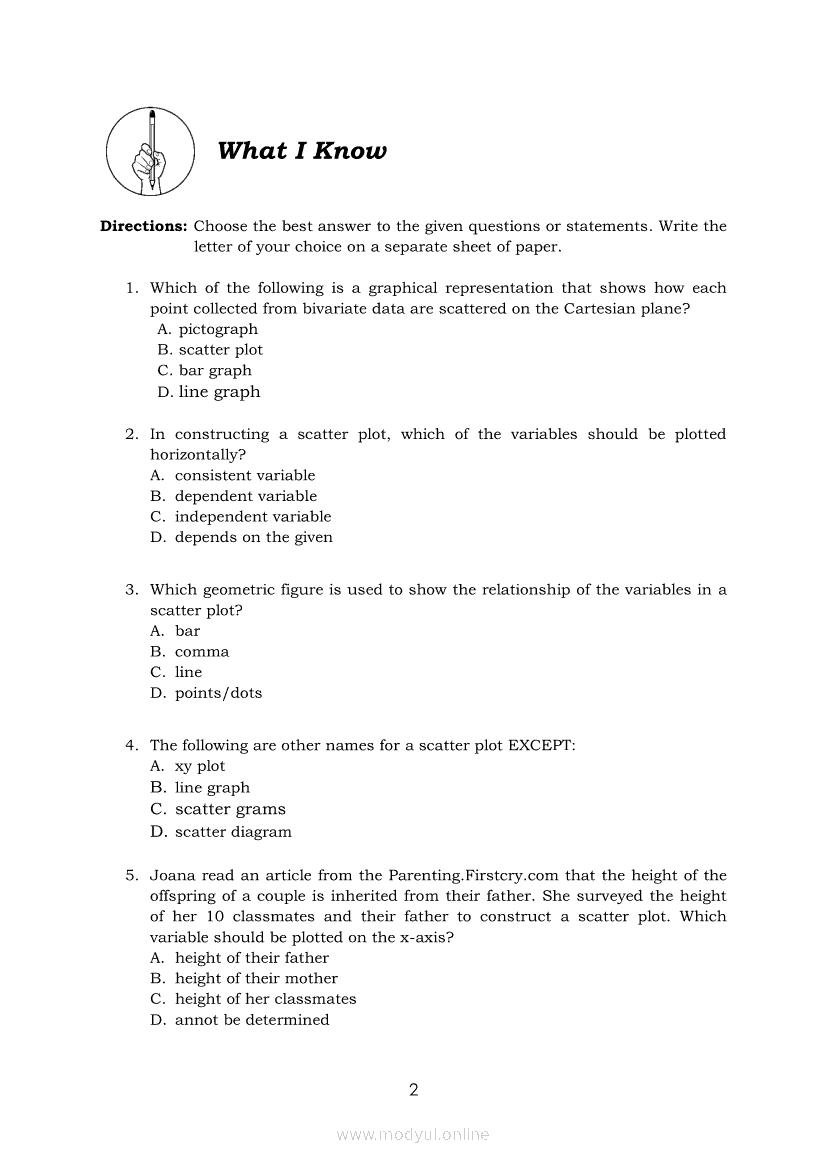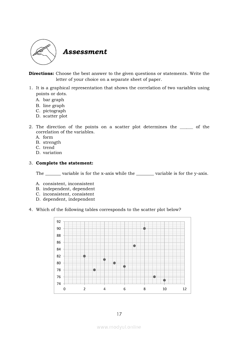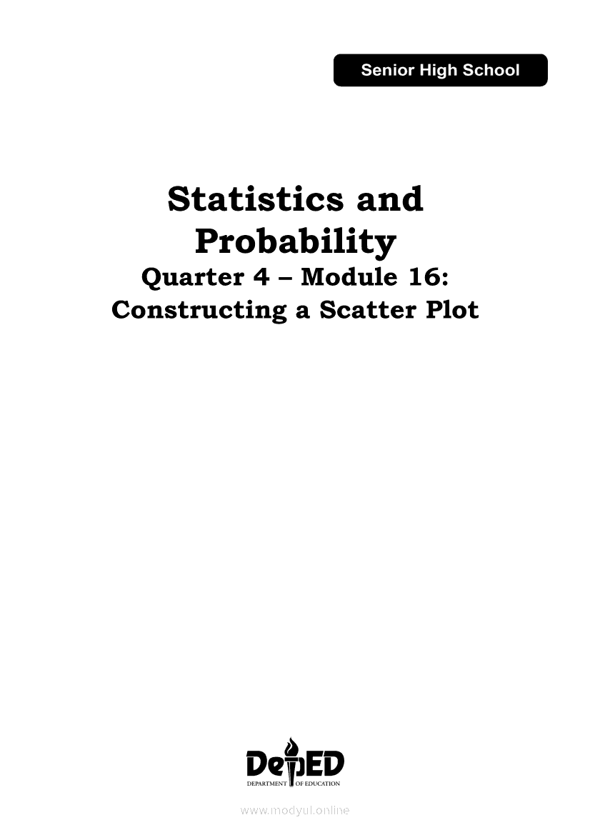 Statistics and Probability Module 16: Constructing a Scatter PlotApr 22, 2021 SHSGrab your copy of Collegio Advance - ULTIMATE Updated College Entrance Exam Reviewer and pass with flying colors 🎉. Statistics and ProbabilityRelatedStatistics and Probability Module 10: Identifying Appropriate Test Statistic Involving Population ProportionStatistics and Probability Module 6: Computing Test Statistic on Population MeanStatistics and Probability Module 12: Computing Test Statistic Value Involving Population ProportionStatistics and Probability Module 20: Identifying Dependent and Independent VariablesStatistics and Probability Module 13: Drawing Conclusions About Population Proportion Based on Test Statistic Value and Rejection Region