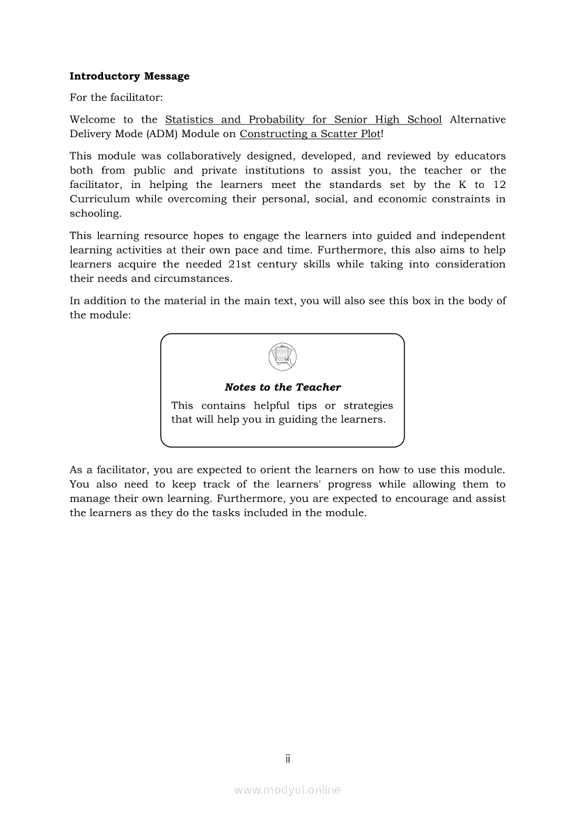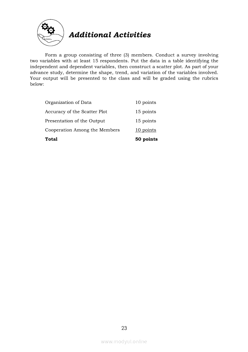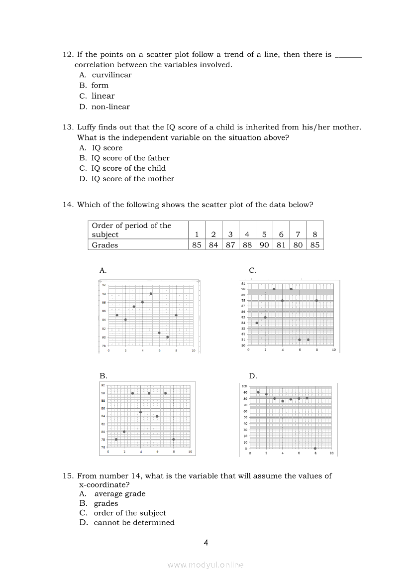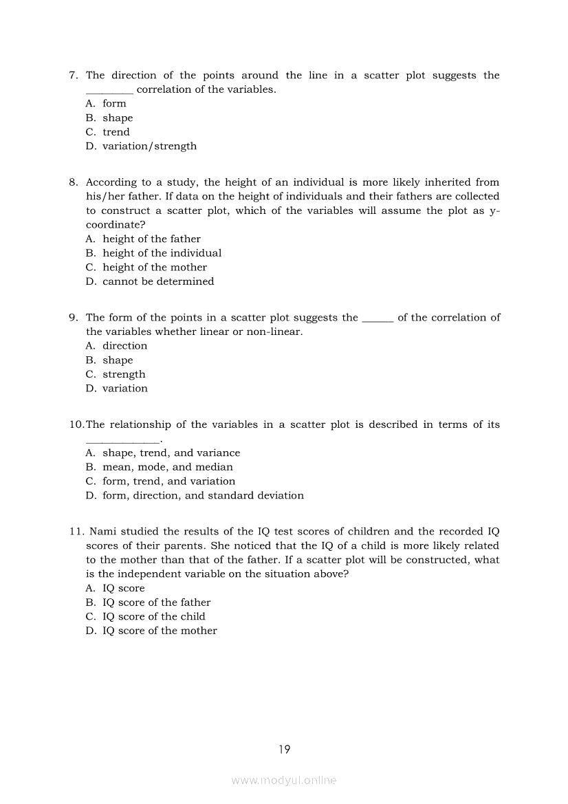 Statistics and Probability Module 16: Constructing a Scatter PlotApr 22, 2021 SHSGrab your copy of Collegio Advance - ULTIMATE Updated College Entrance Exam Reviewer and pass with flying colors 🎉. Statistics and ProbabilityRelatedStatistics and Probability Module 10: Identifying Appropriate Test Statistic Involving Population ProportionStatistics and Probability Module 6: Computing Test Statistic on Population MeanStatistics and Probability Module 12: Computing Test Statistic Value Involving Population ProportionStatistics and Probability Module 20: Identifying Dependent and Independent VariablesStatistics and Probability Module 13: Drawing Conclusions About Population Proportion Based on Test Statistic Value and Rejection Region