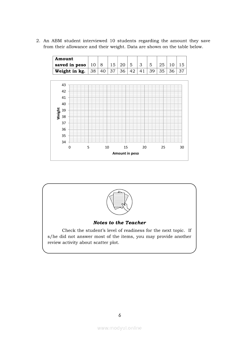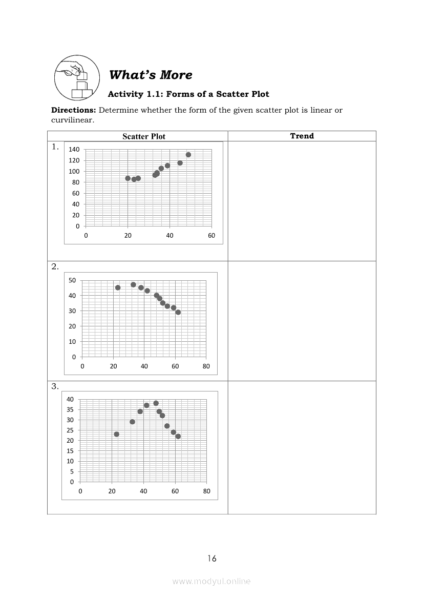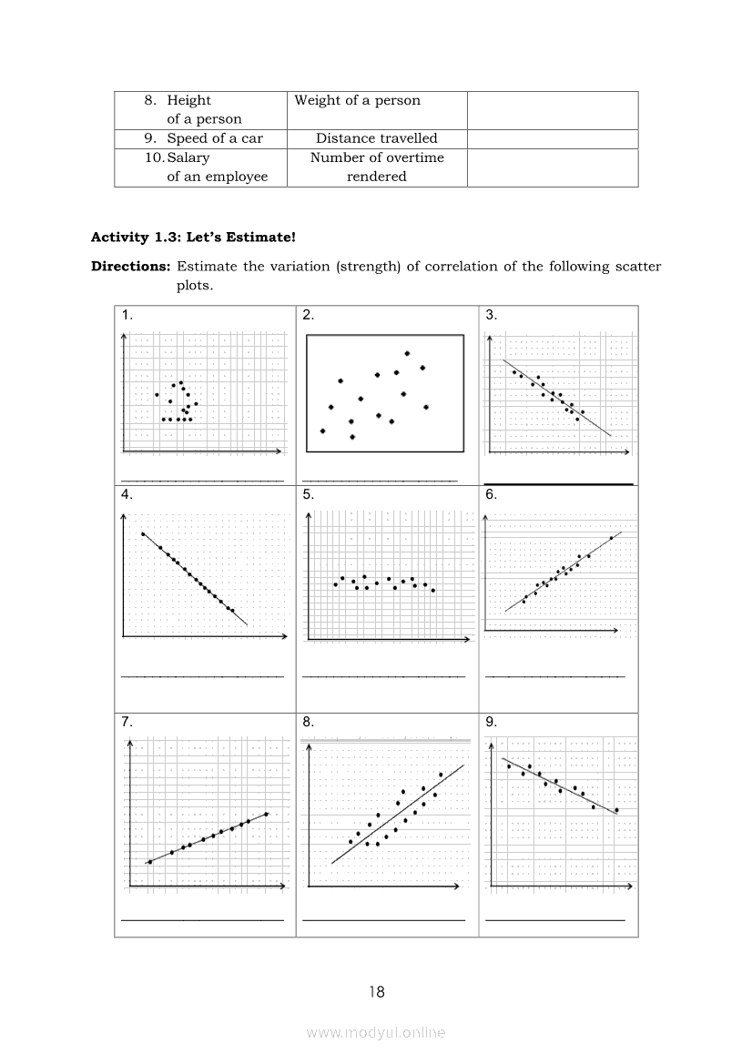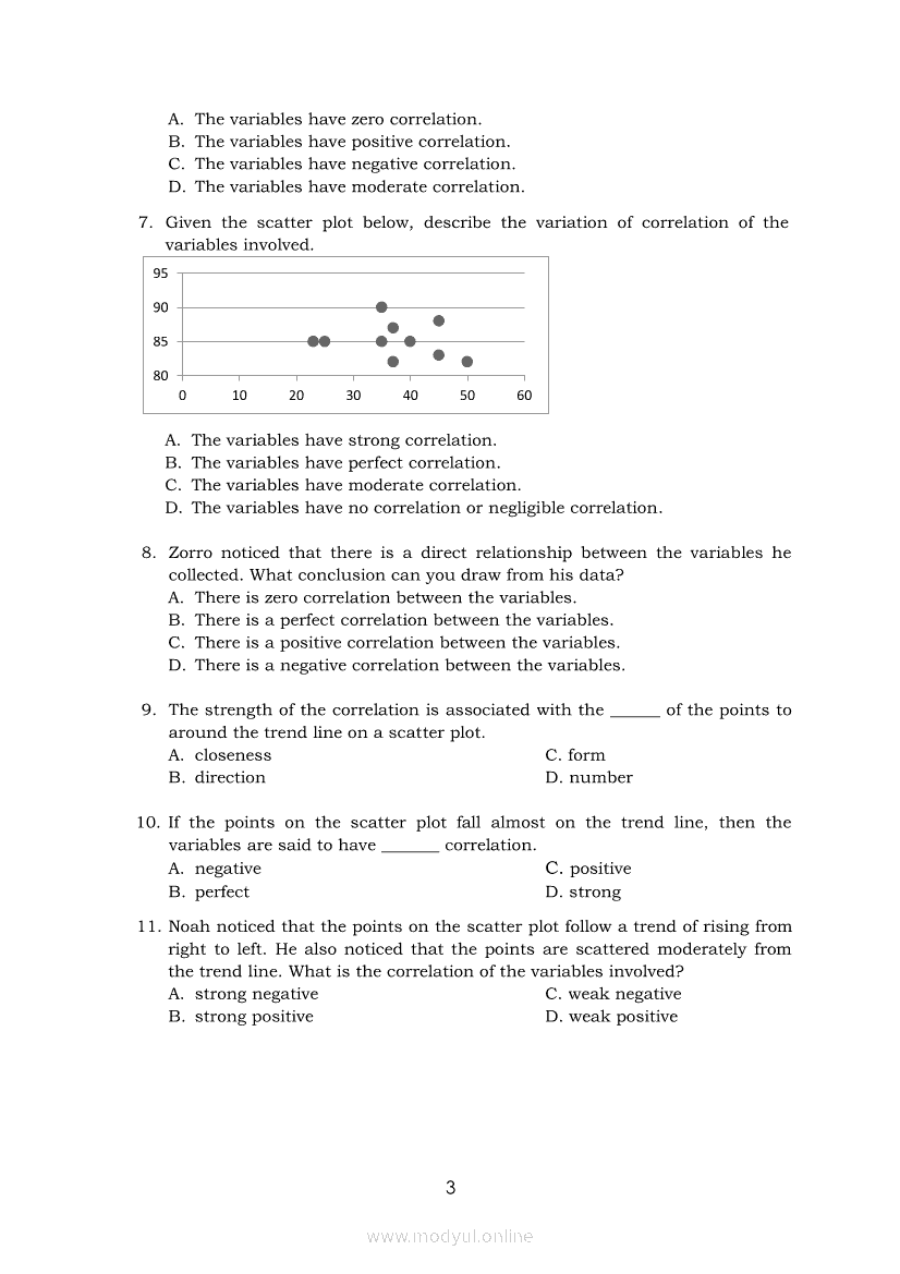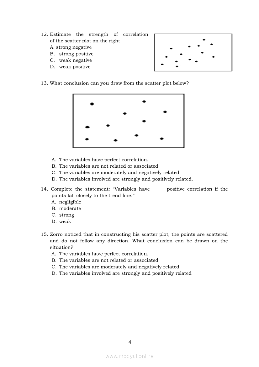 Statistics and Probability Module 17: Describing the Shape (Form), Trend (Direction), and Variation ( Strength) Based on a Scatter PlotApr 22, 2021 SHSGrab your copy of Collegio Advance - ULTIMATE Updated College Entrance Exam Reviewer and pass with flying colors 🎉. Statistics and ProbabilityRelatedStatistics and Probability Module 4: Identifying Appropriate Test Statistics Involving Population MeanStatistics and Probability Module 9: Formulating Appropriate Null and Alternative Hypotheses on a Population ProportionStatistics and Probability Module 7: Drawing Conclusion About Population Mean Based on Test Statistic Value and Critical RegionStatistics and Probability Module 1: Testing HypothesisStatistics and Probability Module 16: Constructing a Scatter Plot