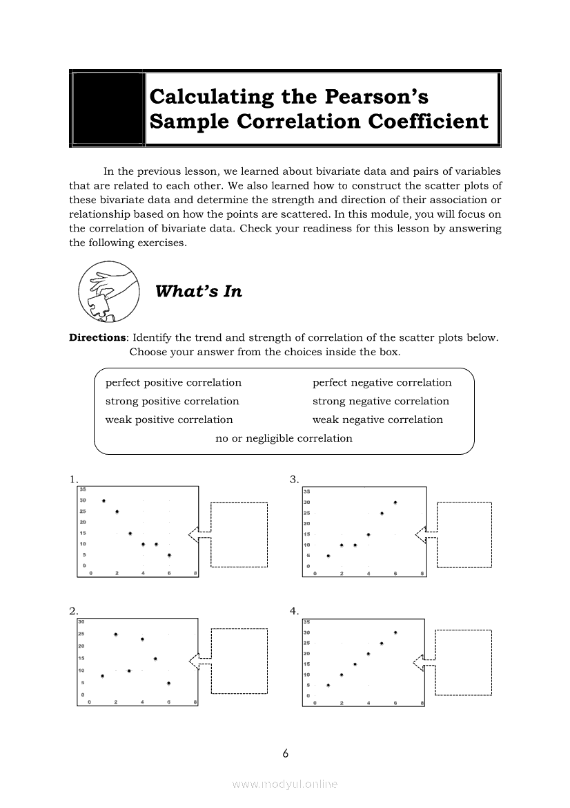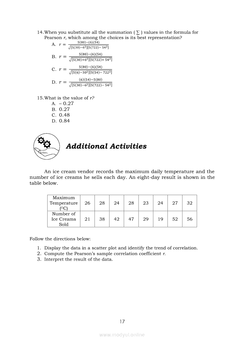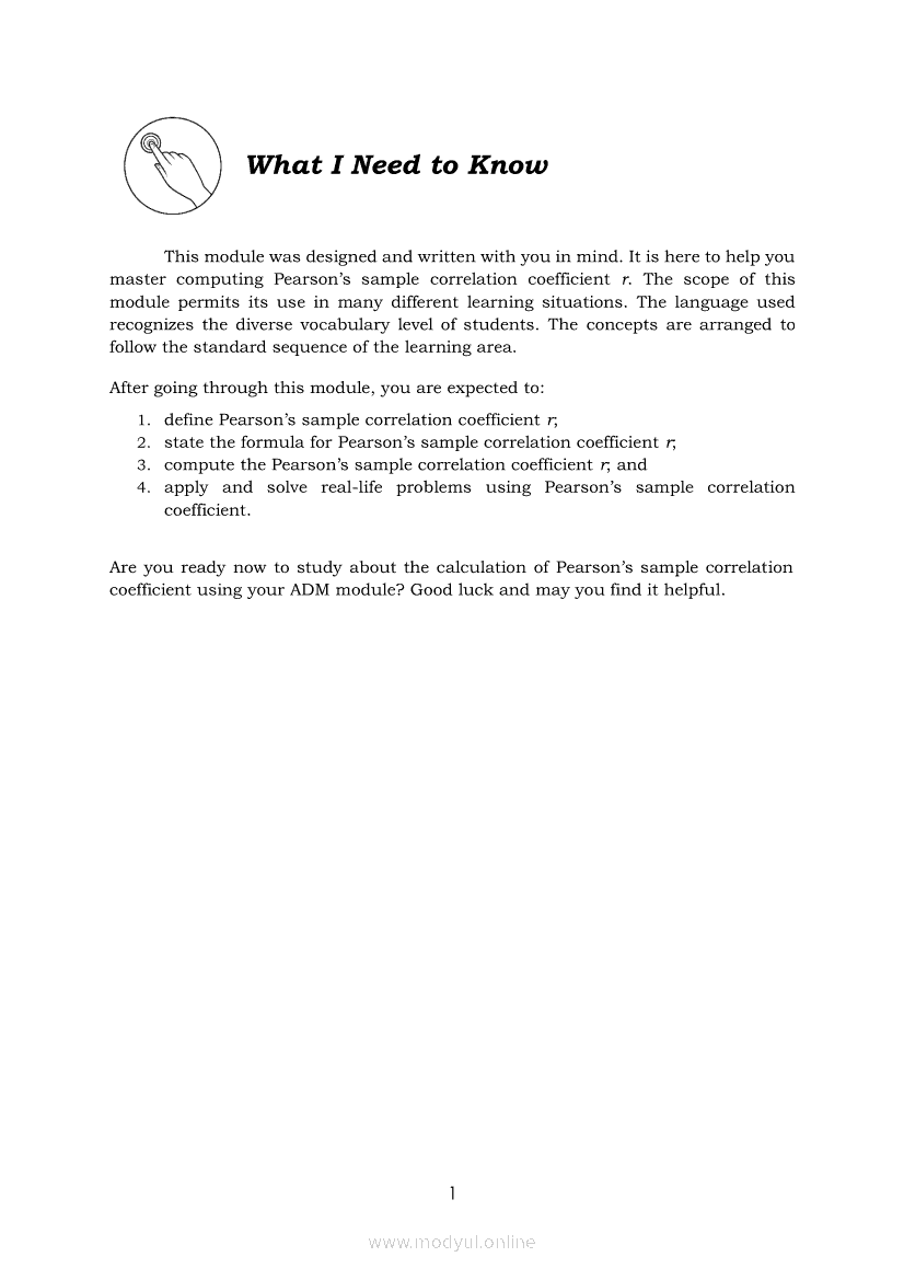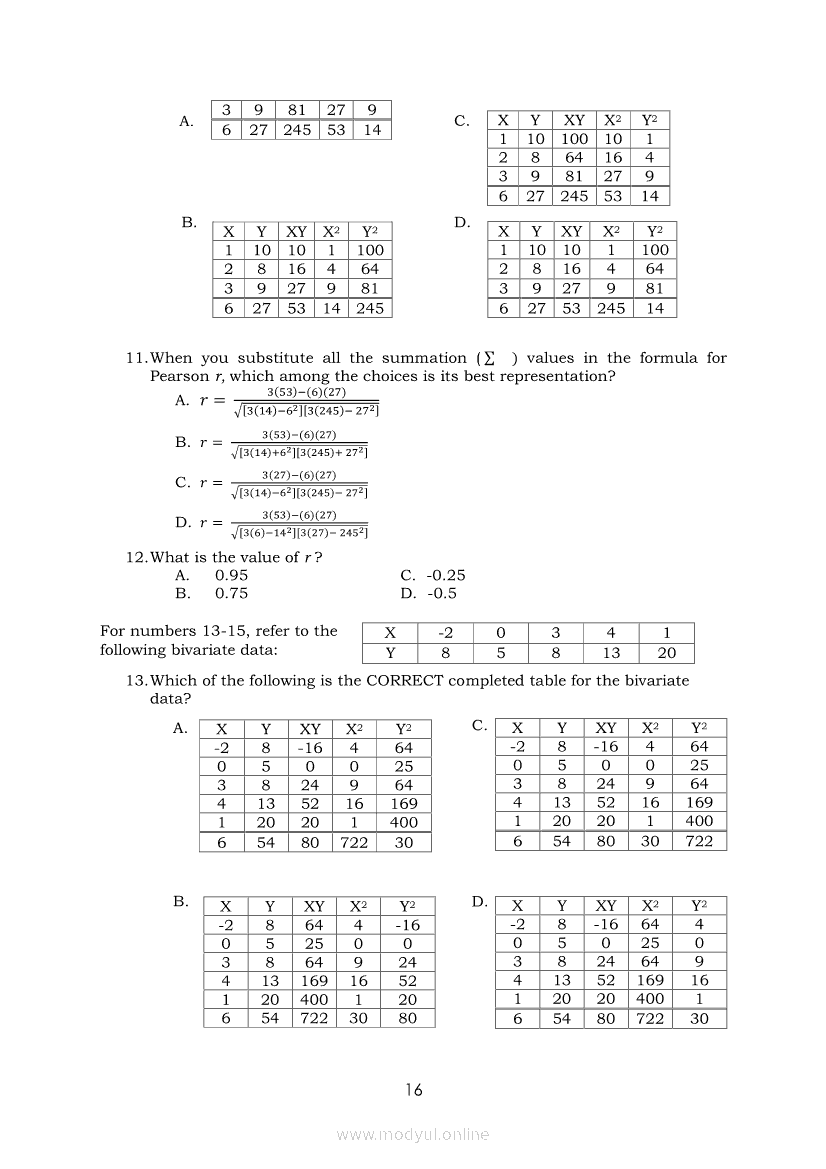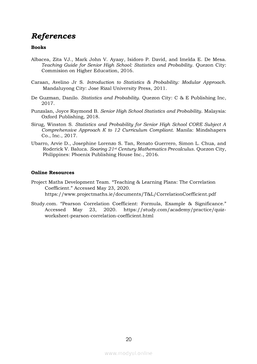 Statistics and Probability Module 18: Calculating the Pearson’s Sample Correlation CoefficientApr 22, 2021 SHSGrab your copy of Collegio Advance - ULTIMATE Updated College Entrance Exam Reviewer and pass with flying colors 🎉. Statistics and ProbabilityRelatedStatistics and Probability Module 1: Testing HypothesisStatistics and Probability Module 9: Formulating Appropriate Null and Alternative Hypotheses on a Population ProportionStatistics and Probability Module 13: Drawing Conclusions About Population Proportion Based on Test Statistic Value and Rejection RegionStatistics and Probability Module 15: Illustrating the Nature of Bivariate DataStatistics and Probability Module 5: Identifying the Appropriate Rejection Region for a Given Level of Significance