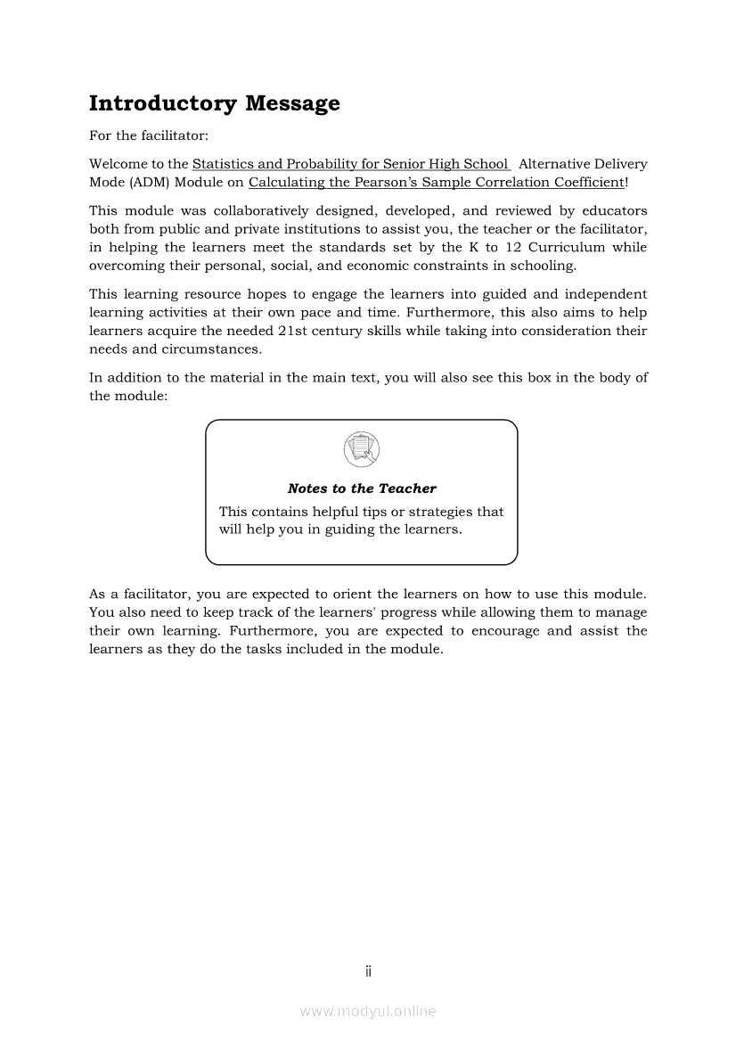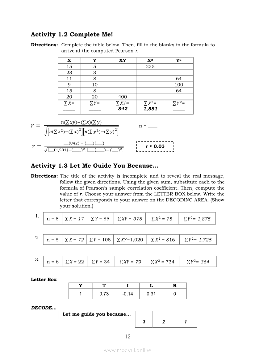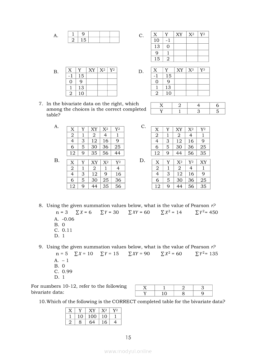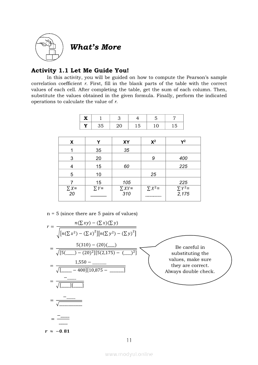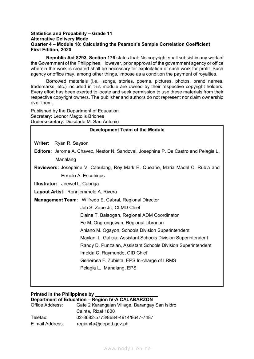 Statistics and Probability Module 18: Calculating the Pearson’s Sample Correlation CoefficientApr 22, 2021 SHSGrab your copy of Collegio Advance - ULTIMATE Updated College Entrance Exam Reviewer and pass with flying colors 🎉. Statistics and ProbabilityRelatedStatistics and Probability Module 1: Testing HypothesisStatistics and Probability Module 9: Formulating Appropriate Null and Alternative Hypotheses on a Population ProportionStatistics and Probability Module 13: Drawing Conclusions About Population Proportion Based on Test Statistic Value and Rejection RegionStatistics and Probability Module 15: Illustrating the Nature of Bivariate DataStatistics and Probability Module 5: Identifying the Appropriate Rejection Region for a Given Level of Significance