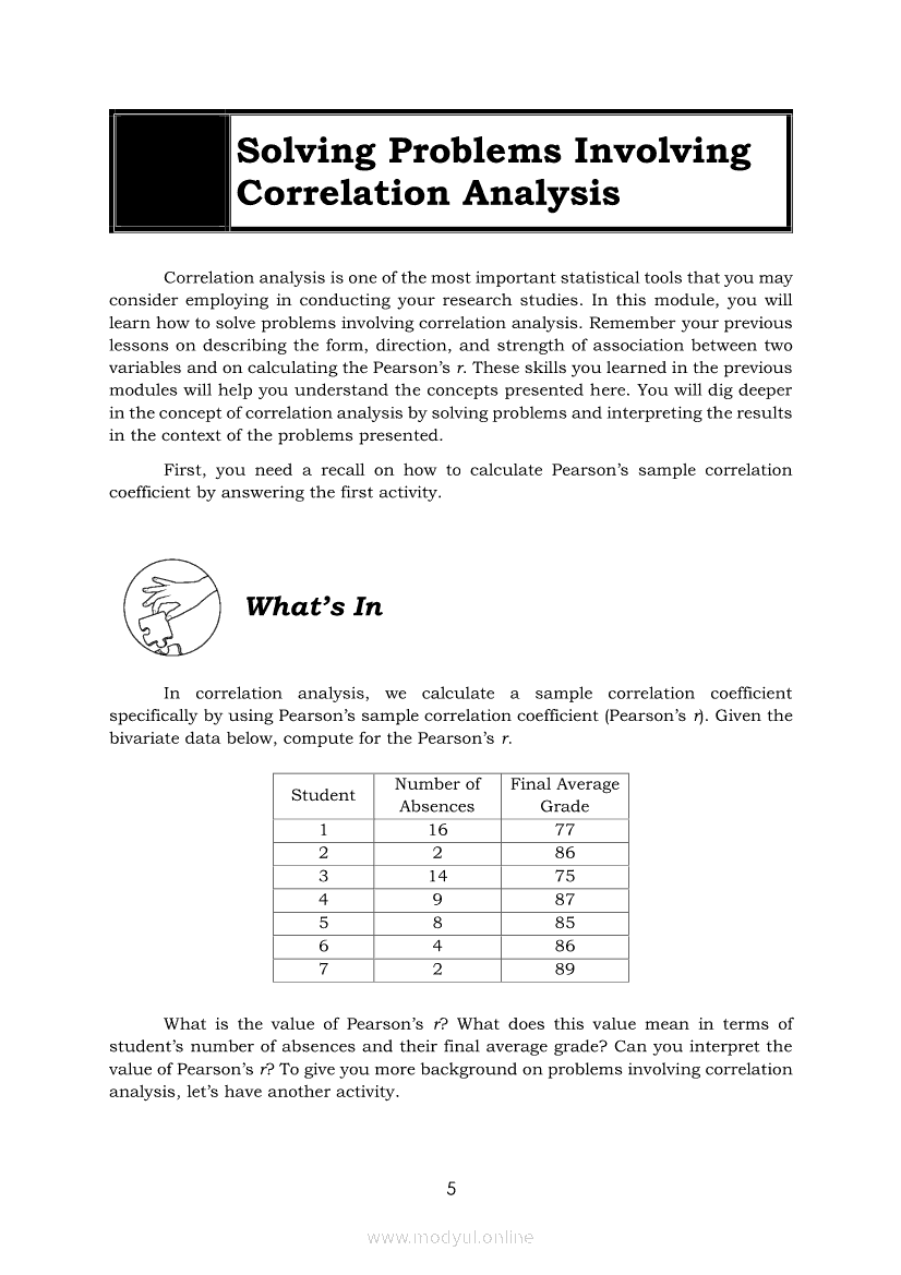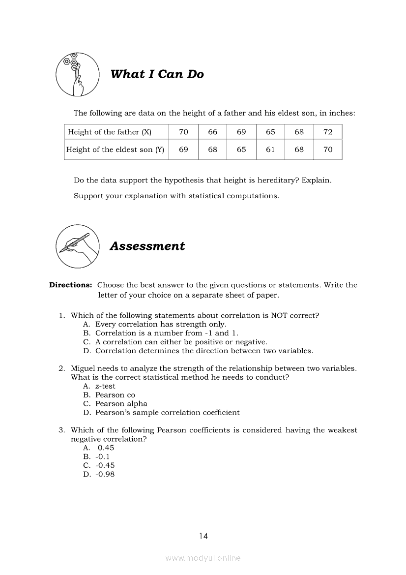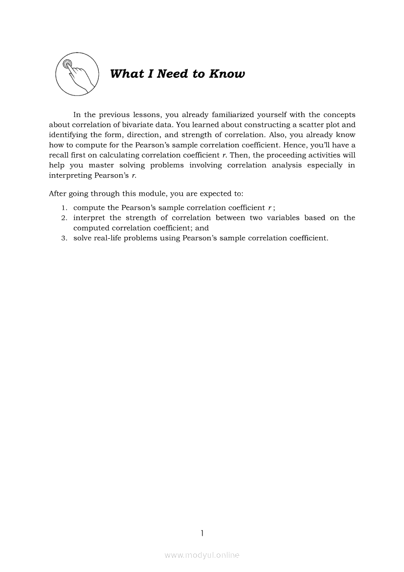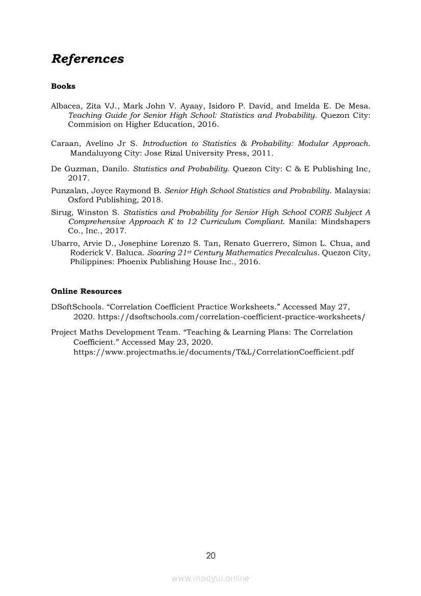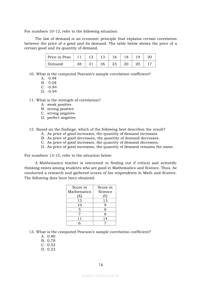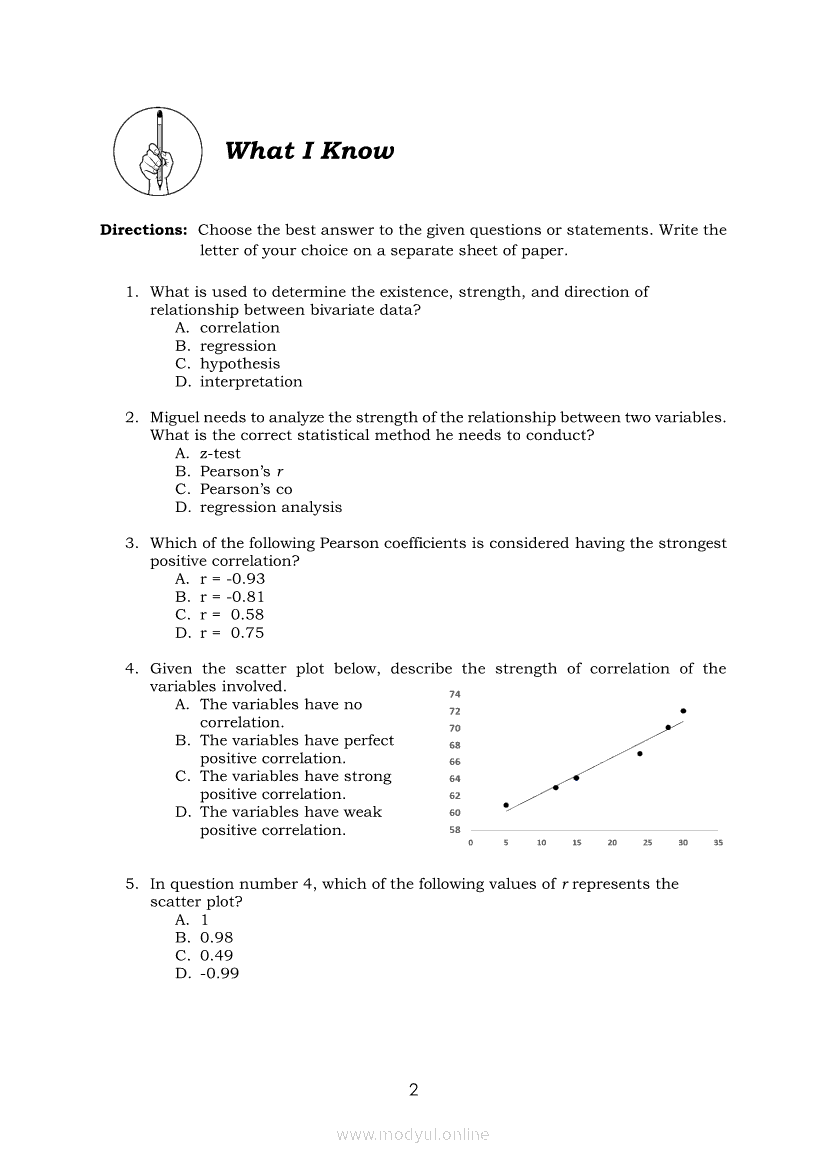 Statistics and Probability Module 19: Solving Problems Involving Correlation AnalysisApr 22, 2021 SHSGrab your copy of Collegio Advance - ULTIMATE Updated College Entrance Exam Reviewer and pass with flying colors 🎉. Statistics and ProbabilityRelatedStatistics and Probability Module 3: Formulating Appropriate Null and Alternative Hypotheses on a Population MeanStatistics and Probability Module 1: Testing HypothesisStatistics and Probability Module 6: Computing Test Statistic on Population MeanStatistics and Probability Module 20: Identifying Dependent and Independent VariablesStatistics and Probability Module 5: Identifying the Appropriate Rejection Region for a Given Level of Significance