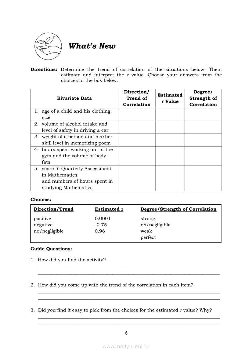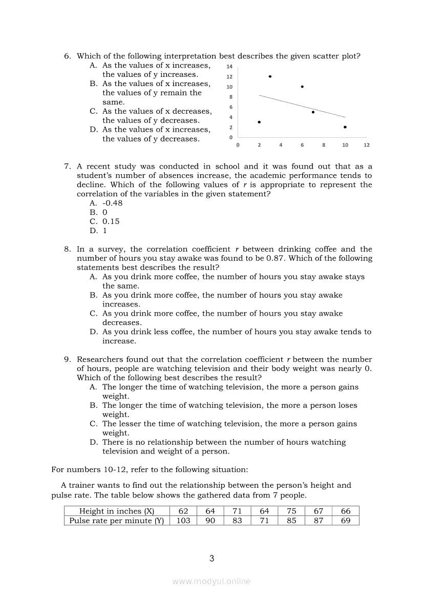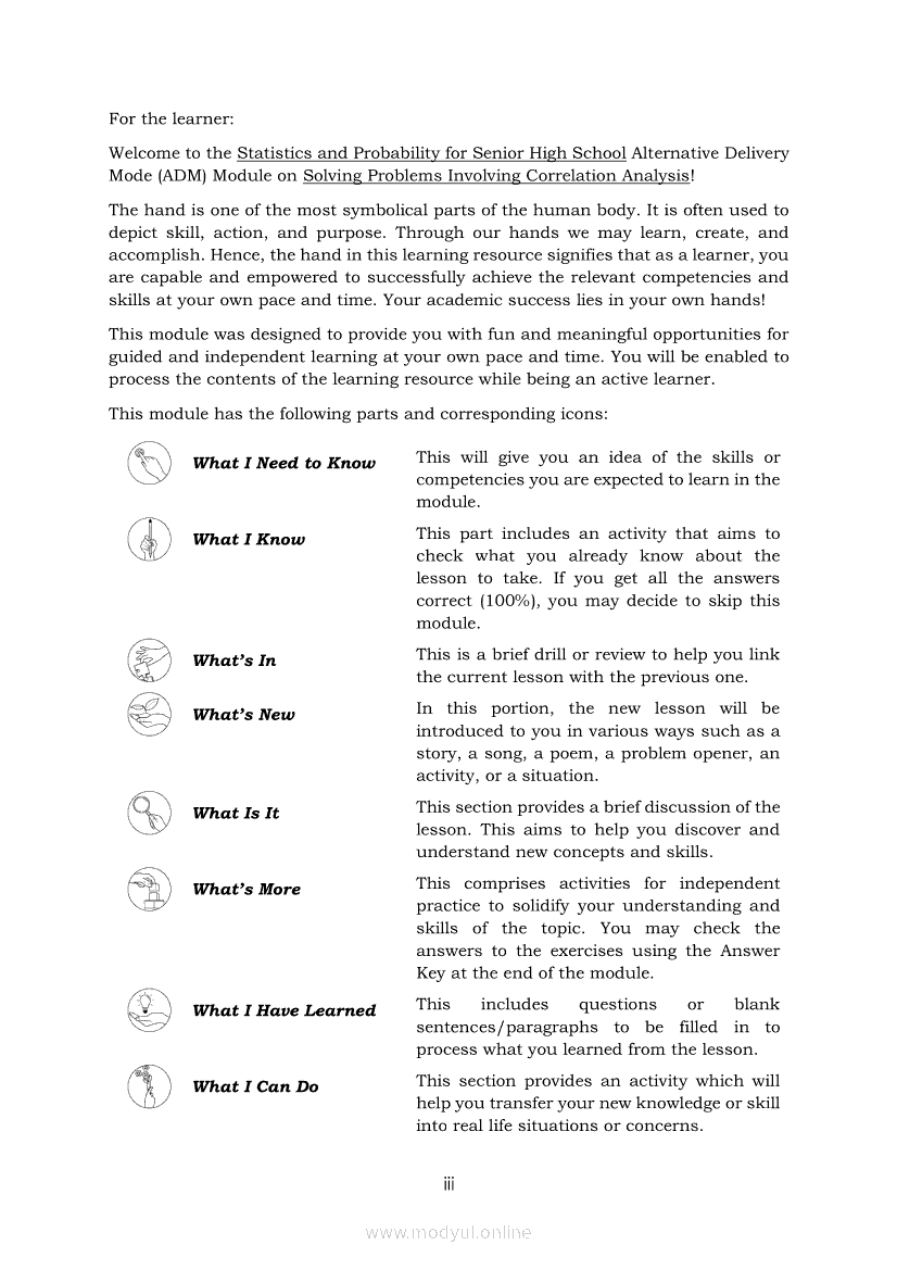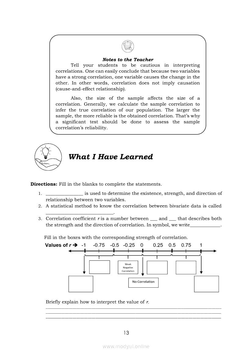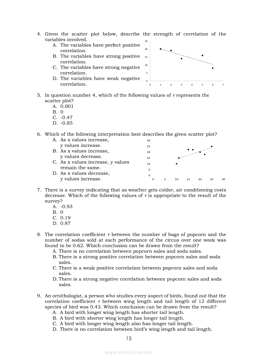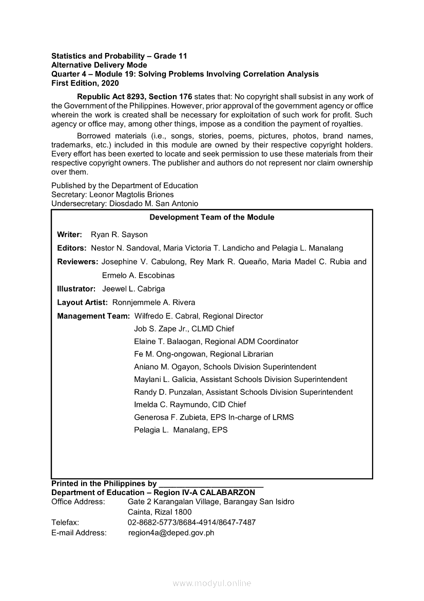 Statistics and Probability Module 19: Solving Problems Involving Correlation AnalysisApr 22, 2021 SHSGrab your copy of Collegio Advance - ULTIMATE Updated College Entrance Exam Reviewer and pass with flying colors 🎉. Statistics and ProbabilityRelatedStatistics and Probability Module 3: Formulating Appropriate Null and Alternative Hypotheses on a Population MeanStatistics and Probability Module 1: Testing HypothesisStatistics and Probability Module 6: Computing Test Statistic on Population MeanStatistics and Probability Module 20: Identifying Dependent and Independent VariablesStatistics and Probability Module 5: Identifying the Appropriate Rejection Region for a Given Level of Significance
