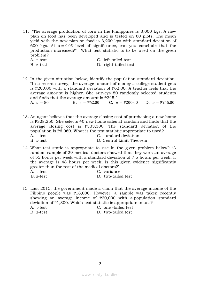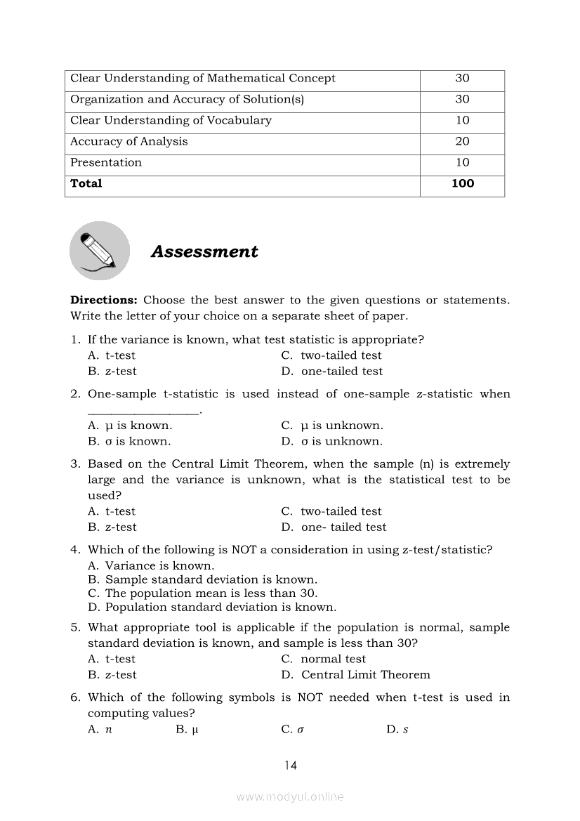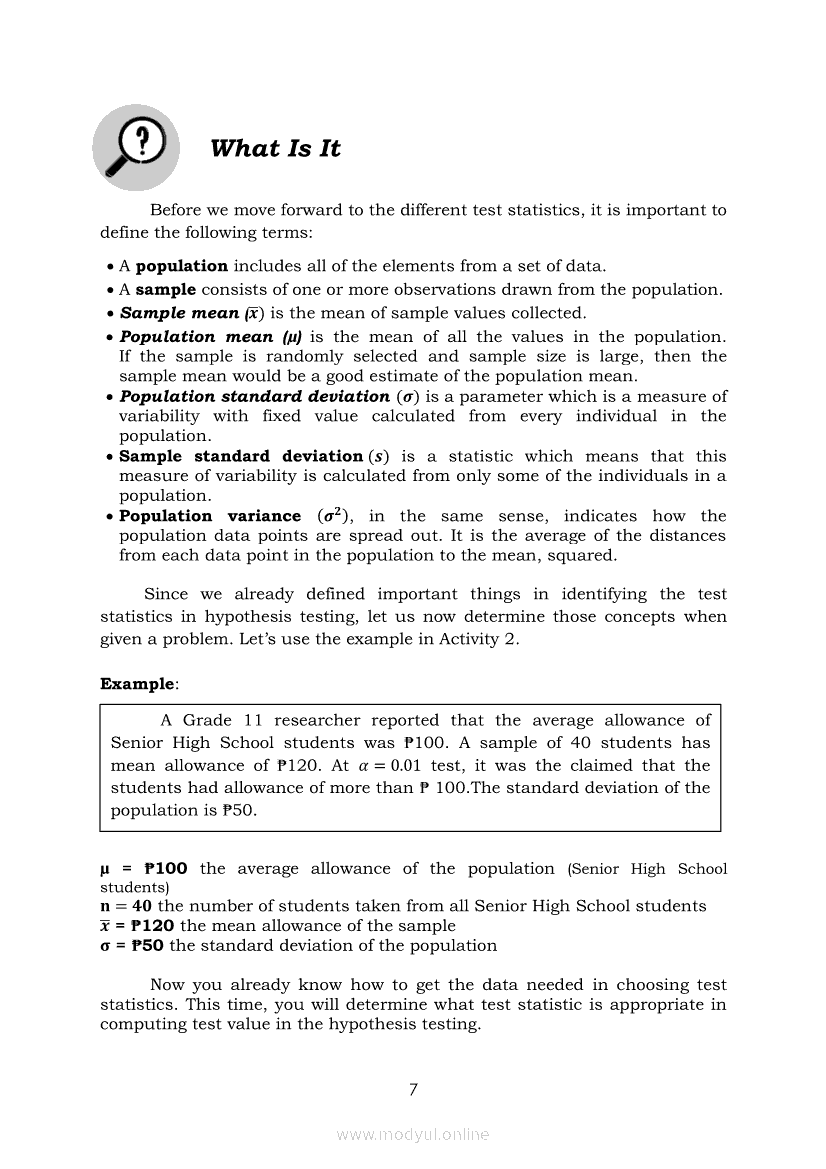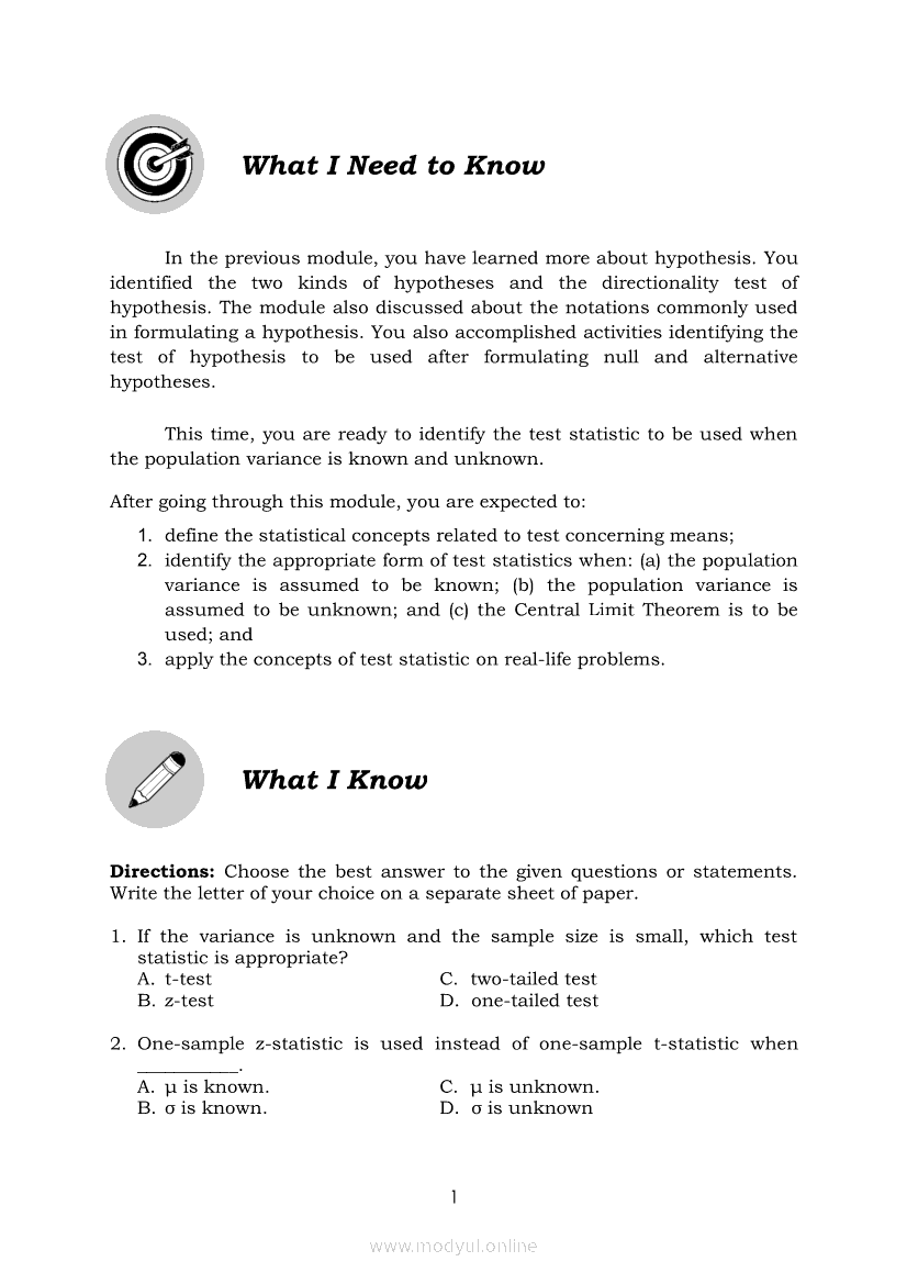 Statistics and Probability Module 4: Identifying Appropriate Test Statistics Involving Population MeanApr 22, 2021 SHSGrab your copy of Collegio Advance - ULTIMATE Updated College Entrance Exam Reviewer and pass with flying colors 🎉. Statistics and ProbabilityRelatedStatistics and Probability Module 1: Testing HypothesisStatistics and Probability Module 18: Calculating the Pearson’s Sample Correlation CoefficientStatistics and Probability Module 11: Identifying Appropriate Rejection Region Involving Population ProportionStatistics and Probability Module 10: Identifying Appropriate Test Statistic Involving Population ProportionStatistics and Probability Module 13: Drawing Conclusions About Population Proportion Based on Test Statistic Value and Rejection Region