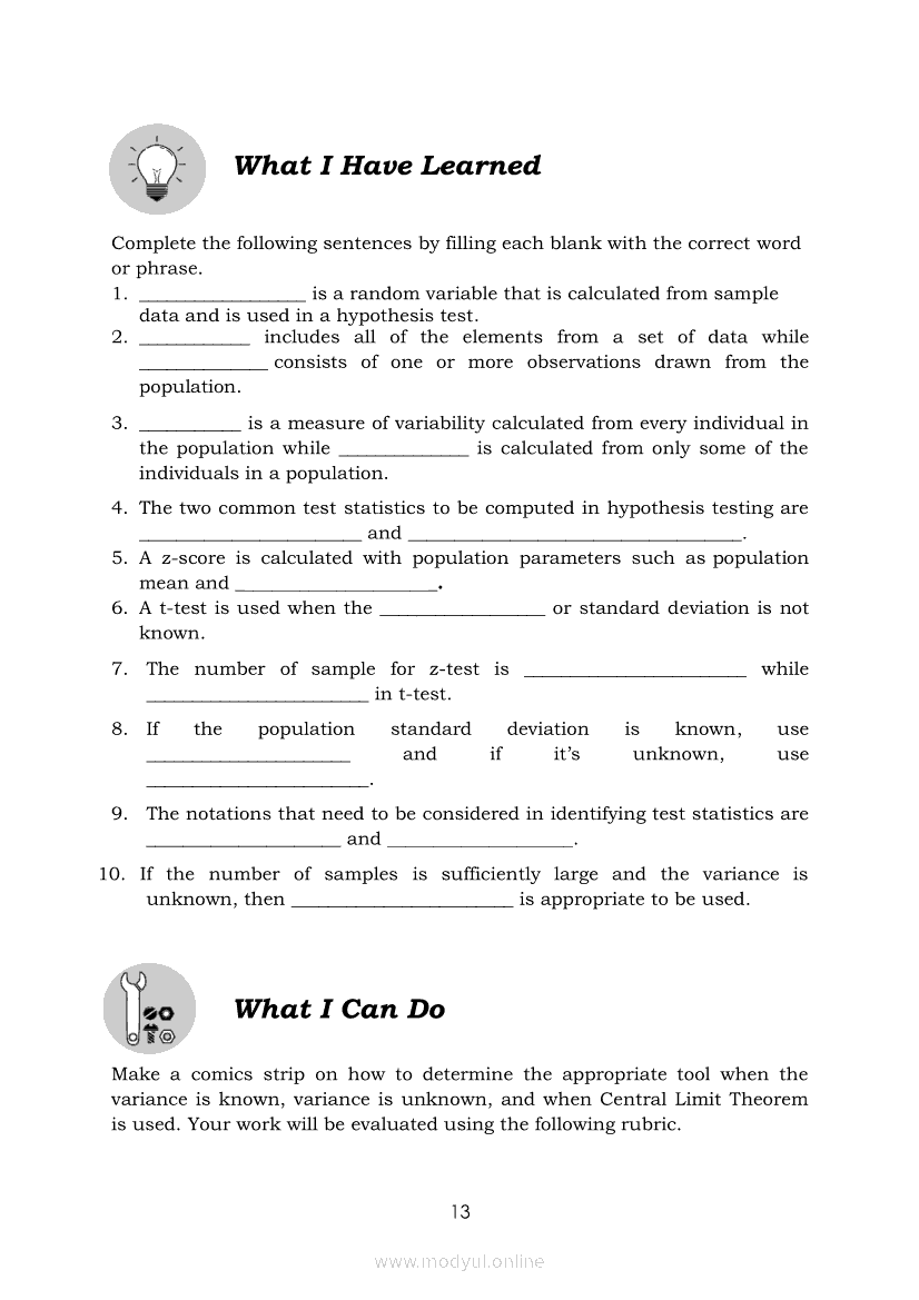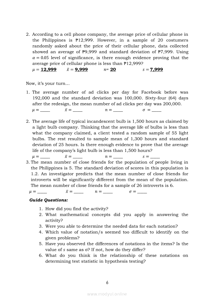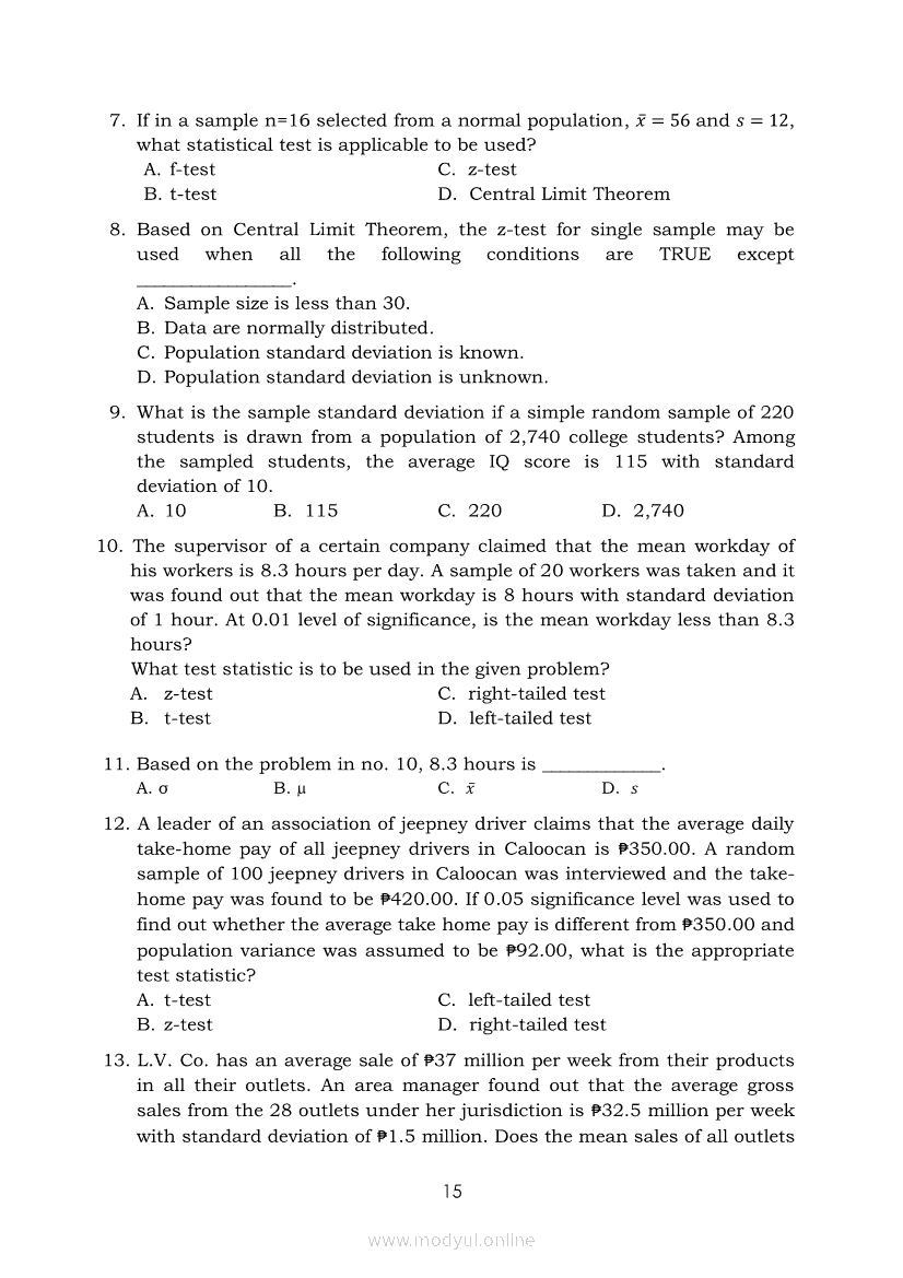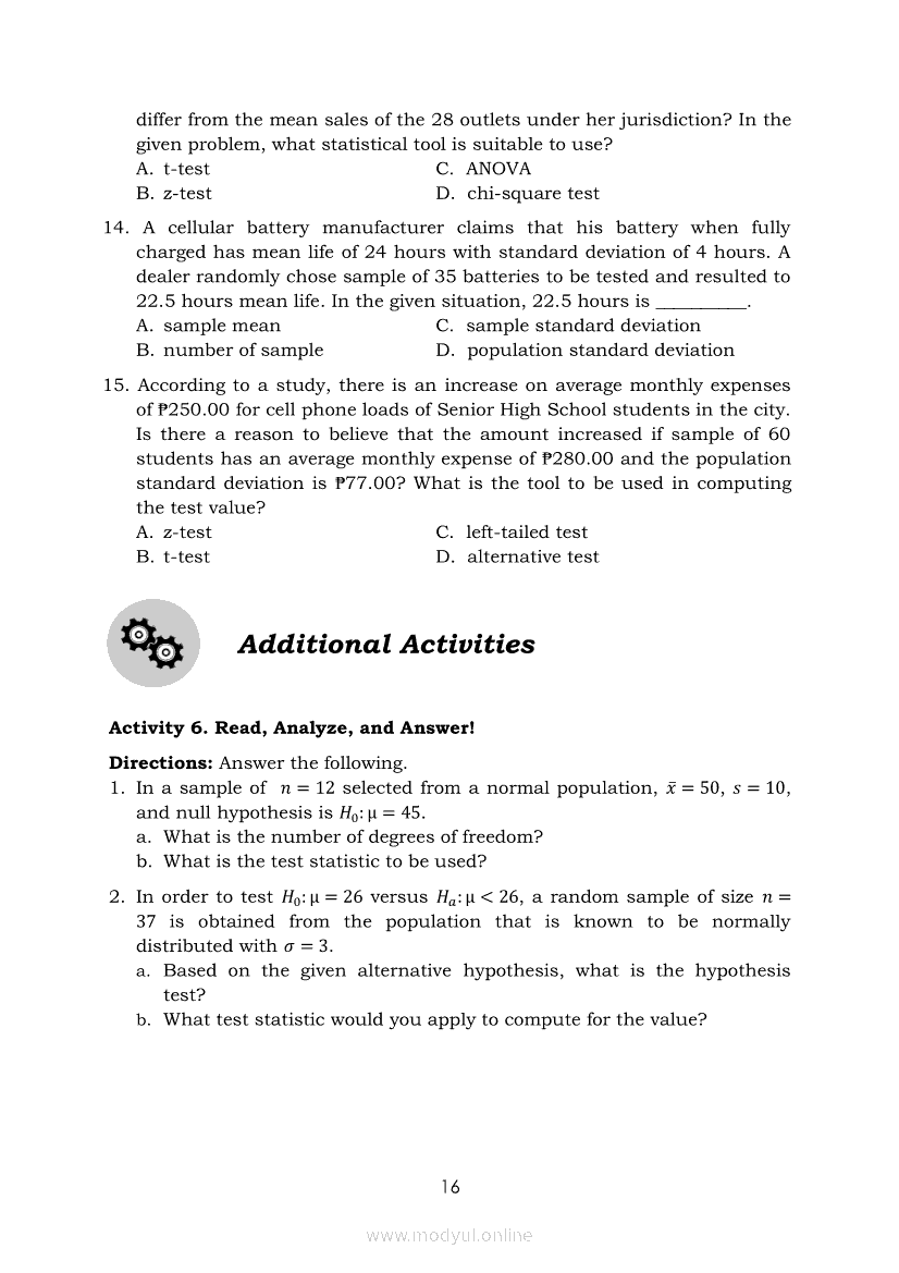 Statistics and Probability Module 4: Identifying Appropriate Test Statistics Involving Population MeanApr 22, 2021 SHSGrab your copy of Collegio Advance - ULTIMATE Updated College Entrance Exam Reviewer and pass with flying colors 🎉. Statistics and ProbabilityRelatedStatistics and Probability Module 1: Testing HypothesisStatistics and Probability Module 18: Calculating the Pearson’s Sample Correlation CoefficientStatistics and Probability Module 11: Identifying Appropriate Rejection Region Involving Population ProportionStatistics and Probability Module 10: Identifying Appropriate Test Statistic Involving Population ProportionStatistics and Probability Module 13: Drawing Conclusions About Population Proportion Based on Test Statistic Value and Rejection Region