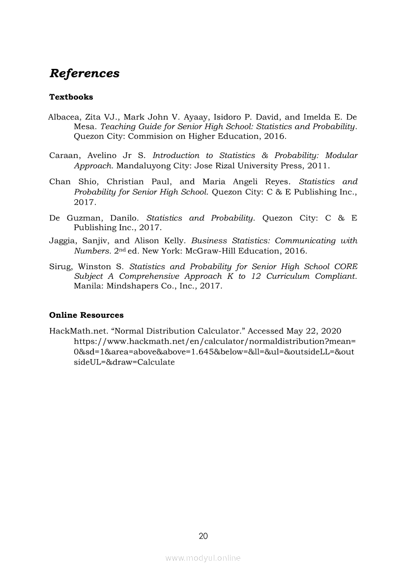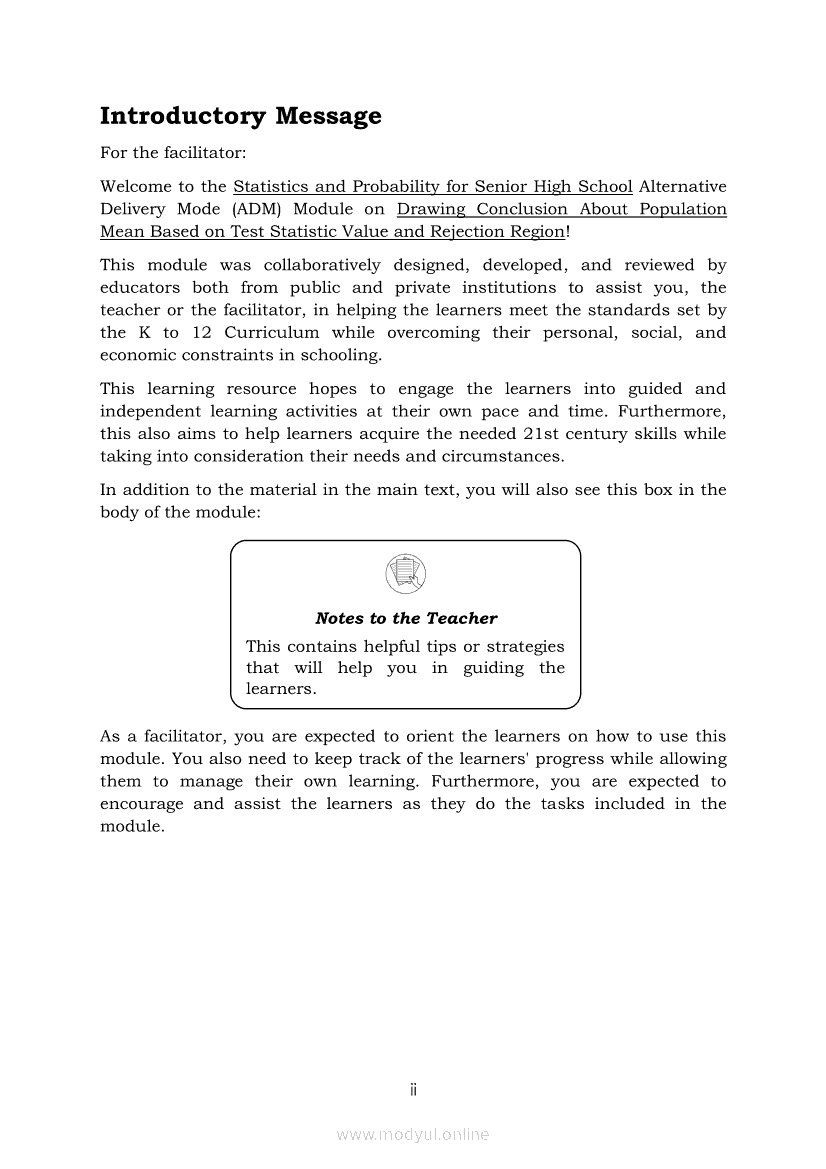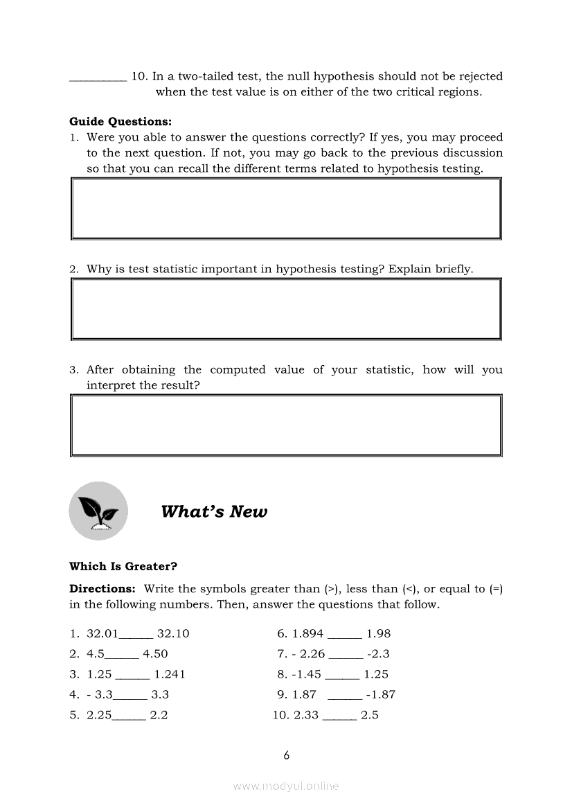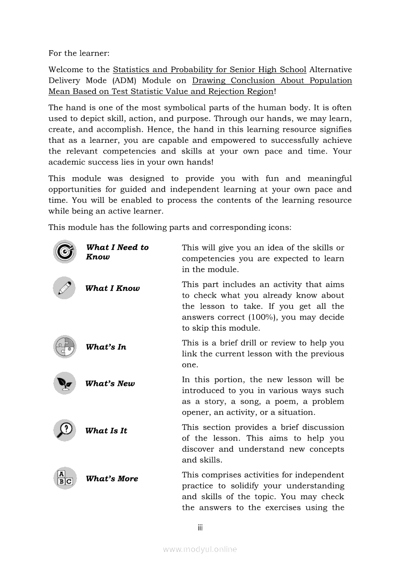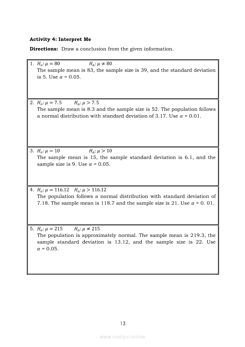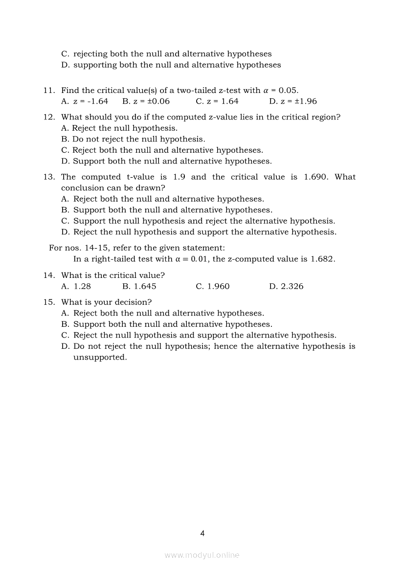 Statistics and Probability Module 7: Drawing Conclusion About Population Mean Based on Test Statistic Value and Critical RegionApr 22, 2021 SHSGrab your copy of Collegio Advance - ULTIMATE Updated College Entrance Exam Reviewer and pass with flying colors 🎉. Statistics and ProbabilityRelatedStatistics and Probability Module 10: Identifying Appropriate Test Statistic Involving Population ProportionStatistics and Probability Module 19: Solving Problems Involving Correlation AnalysisStatistics and Probability Module 20: Identifying Dependent and Independent VariablesStatistics and Probability Module 2: Identifying Parameters for Testing in Given Real-Life ProblemsStatistics and Probability Module 14: Solving Problems Involving Test of Hypothesis on Population Proportion