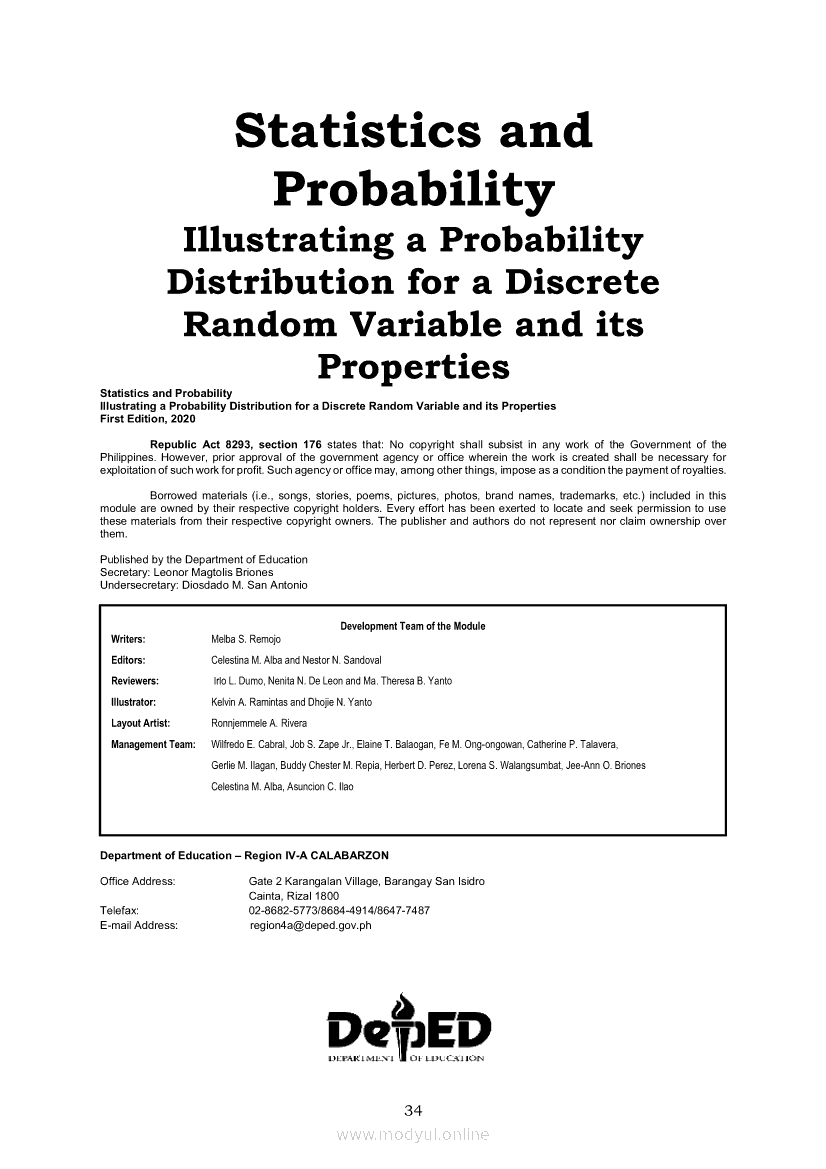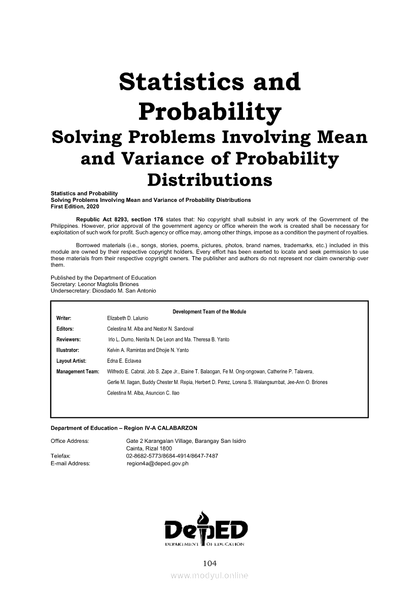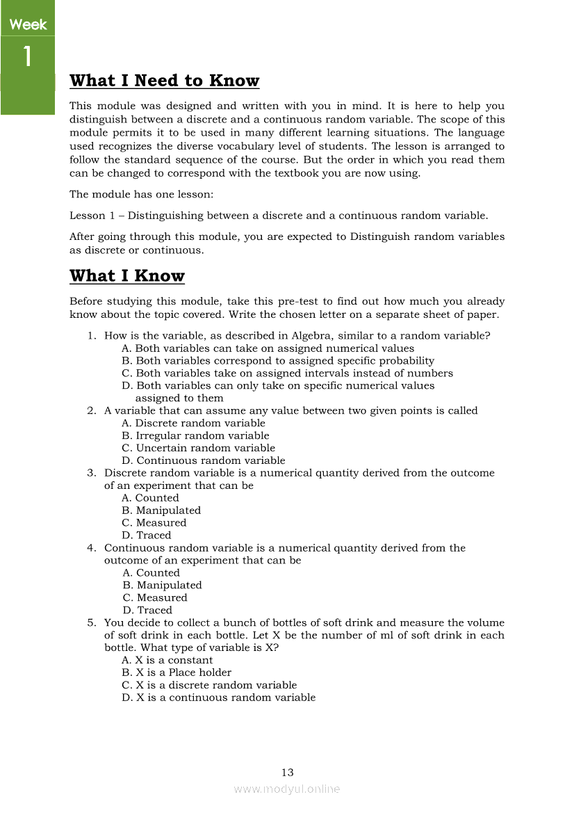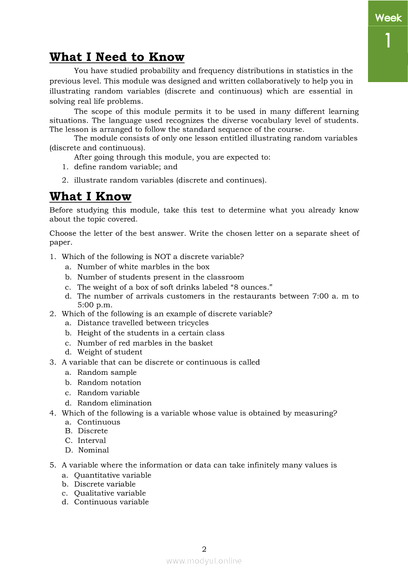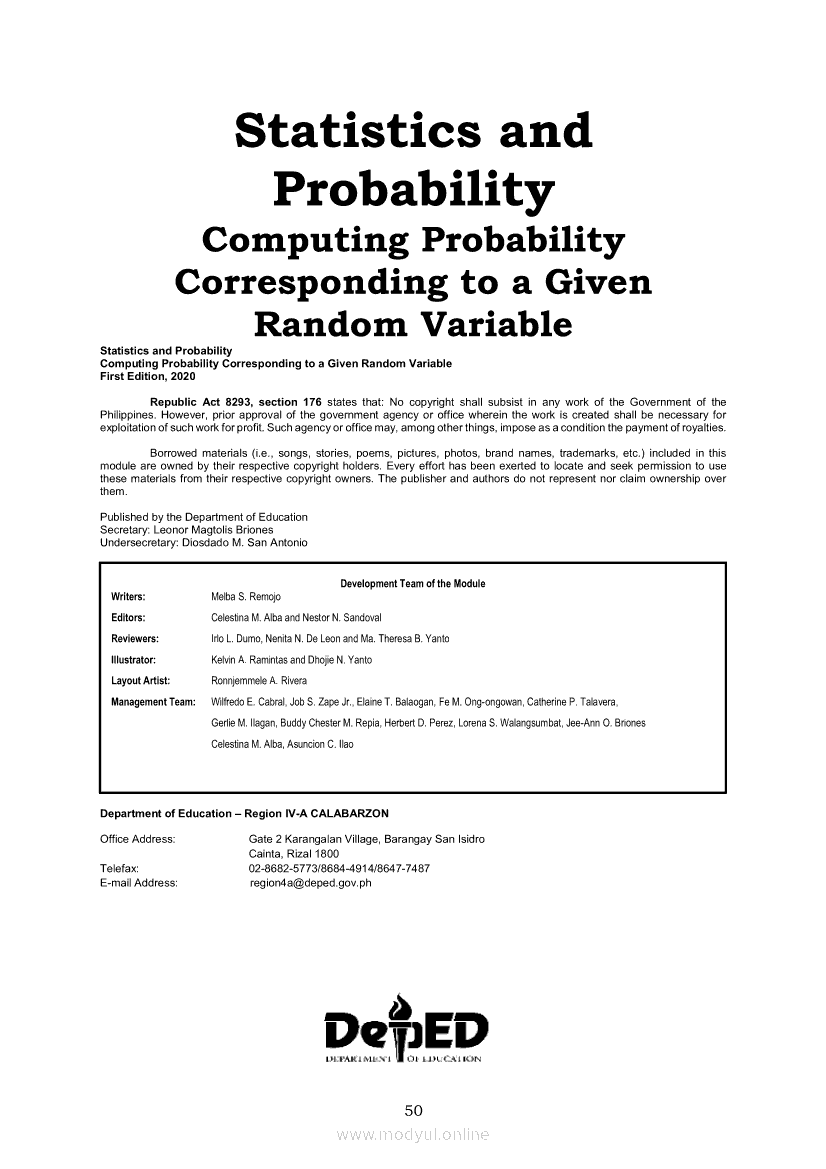Statistics and Probability PIVOT-ModuleApr 22, 2021 SHSGrab your copy of Collegio Advance - ULTIMATE Updated College Entrance Exam Reviewer and pass with flying colors 🎉. Statistics and ProbabilityRelatedStatistics and Probability Module 5: Identifying the Appropriate Rejection Region for a Given Level of SignificanceStatistics and Probability Module 14: Solving Problems Involving Test of Hypothesis on Population ProportionStatistics and Probability Module 13: Drawing Conclusions About Population Proportion Based on Test Statistic Value and Rejection RegionStatistics and Probability Module 10: Identifying Appropriate Test Statistic Involving Population ProportionStatistics and Probability Module 20: Identifying Dependent and Independent Variables