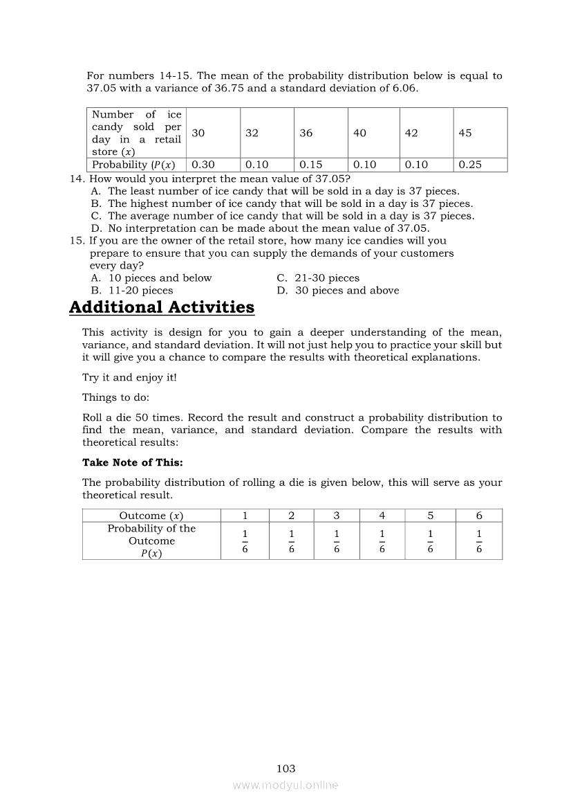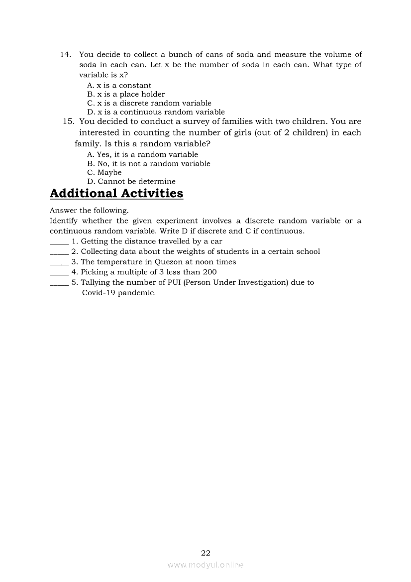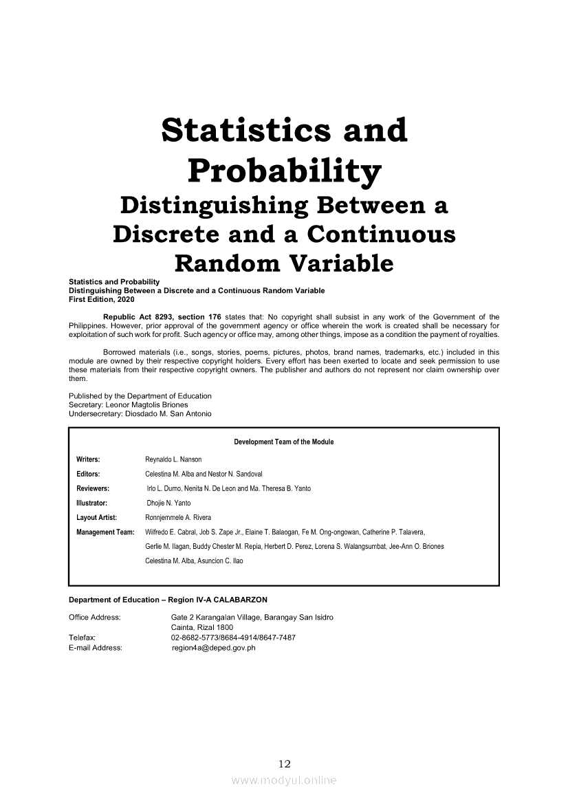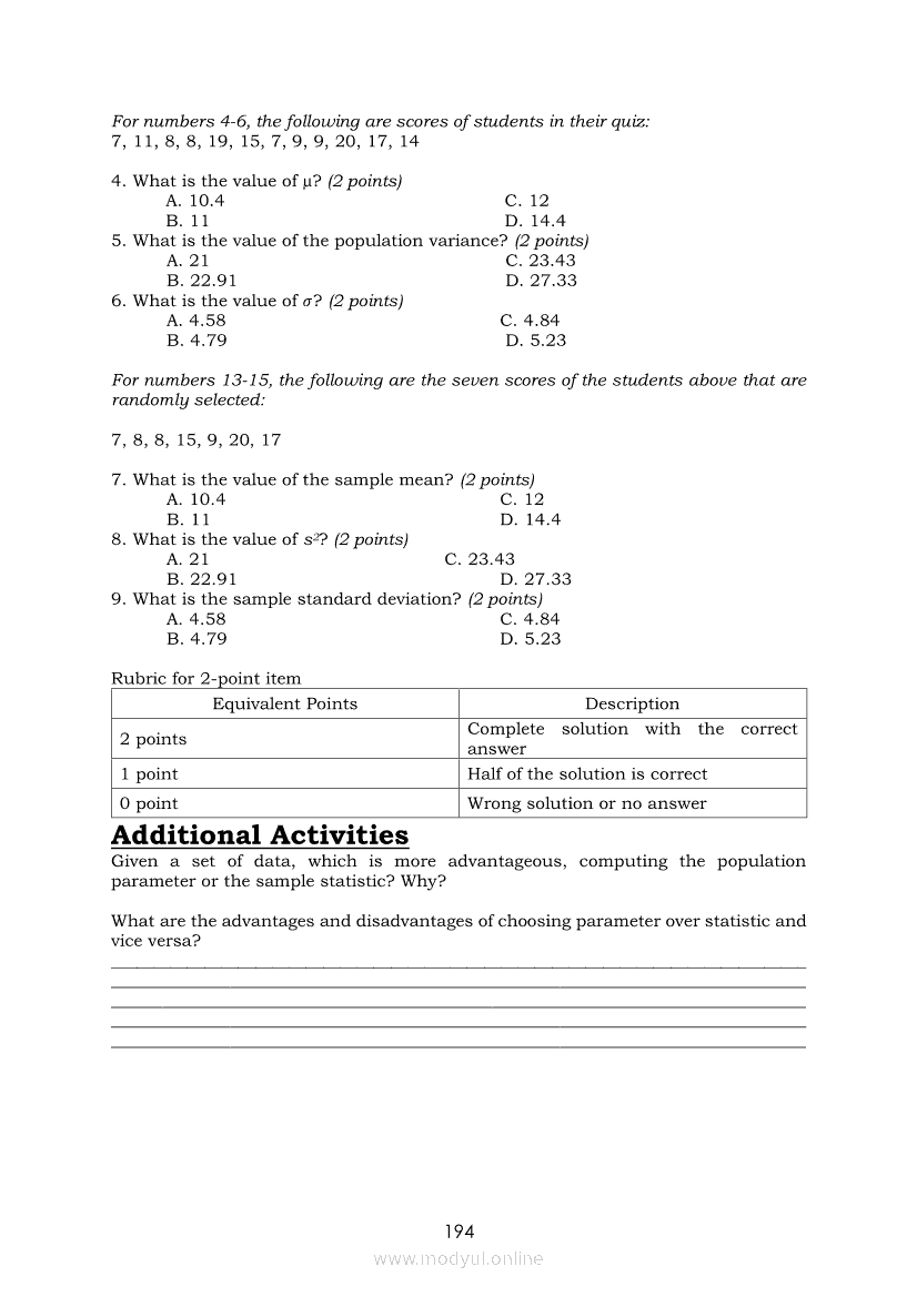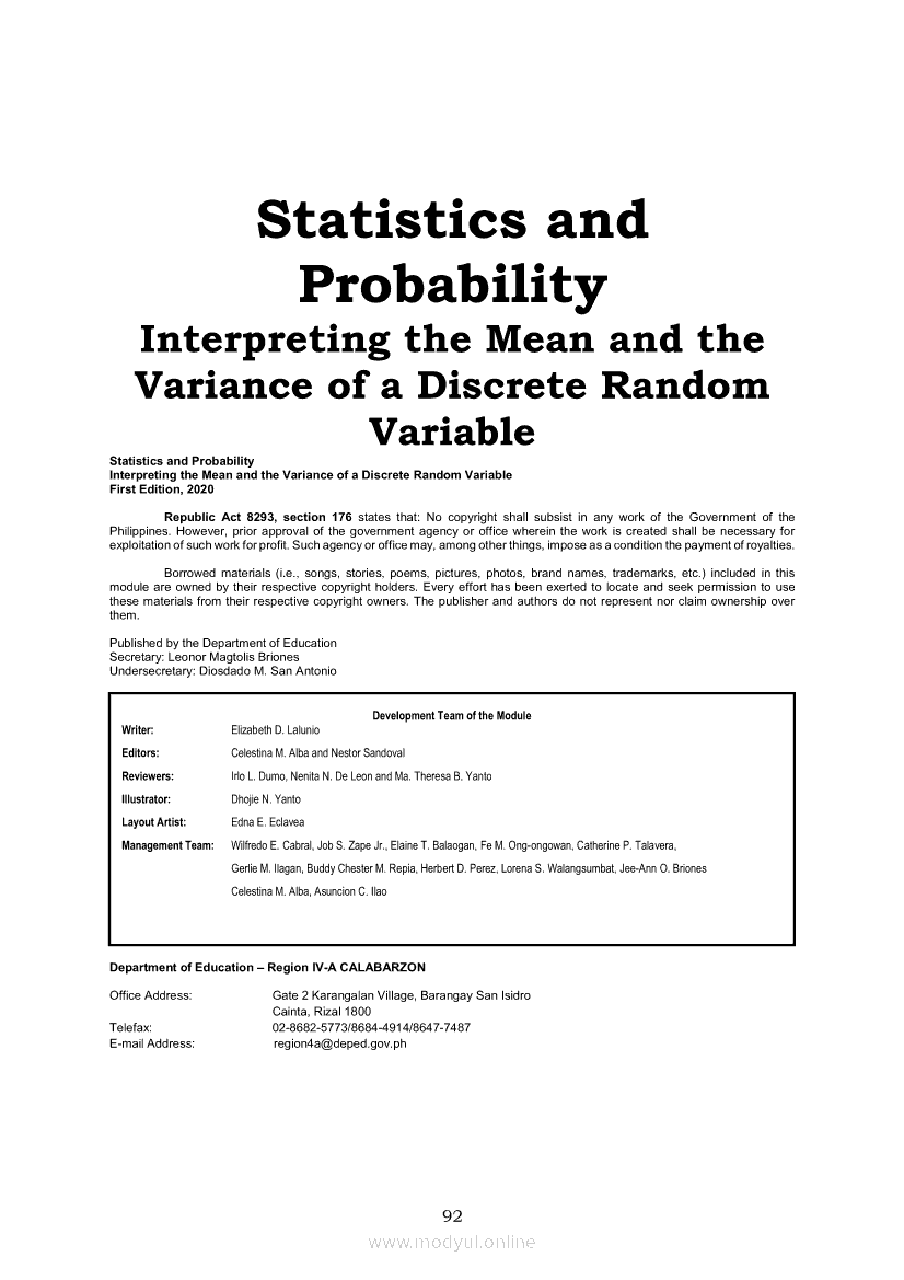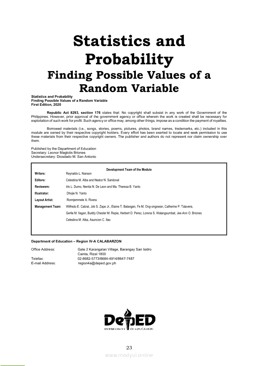 Statistics and Probability PIVOT-ModuleApr 22, 2021 SHSGrab your copy of Collegio Advance - ULTIMATE Updated College Entrance Exam Reviewer and pass with flying colors 🎉. Statistics and ProbabilityRelatedStatistics and Probability Module 5: Identifying the Appropriate Rejection Region for a Given Level of SignificanceStatistics and Probability Module 14: Solving Problems Involving Test of Hypothesis on Population ProportionStatistics and Probability Module 13: Drawing Conclusions About Population Proportion Based on Test Statistic Value and Rejection RegionStatistics and Probability Module 10: Identifying Appropriate Test Statistic Involving Population ProportionStatistics and Probability Module 20: Identifying Dependent and Independent Variables