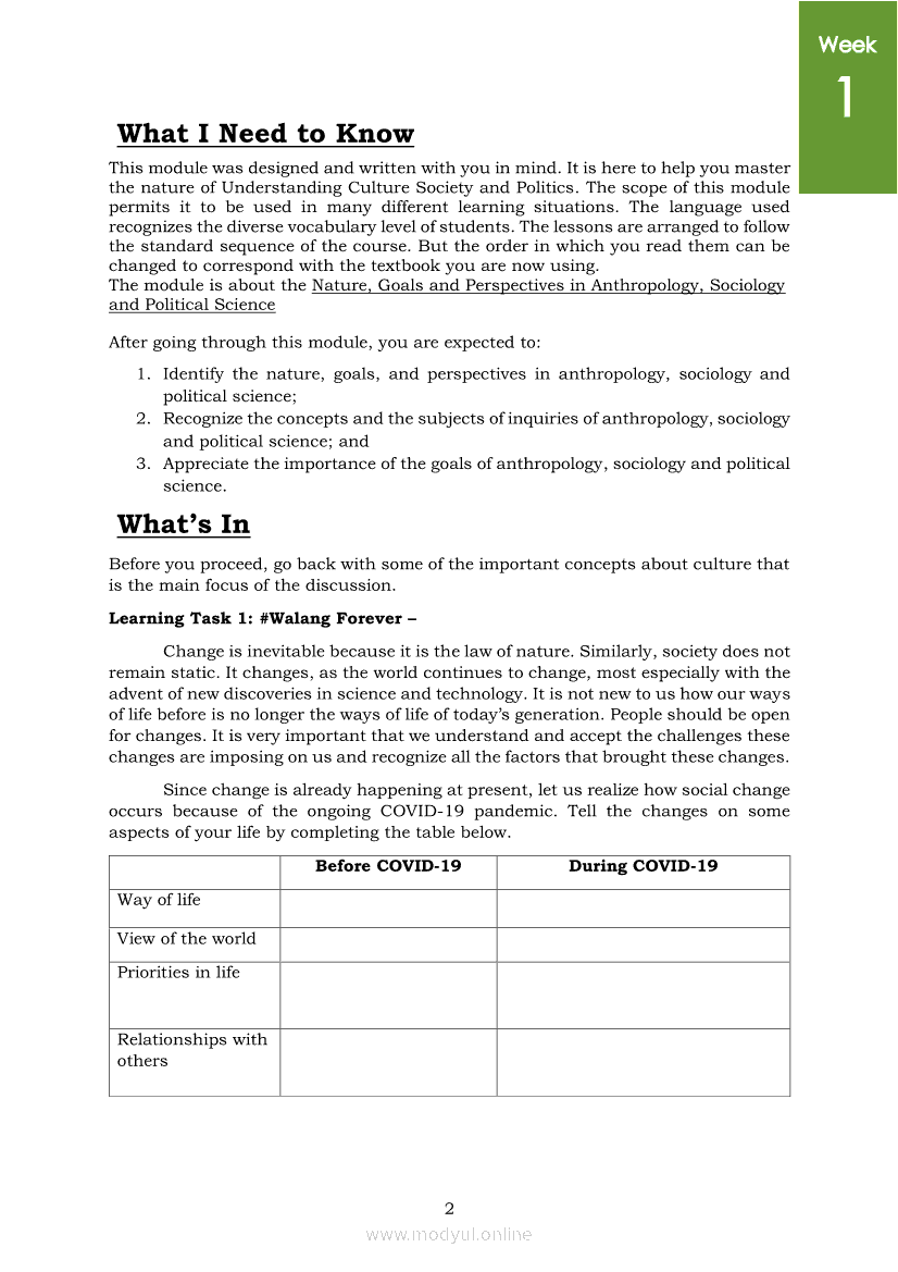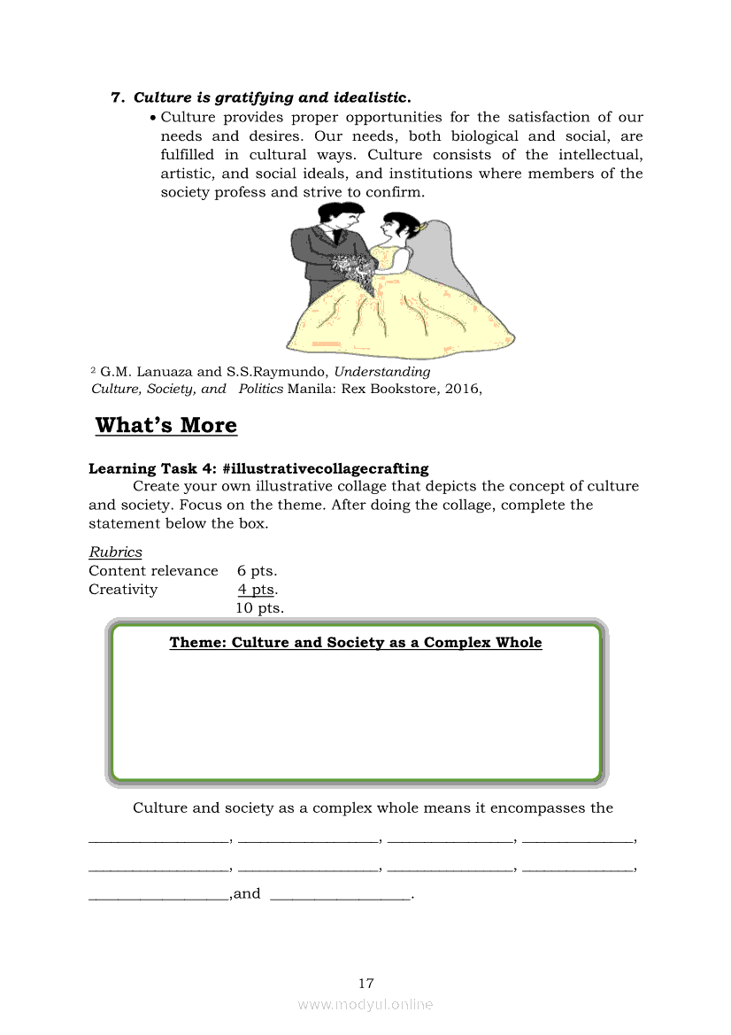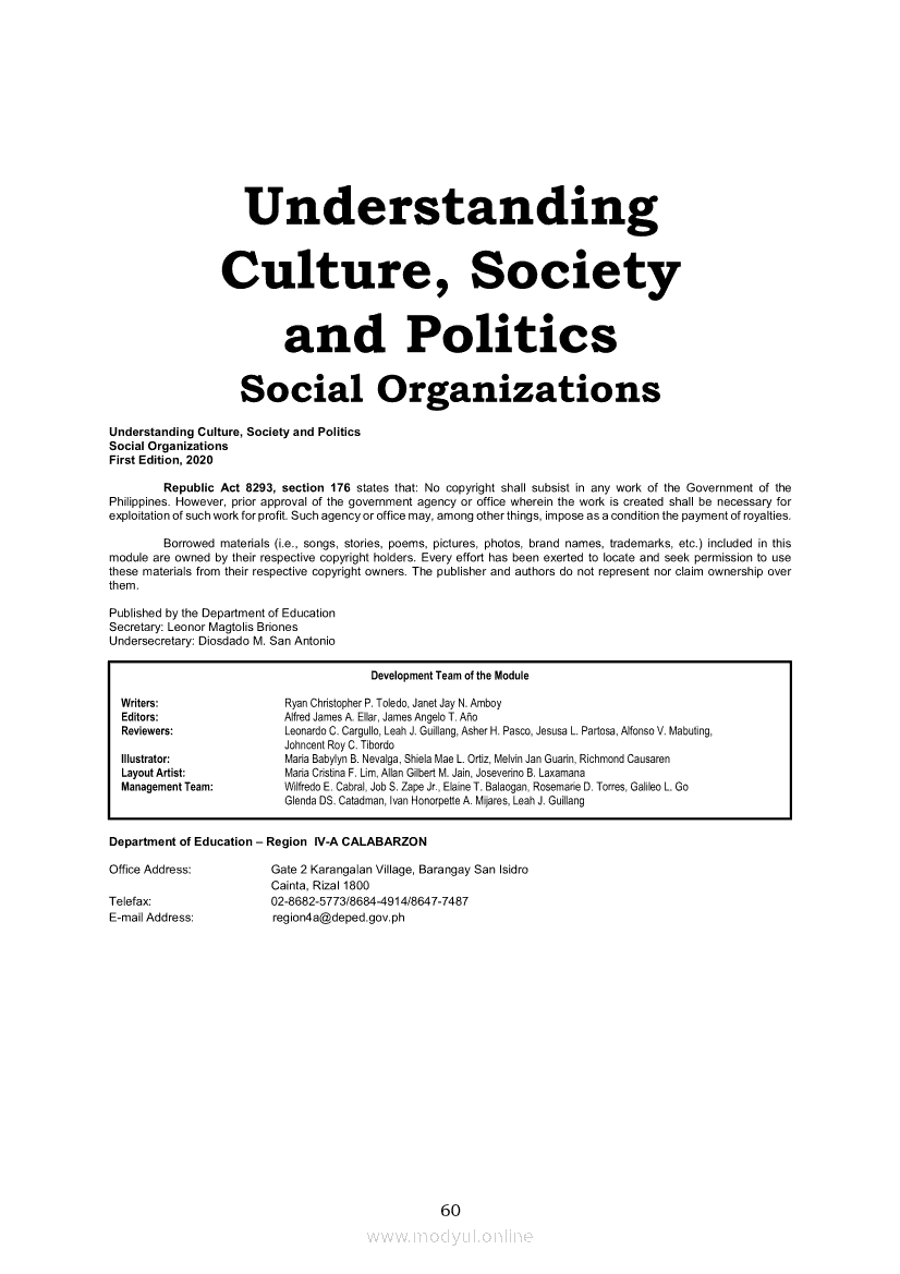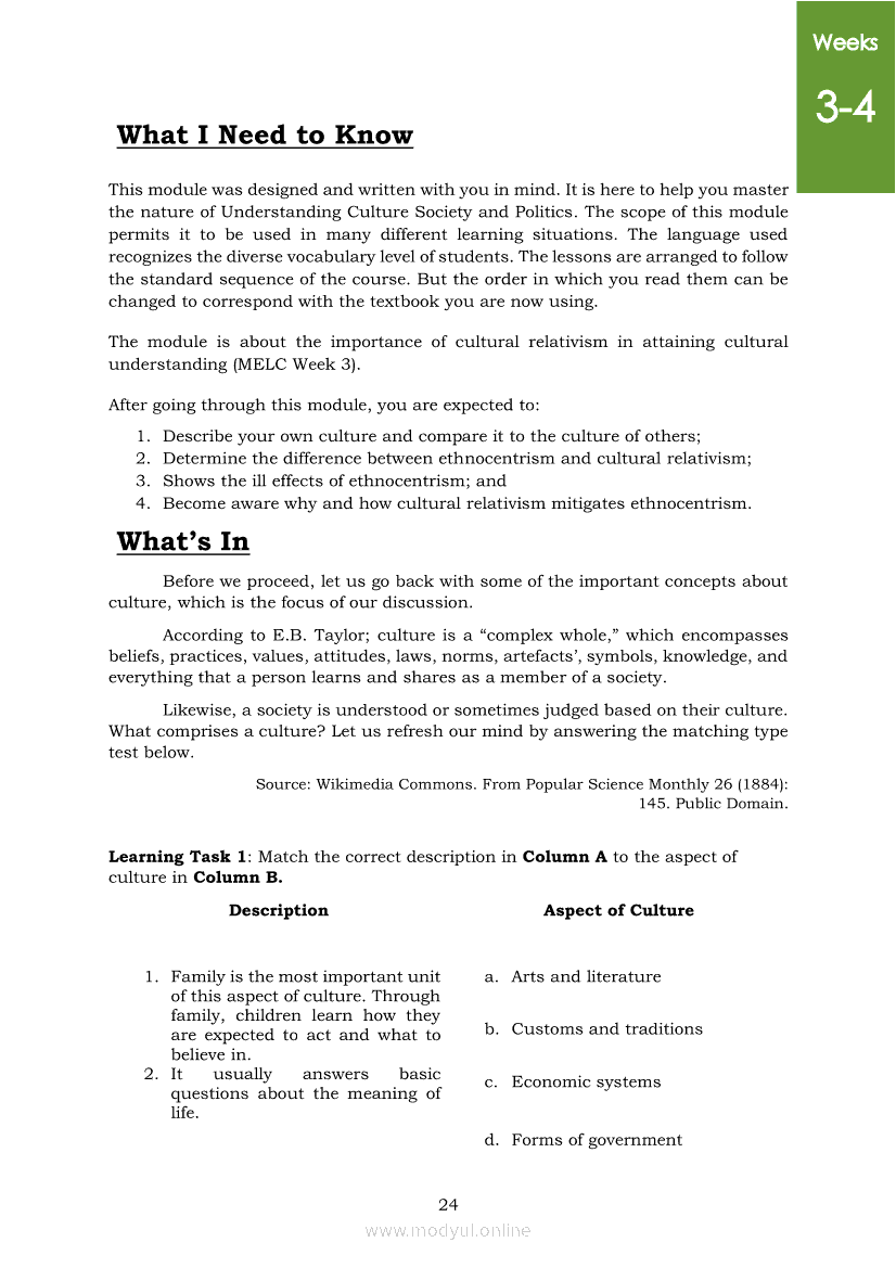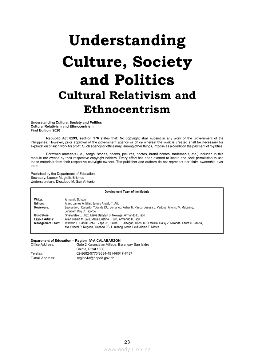 Understanding Culture, Society and Politics (PIVOT)Apr 22, 2021 SHSGrab your copy of Collegio Advance - ULTIMATE Updated College Entrance Exam Reviewer and pass with flying colors 🎉. Understanding Culture, Society and PoliticsRelatedUnderstanding Culture, Society and Politics Quarter 2 – Module 4: Government Programs and Suggestions in addressing Social InequalitiesUnderstanding Culture, Society and Politics Quarter 2 – Module 3: Concept, Characteristics and Forms of Stratification SystemsUnderstanding Culture, Society and Politics Quarter 2 – Module 1: State and Non-State InstitutionsUnderstanding Culture, Society and Politics Quarter 2 – Module 6: New Challenges in Contemporary SocietiesUnderstanding Culture, Society and Politics Quarter 2 – Module 2: Functions and Importance of Education