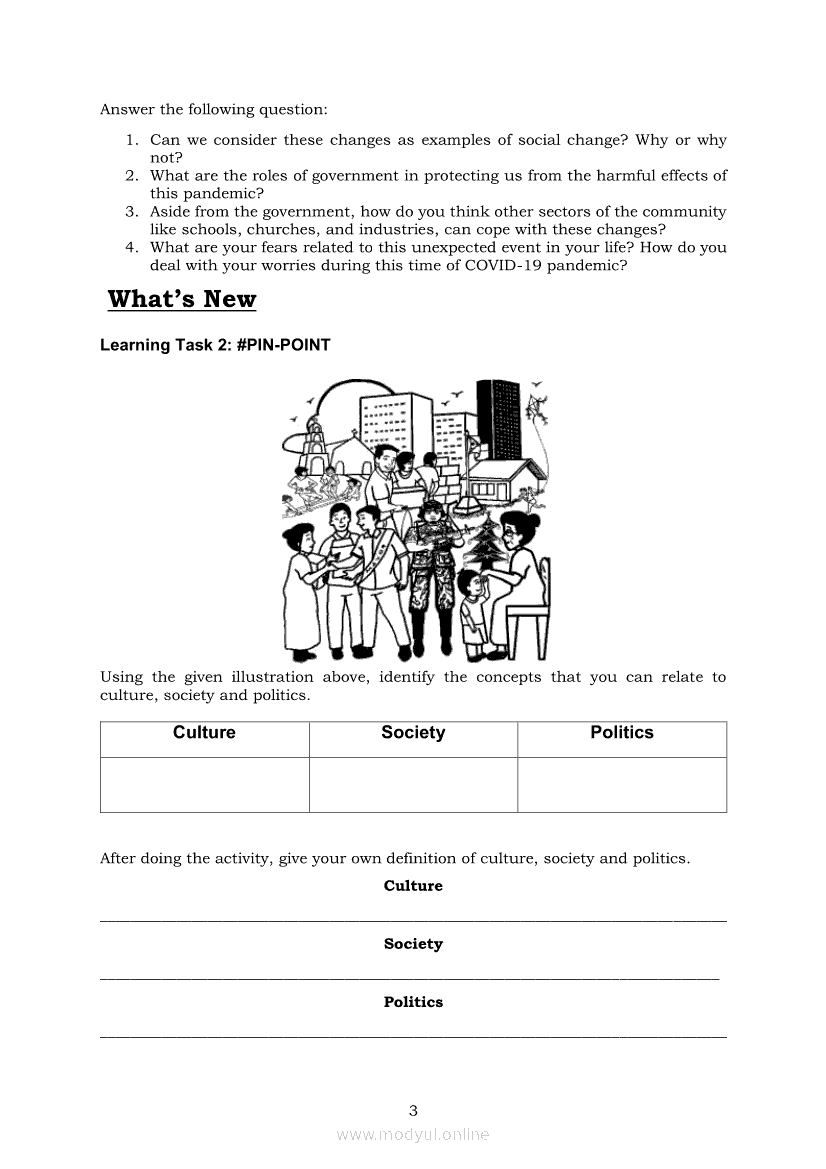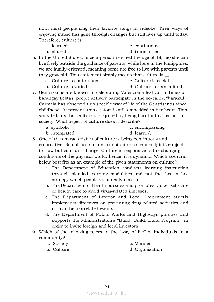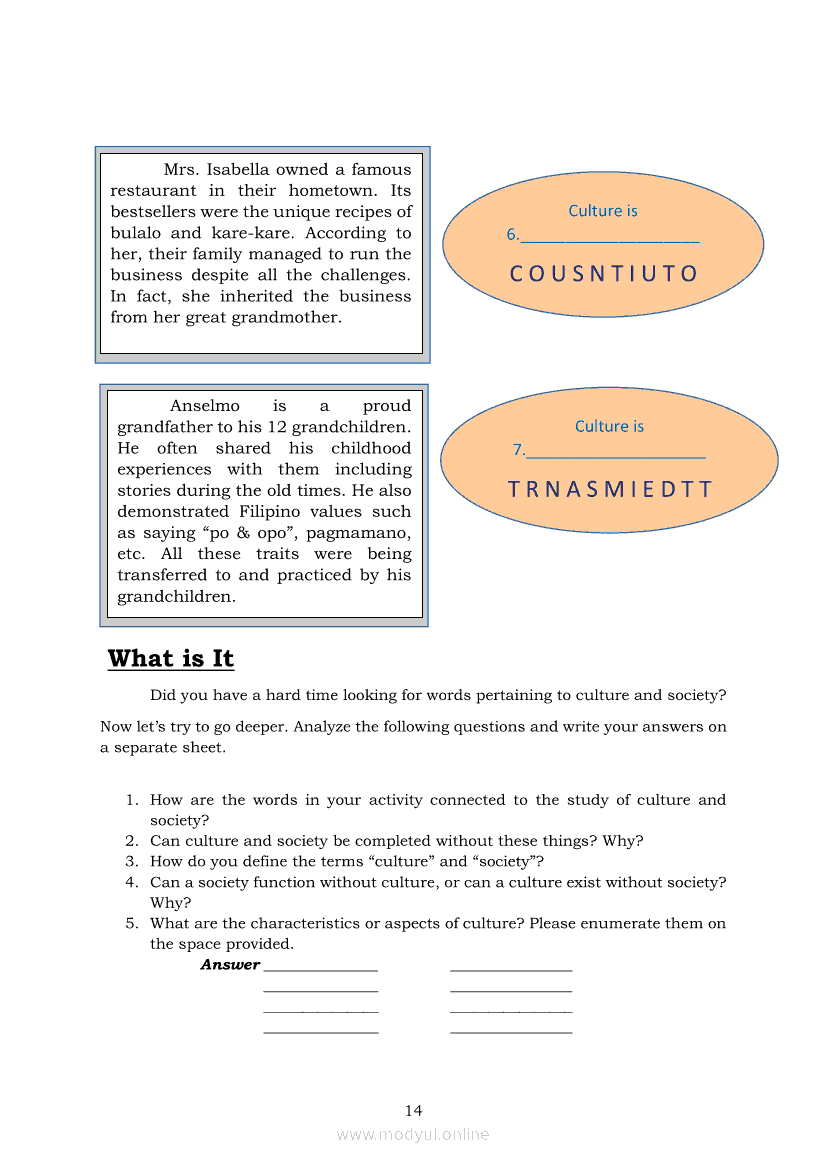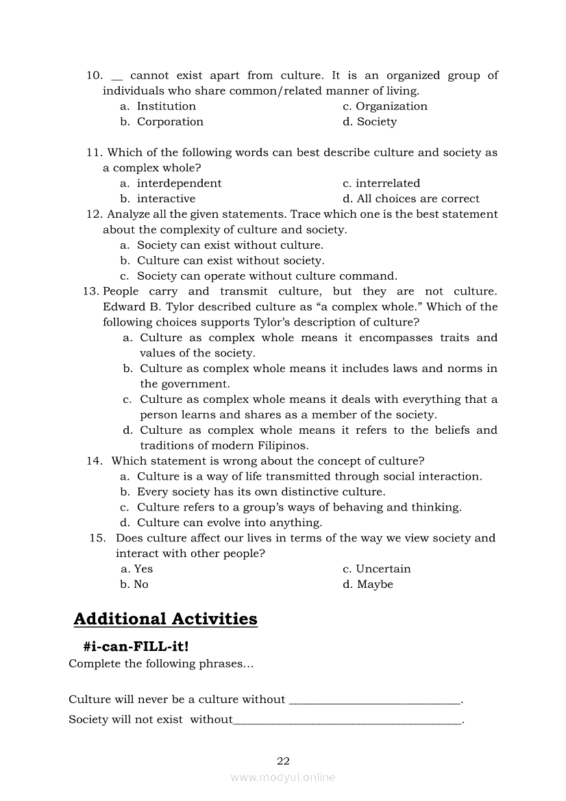 Understanding Culture, Society and Politics (PIVOT)Apr 22, 2021 SHSGrab your copy of Collegio Advance - ULTIMATE Updated College Entrance Exam Reviewer and pass with flying colors 🎉. Understanding Culture, Society and PoliticsRelatedUnderstanding Culture, Society and Politics Quarter 2 – Module 4: Government Programs and Suggestions in addressing Social InequalitiesUnderstanding Culture, Society and Politics Quarter 2 – Module 3: Concept, Characteristics and Forms of Stratification SystemsUnderstanding Culture, Society and Politics Quarter 2 – Module 1: State and Non-State InstitutionsUnderstanding Culture, Society and Politics Quarter 2 – Module 6: New Challenges in Contemporary SocietiesUnderstanding Culture, Society and Politics Quarter 2 – Module 2: Functions and Importance of Education