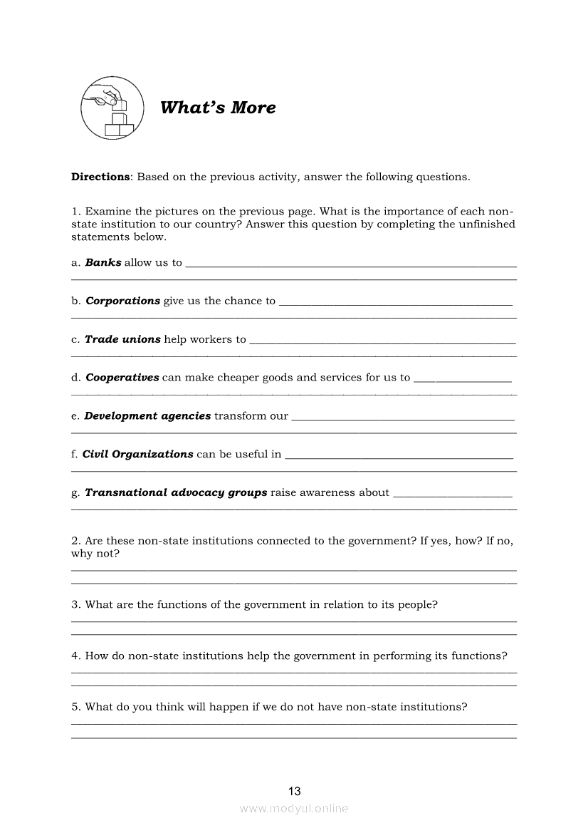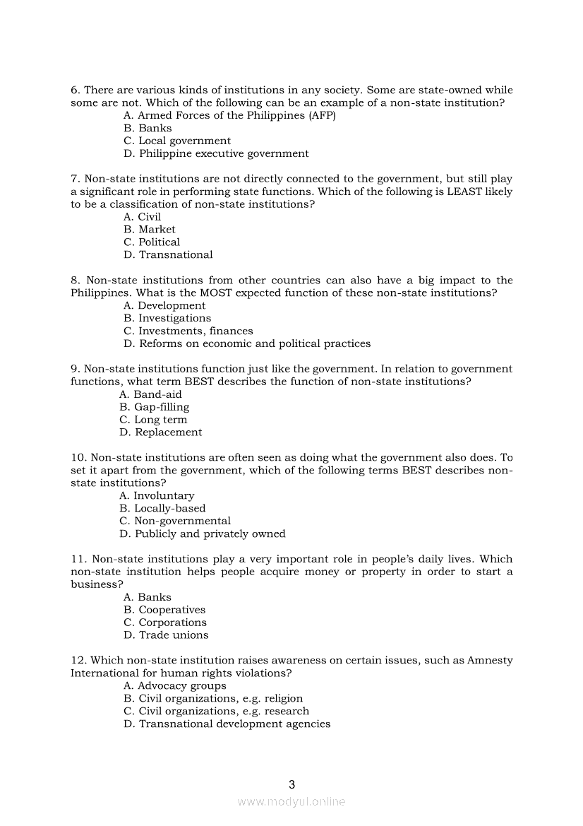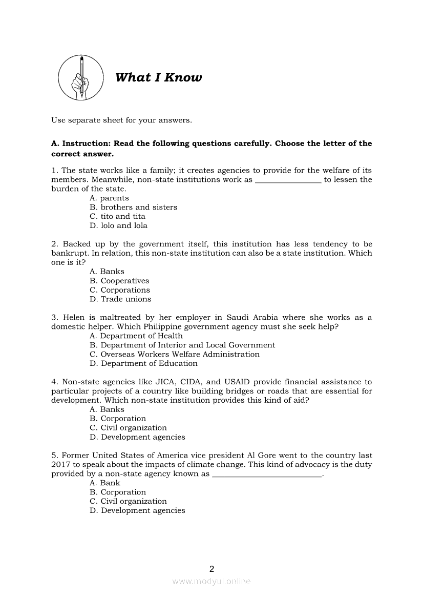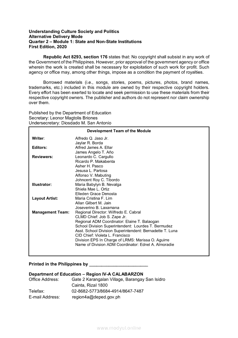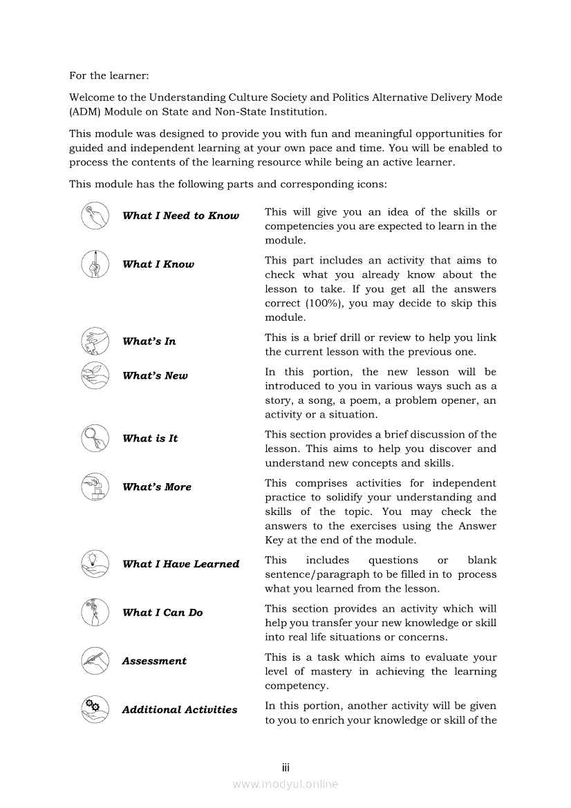 Understanding Culture, Society and Politics Quarter 2 – Module 1: State and Non-State InstitutionsApr 22, 2021 SHSGrab your copy of Collegio Advance - ULTIMATE Updated College Entrance Exam Reviewer and pass with flying colors 🎉. Understanding Culture, Society and PoliticsRelatedUnderstanding Culture, Society and Politics (PIVOT)Understanding Culture, Society and Politics Quarter 2 – Module 3: Concept, Characteristics and Forms of Stratification SystemsUnderstanding Culture, Society and Politics Quarter 2 – Module 4: Government Programs and Suggestions in addressing Social InequalitiesUnderstanding Culture, Society and Politics Quarter 2 – Module 6: New Challenges in Contemporary SocietiesUnderstanding Culture, Society and Politics Quarter 2 – Module 2: Functions and Importance of Education