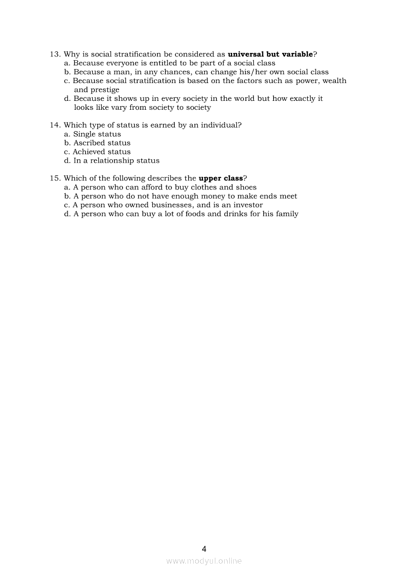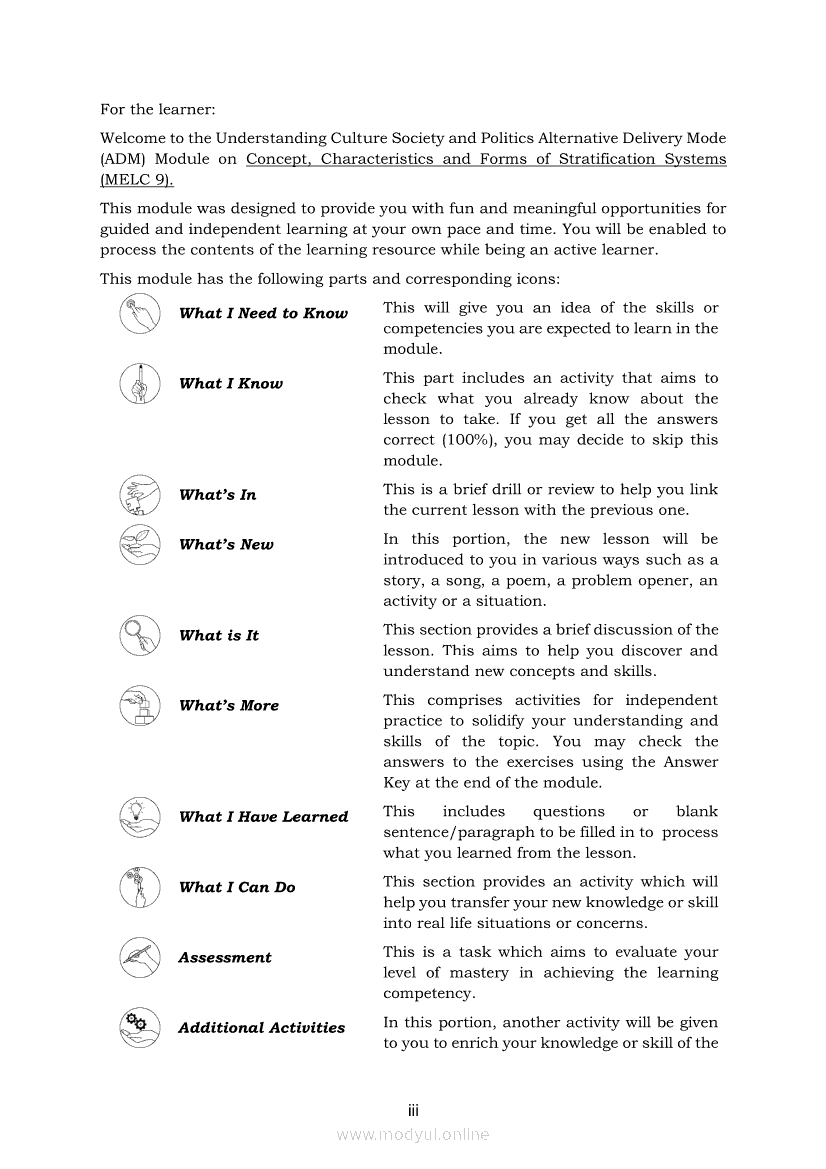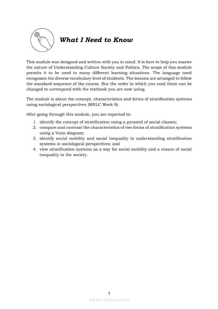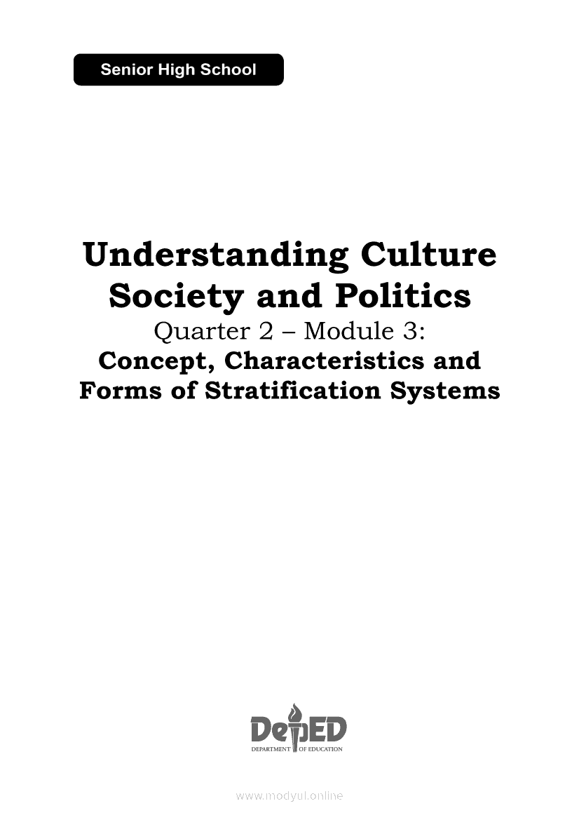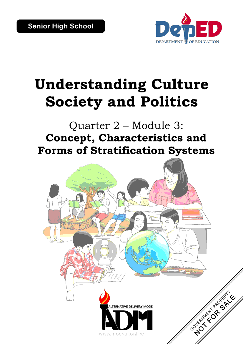 Understanding Culture, Society and Politics Quarter 2 – Module 3: Concept, Characteristics and Forms of Stratification SystemsApr 22, 2021 SHSGrab your copy of Collegio Advance - ULTIMATE Updated College Entrance Exam Reviewer and pass with flying colors 🎉. Understanding Culture, Society and PoliticsRelatedUnderstanding Culture, Society and Politics (PIVOT)Understanding Culture, Society and Politics Quarter 2 – Module 4: Government Programs and Suggestions in addressing Social InequalitiesUnderstanding Culture, Society and Politics Quarter 2 – Module 1: State and Non-State InstitutionsUnderstanding Culture, Society and Politics Quarter 2 – Module 2: Functions and Importance of EducationUnderstanding Culture, Society and Politics Quarter 2 – Module 6: New Challenges in Contemporary Societies